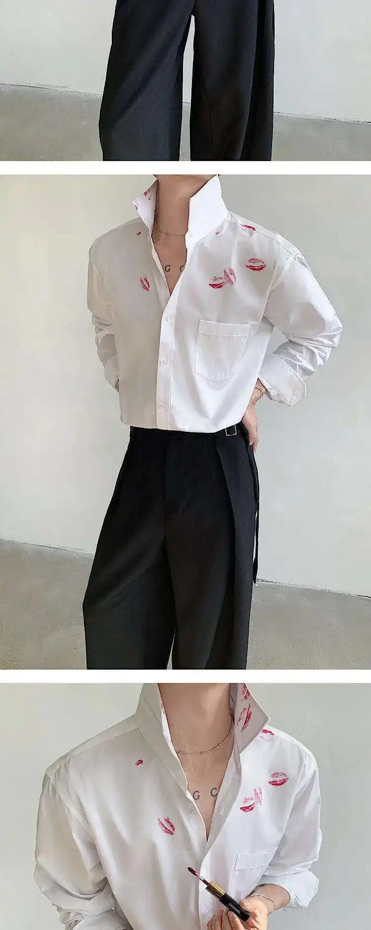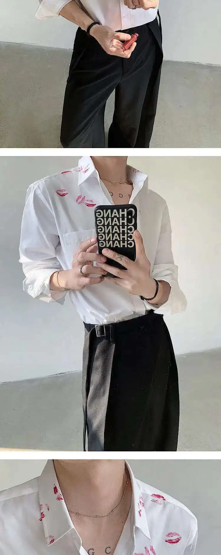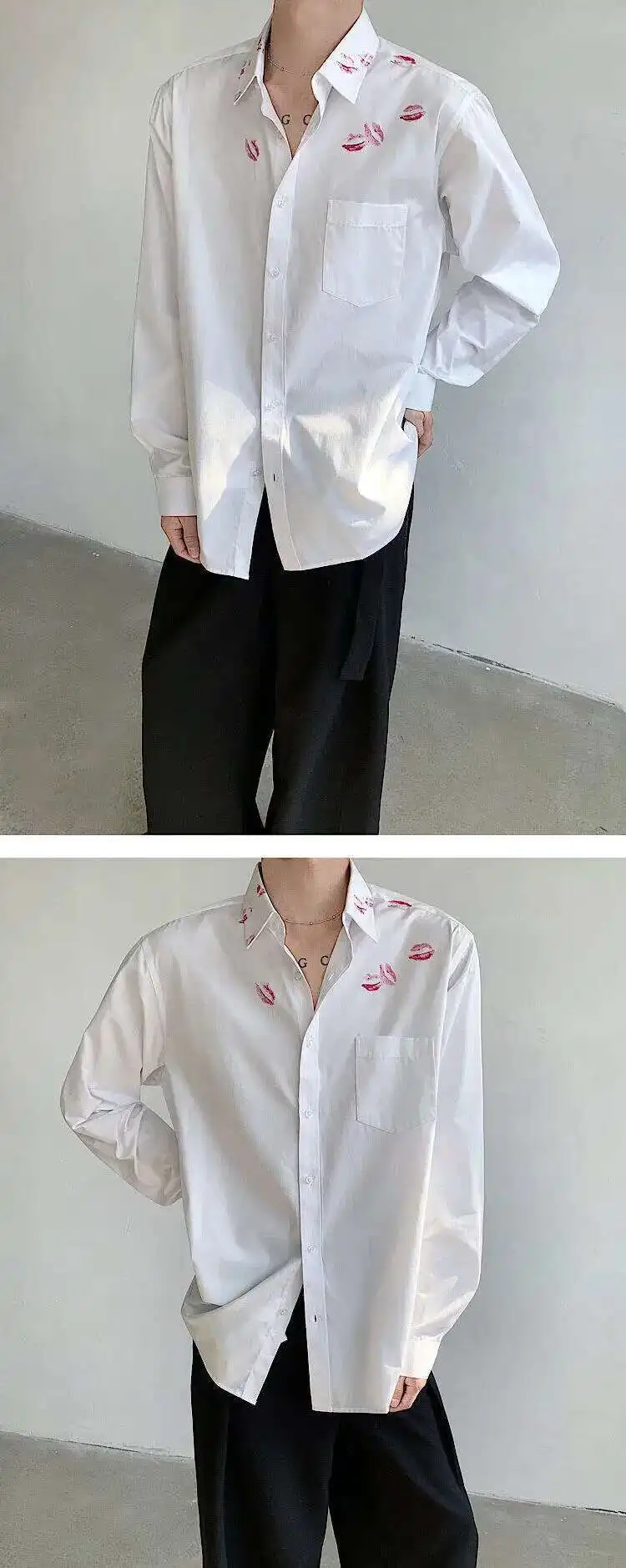 AIDASE - Spring/Summer Personalized Printed White Shirt Loose Turn-down Collar Single Breast Male Tops Casual