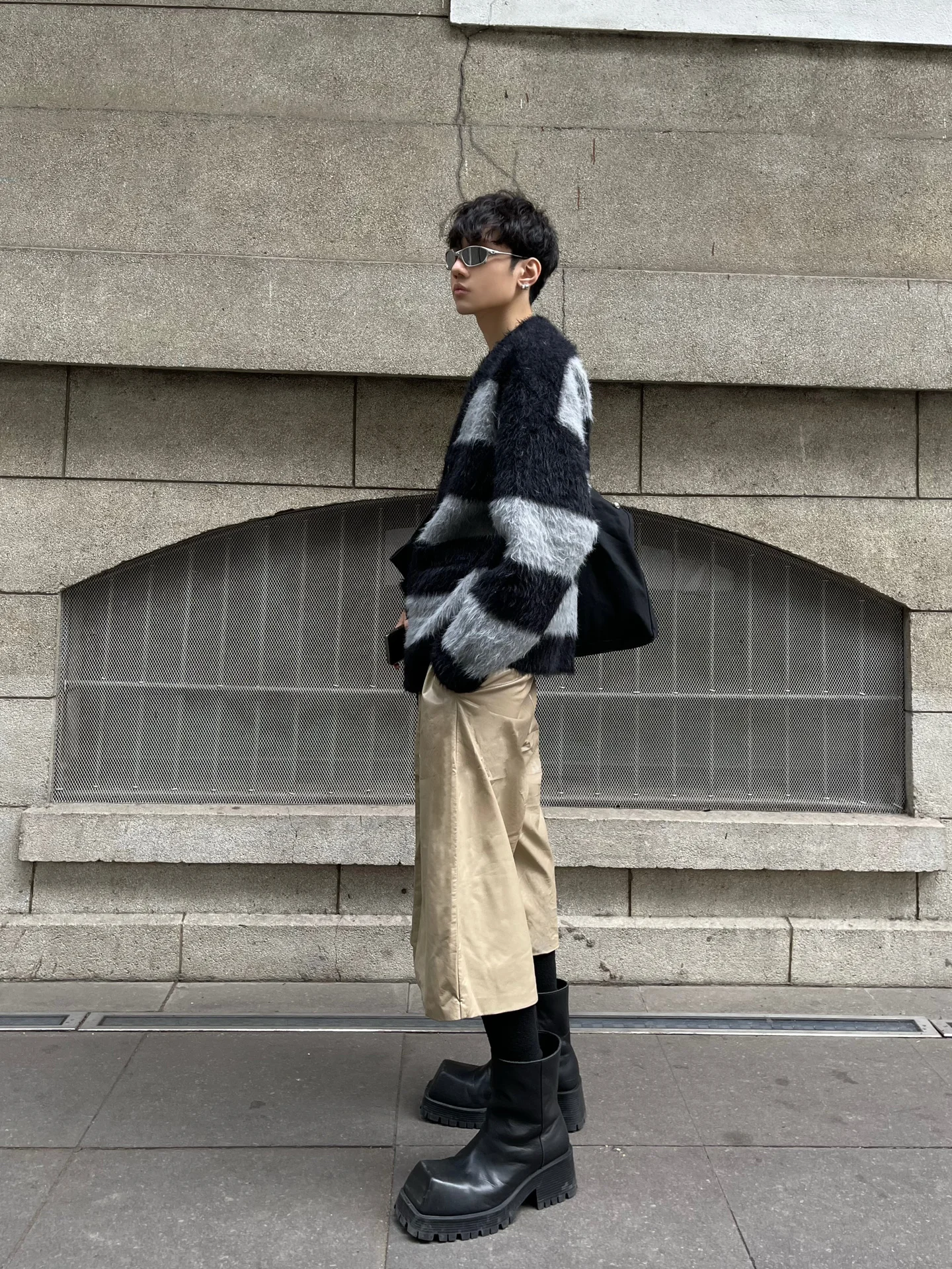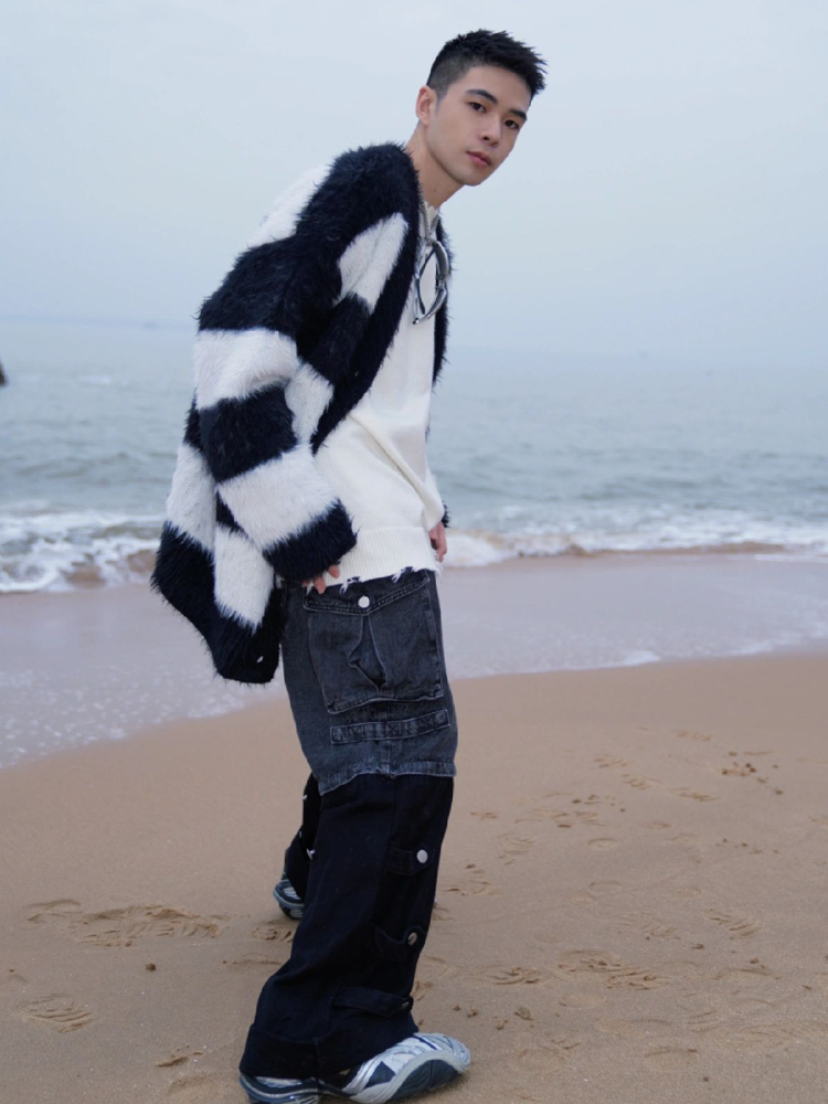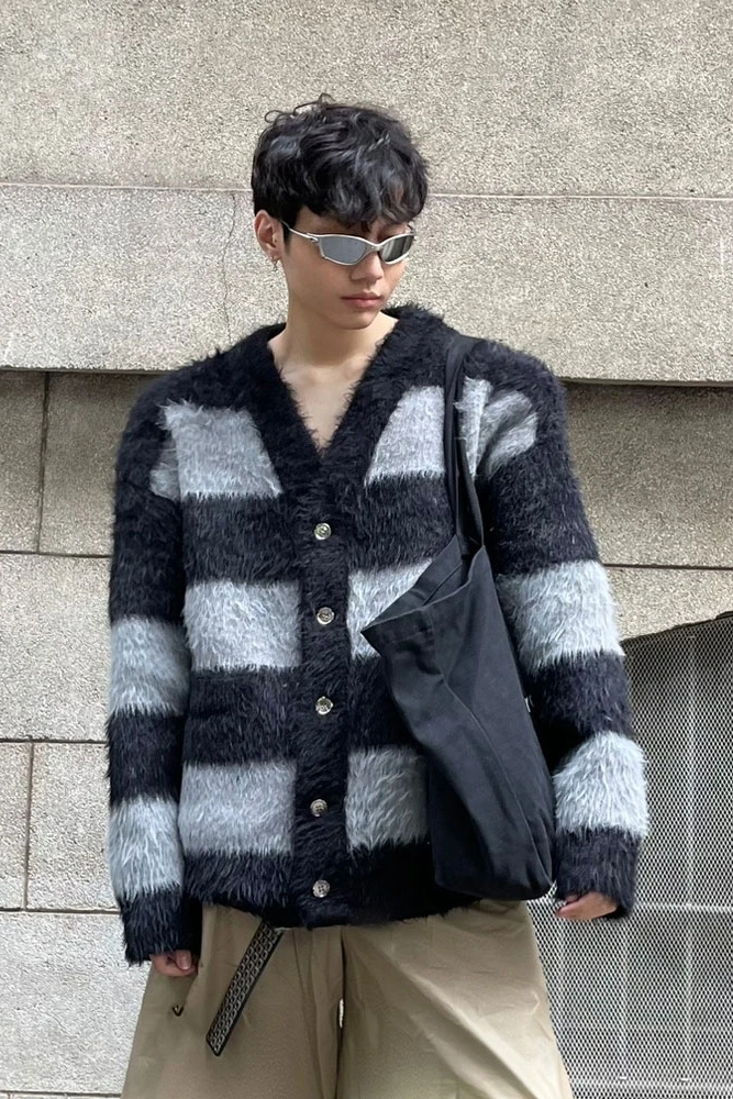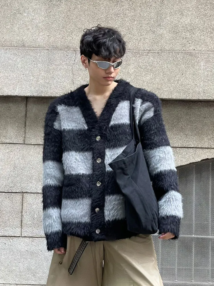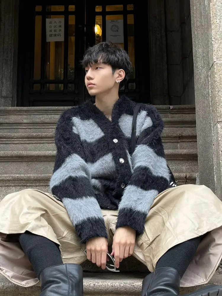 Aidase Striped Cardigan Men Single Breasted Temperament Simple Handsome High Street Panelled Hipster Spring Autumn Advanced Popular
