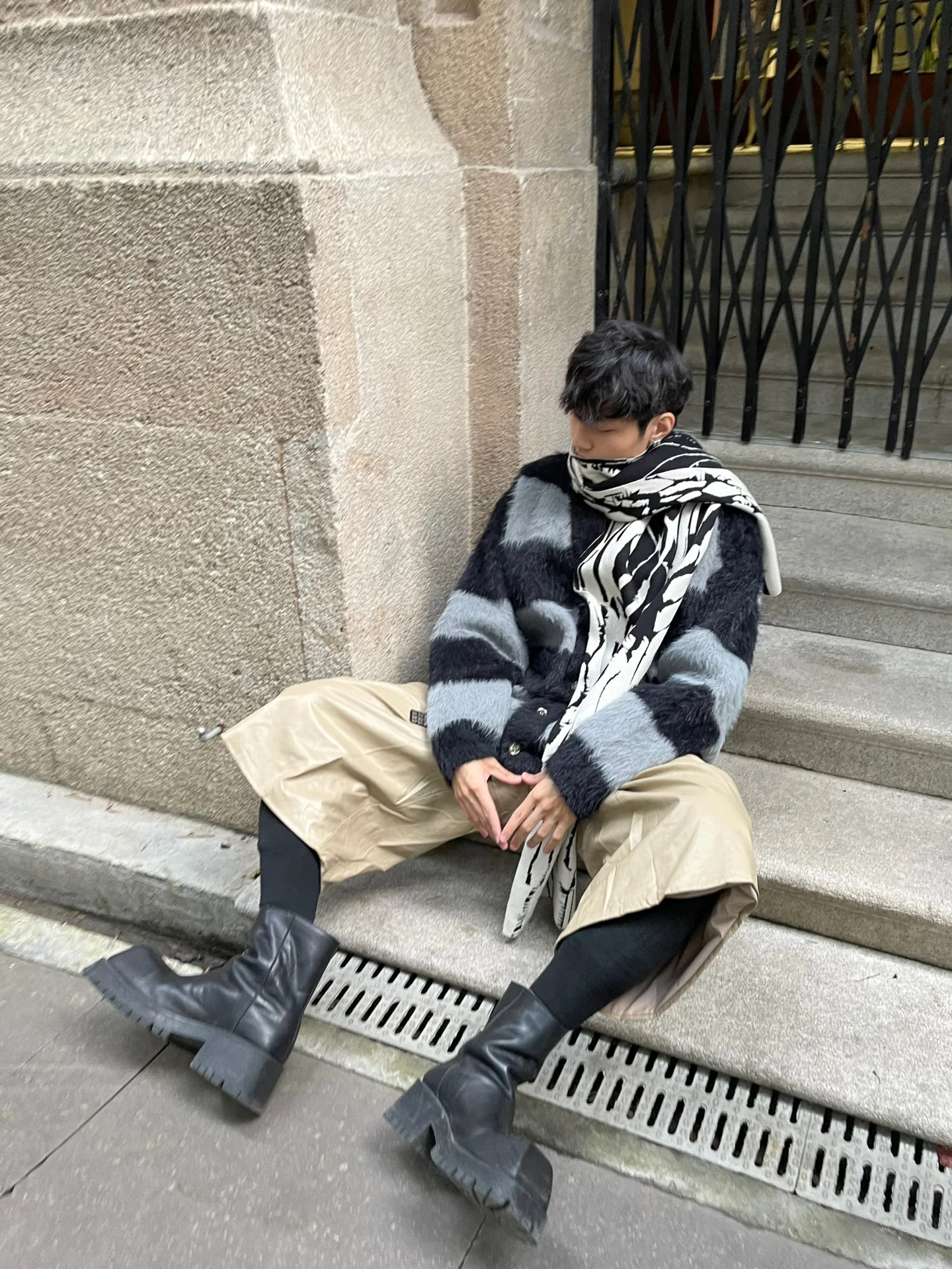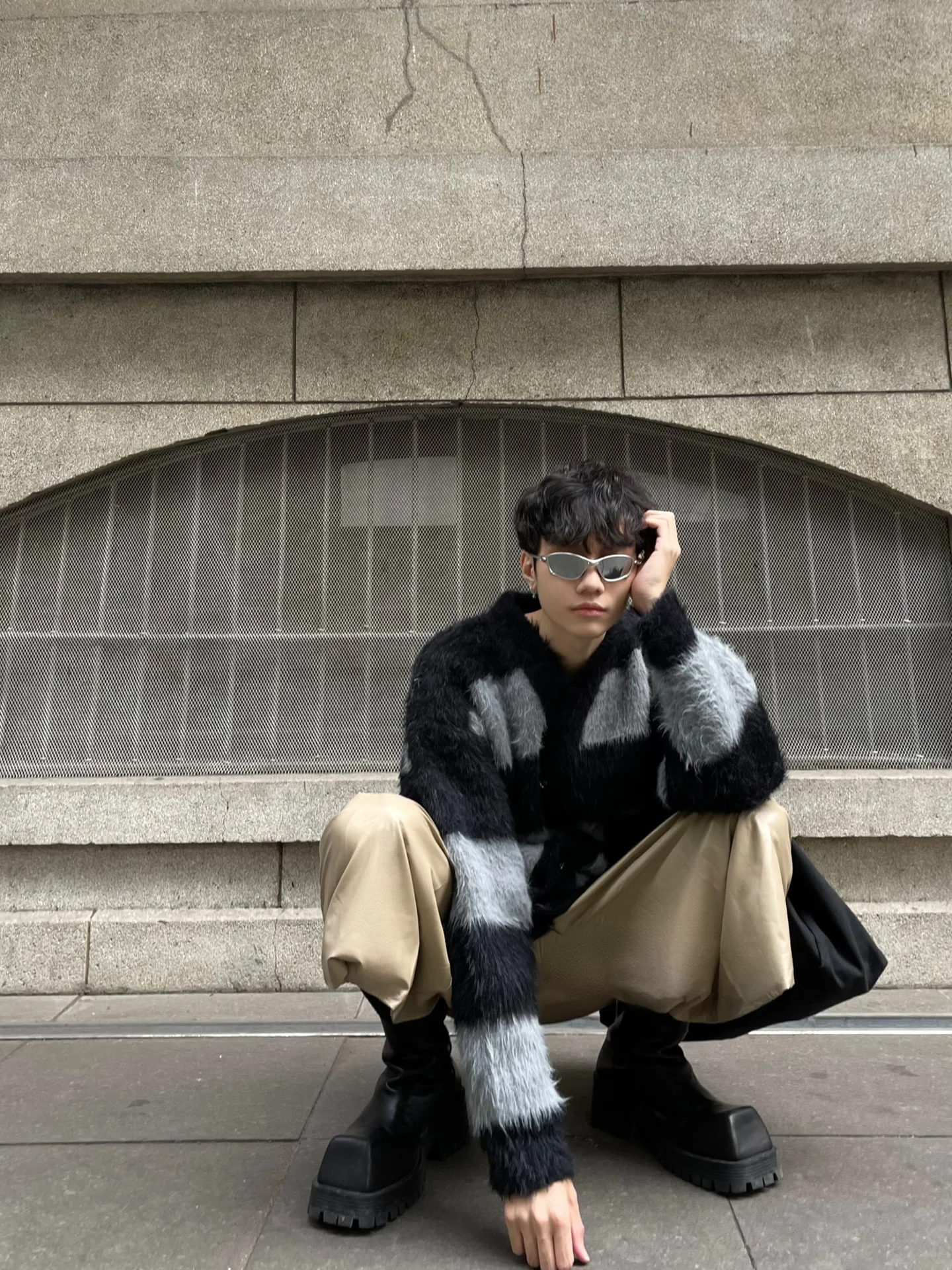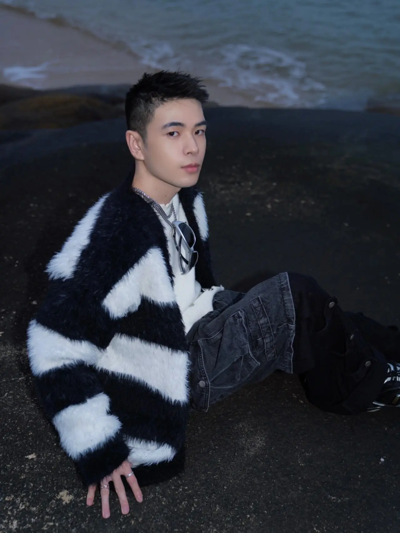 Aidase Striped Cardigan Men Single Breasted Temperament Simple Handsome High Street Panelled Hipster Spring Autumn Advanced Popular