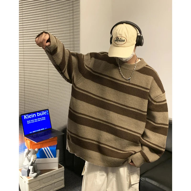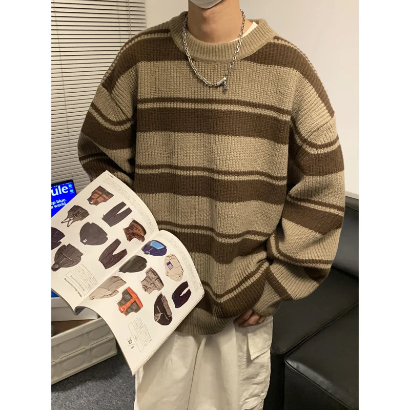 Aidase Striped Men Sweaters Men's Pullovers Harajuku Streetwear Winter New Casual Loose Wool Warm Knited Turtleneck Pullovers Top 3XL