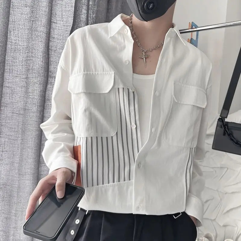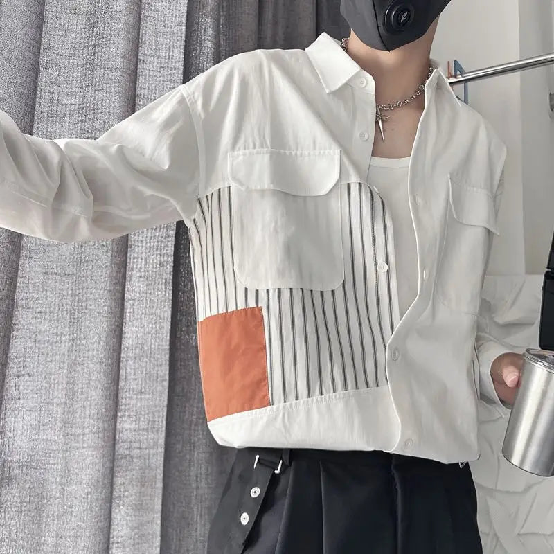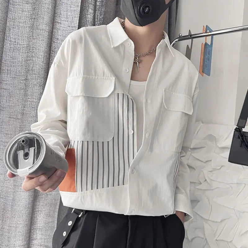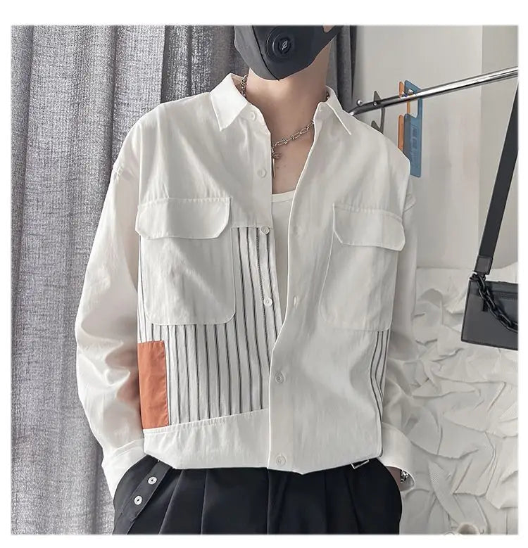 Aidase Striped Patchwork Handsome Shirt Men's New Fashionable Casual Long Sleeved Shirt Trendy Thin Top