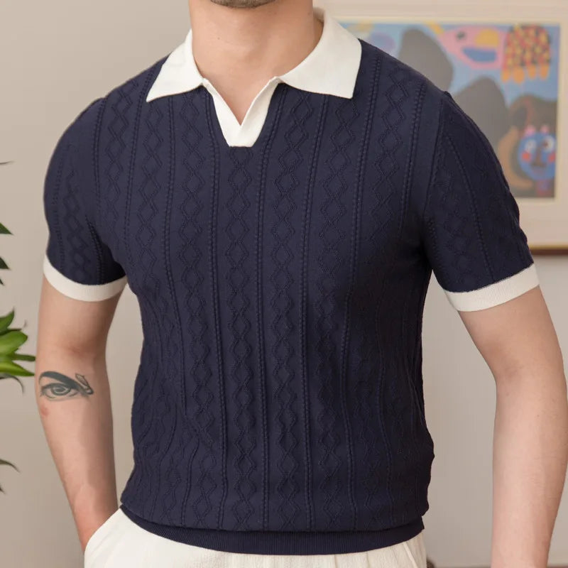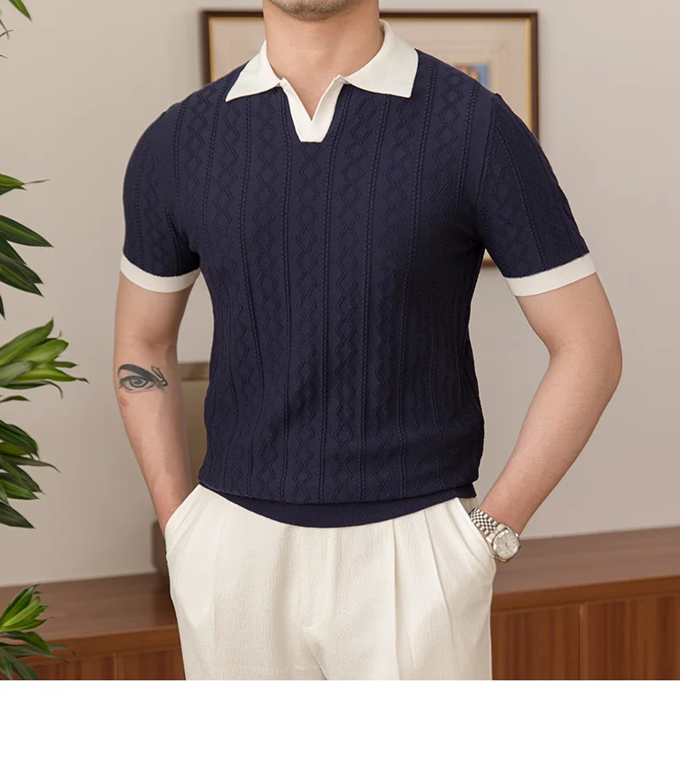 Summer Contrasting Jacquard Men's Polo Comfortable Breathable Knitted Ice Silk British High Quality Short Sleeve Polo Shirt