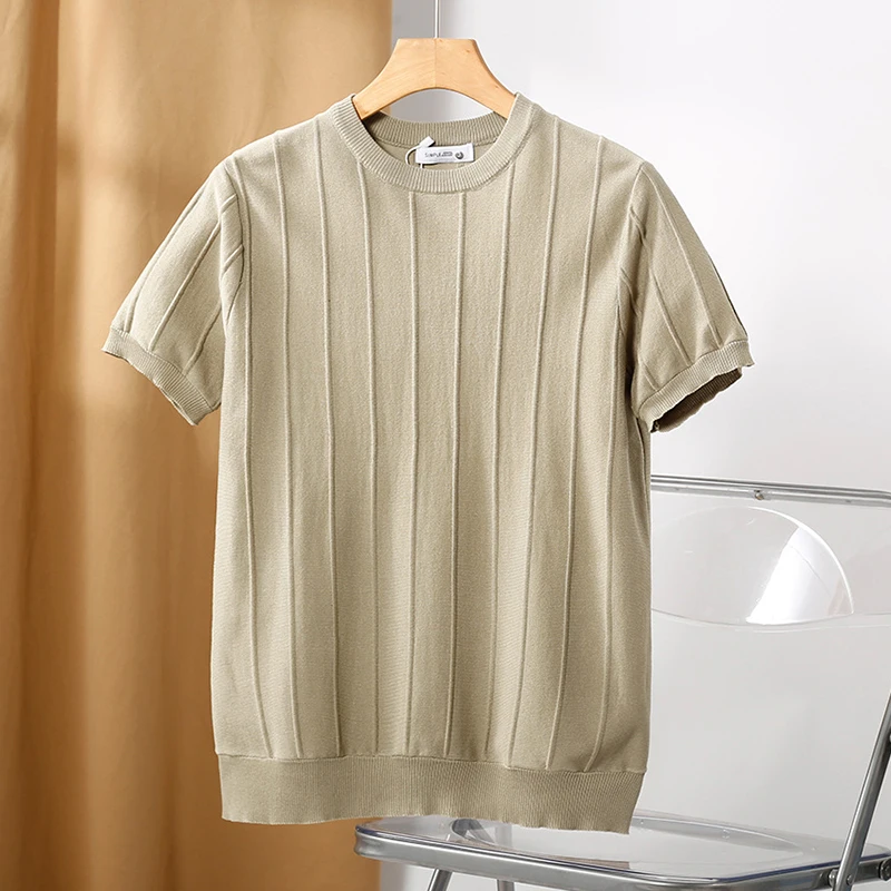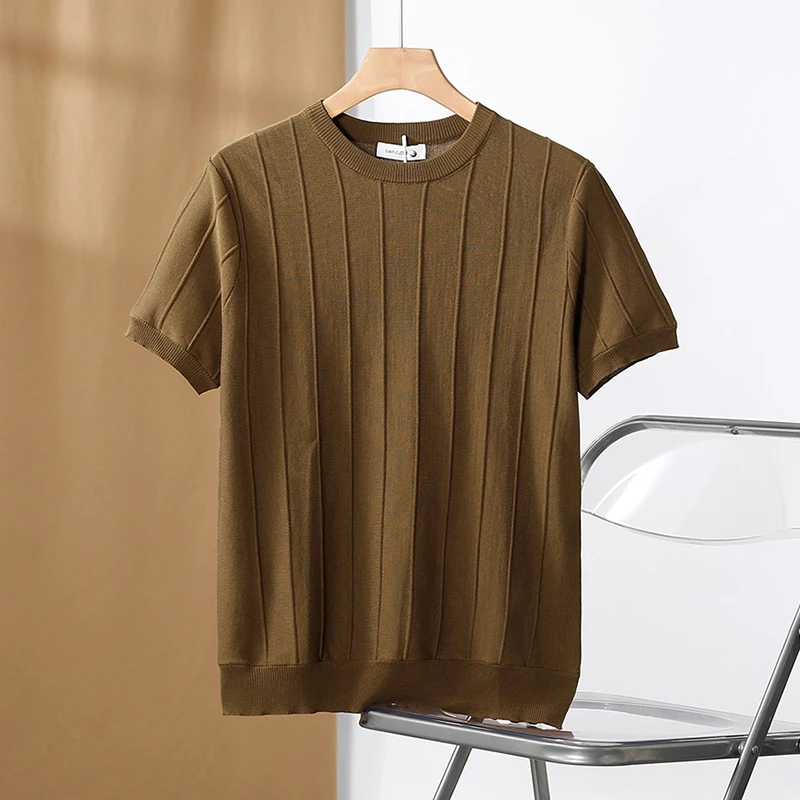 AIDASE - Summer Leisure O Neck Short Sleeve Knitted Tops Men Knitwear Fashion Solid Color Tees Daily Casual Mens Slim Fit Knit T-shirts