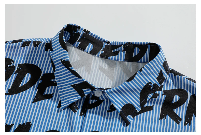 Aidase Summer Men Letter Printed Shirts Hawaiian Loose Shirts Short Sleeve Beach Loose Tops Blouse Streetwear Dress Clothing