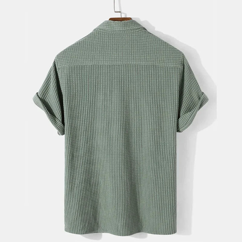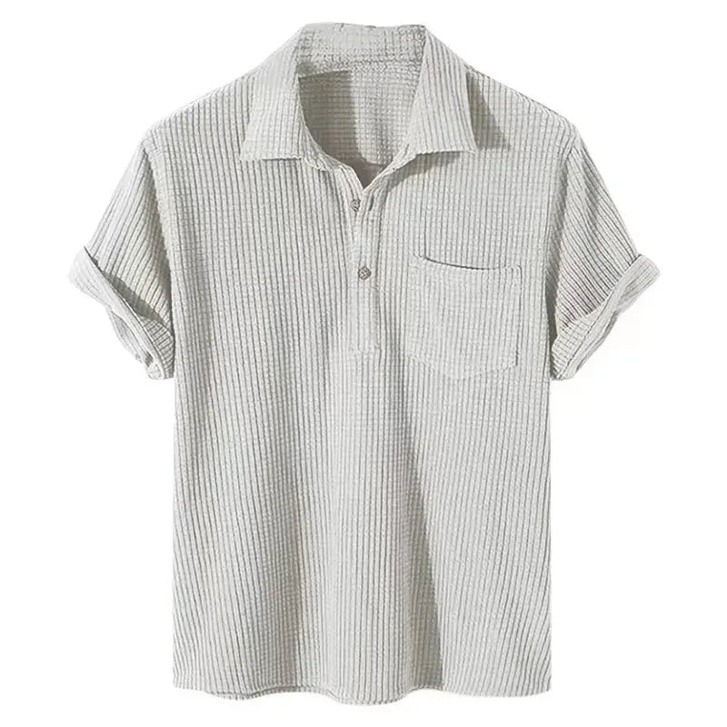 AIDASE - Summer Mens Casual Plaid Polo Shirts Top Turn-Down Collar Button Blouse Short Sleeve Solid Pocket Blouse Shirt Men Clothing