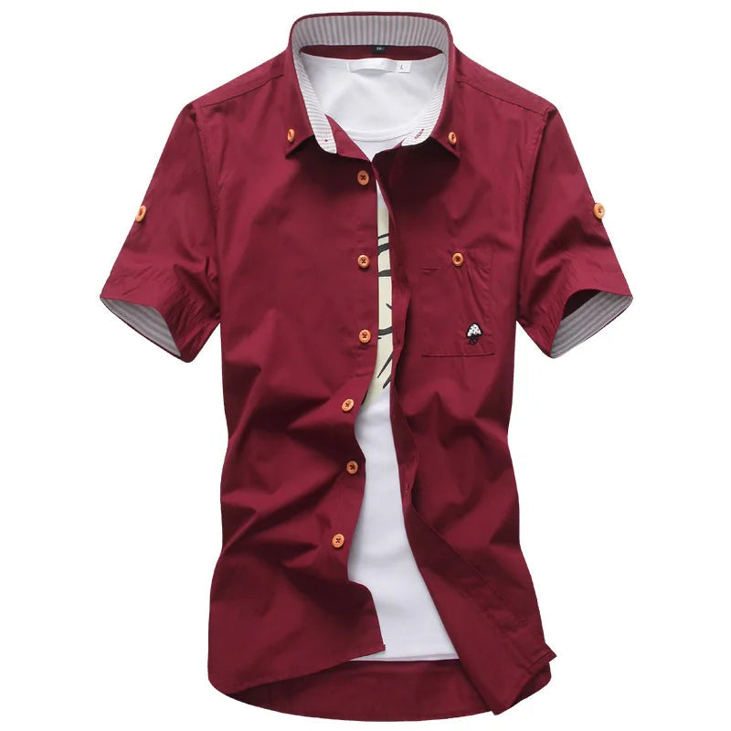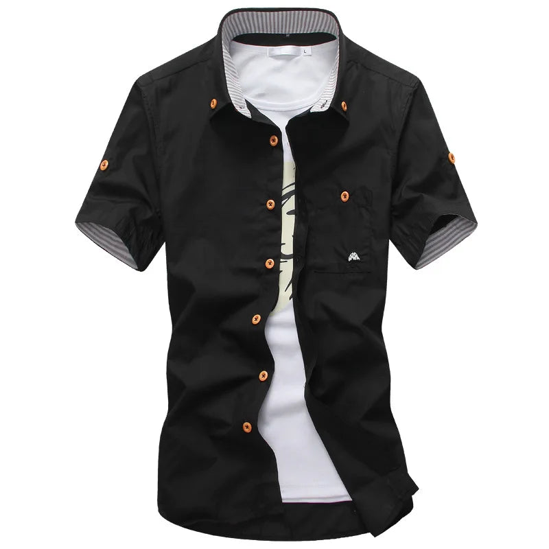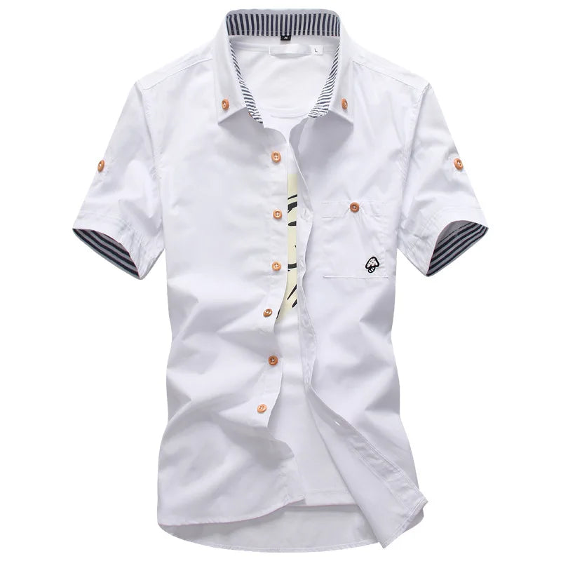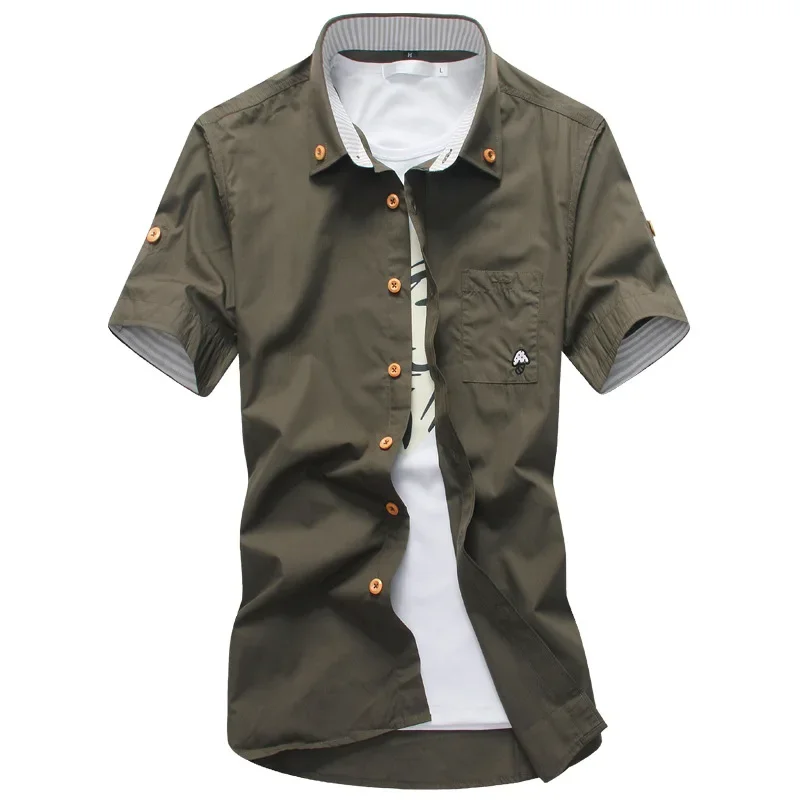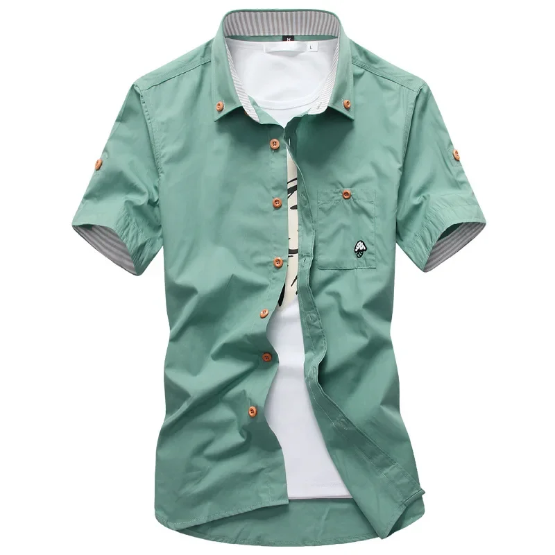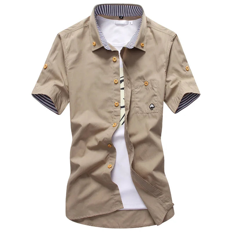 AIDASE - Summer men's Korean-style slim-fit embroidery small mushroom casual short-sleeved stand collar men's shirt
