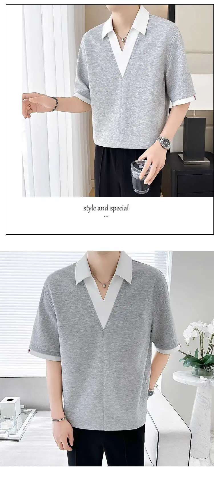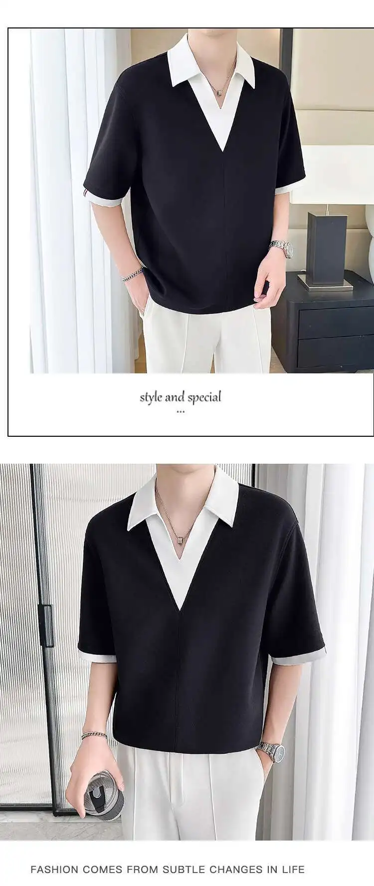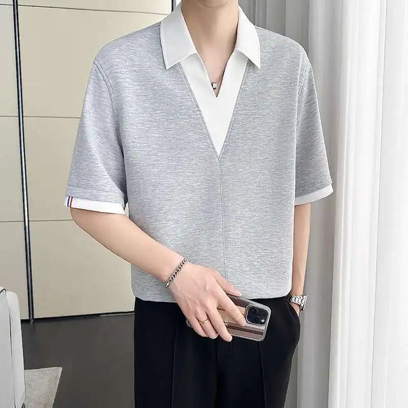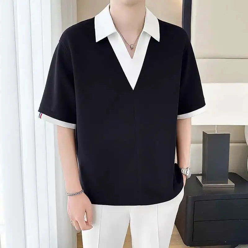 AIDASE  -  Summer New Contrast Color Shirt Mid Sleeve T-shirt 2025 Korea Fashion Luxury Casual Male Tops New 21E5375