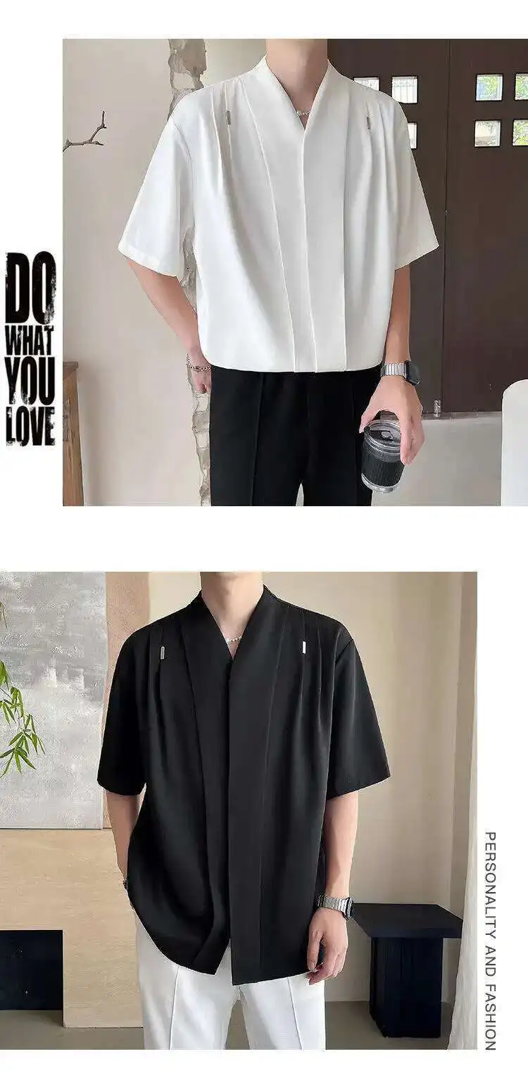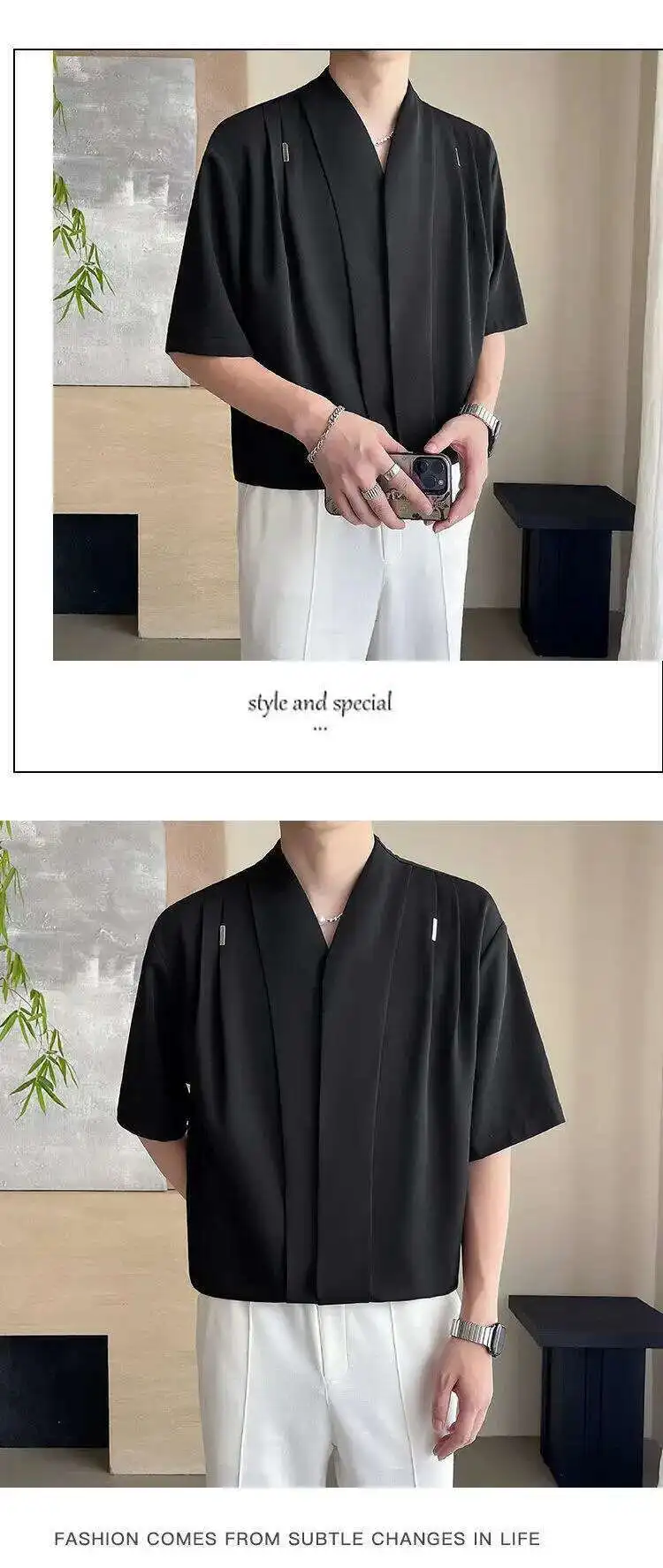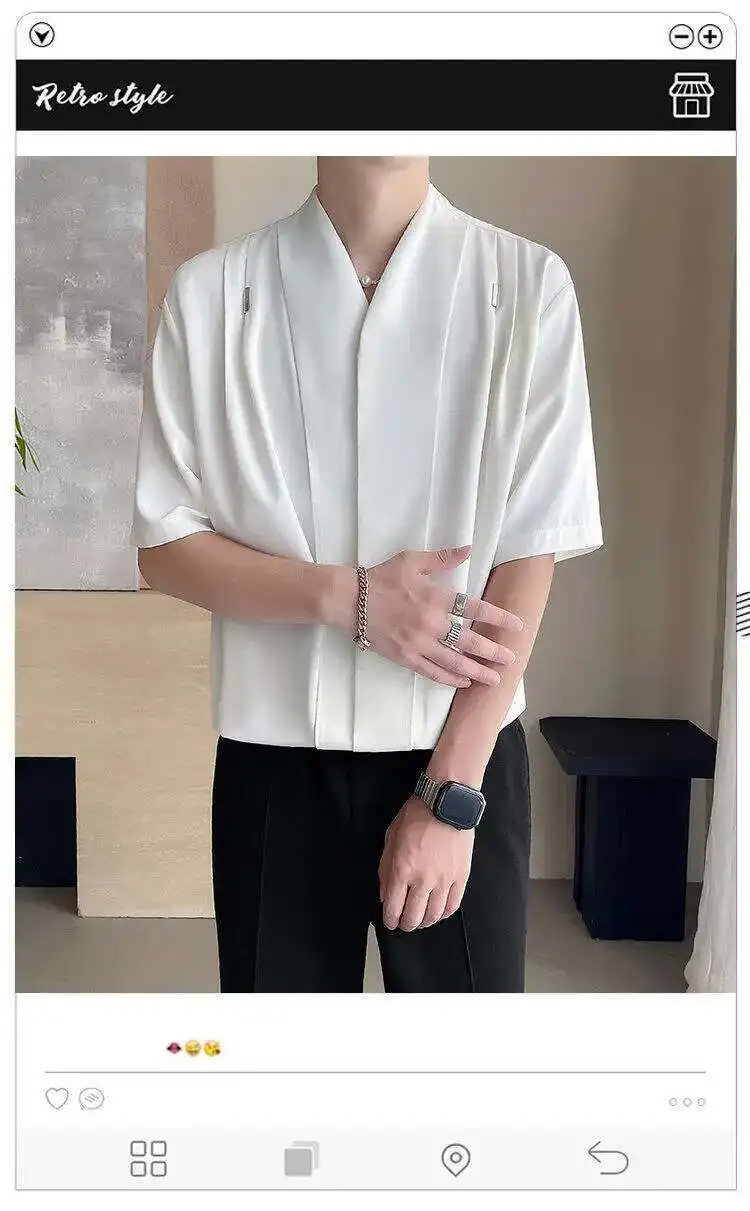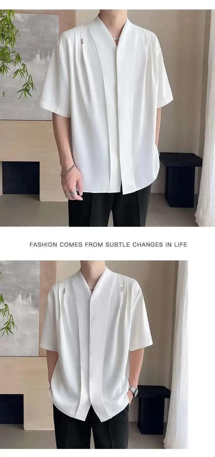 AIDASE - Summer New Ice Silk Drape Mid Sleeved Men's Shirt V-neck Korea Fashion Casual Male Tops Loose