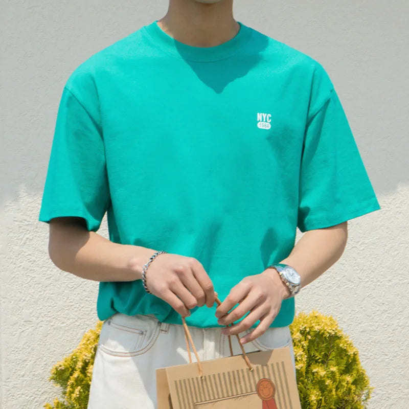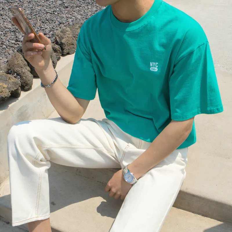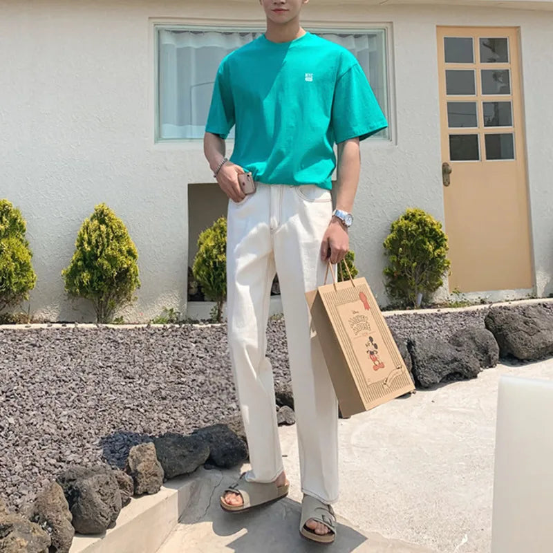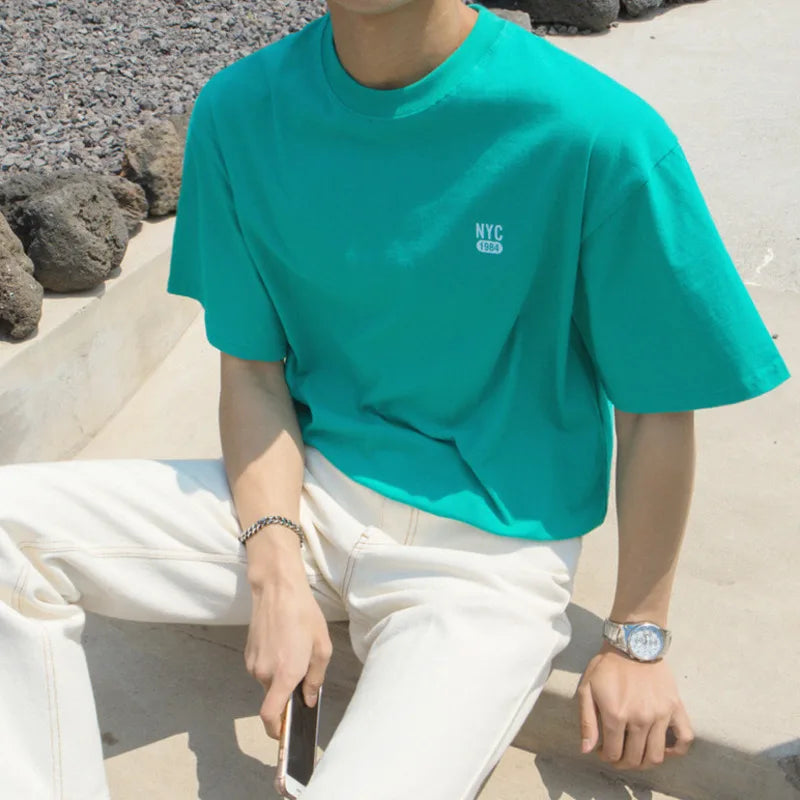AIDASE - Summer New Man Ins Korean Streetwear Elegant Tees Casual Fashion High Street Cotton Loose Half Sleeve O-Neck T-shirt HK5146
