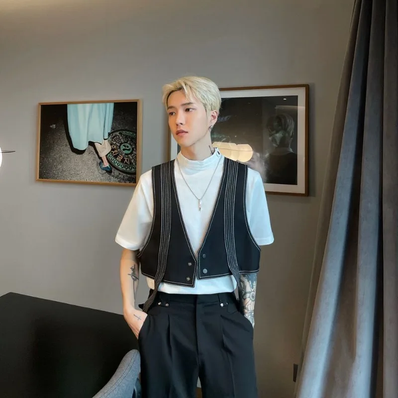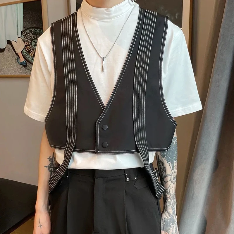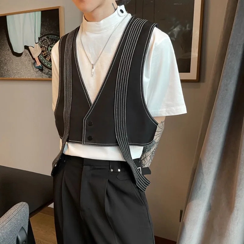 Aidase Summer New Niche Design Outer Workwear Korean Style High-end Functional Cargo Suit Vest Men's Jacket Trendy Vest Aesthetic Chic