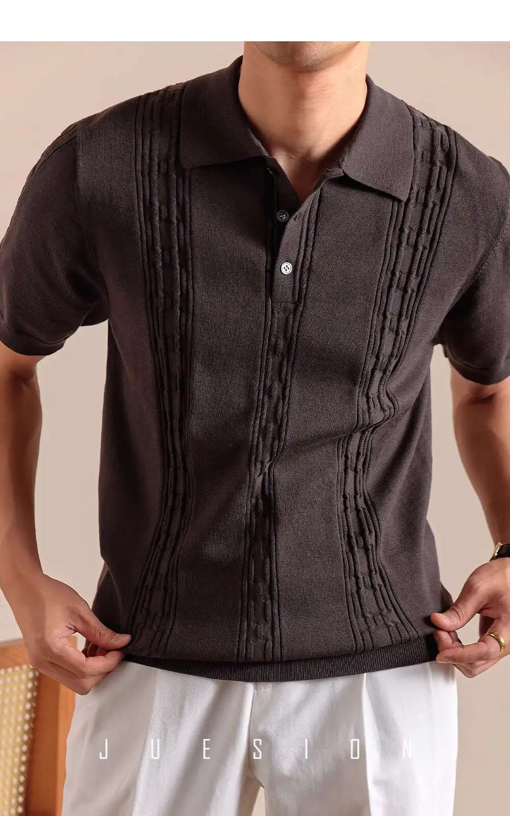 AIDASE - Summer Retro Collar Italy Polo Shirt Men Cotton Blend Short Sleeve Lightweight Breathable Casual Half Sleeve Top Knitted Tshirt