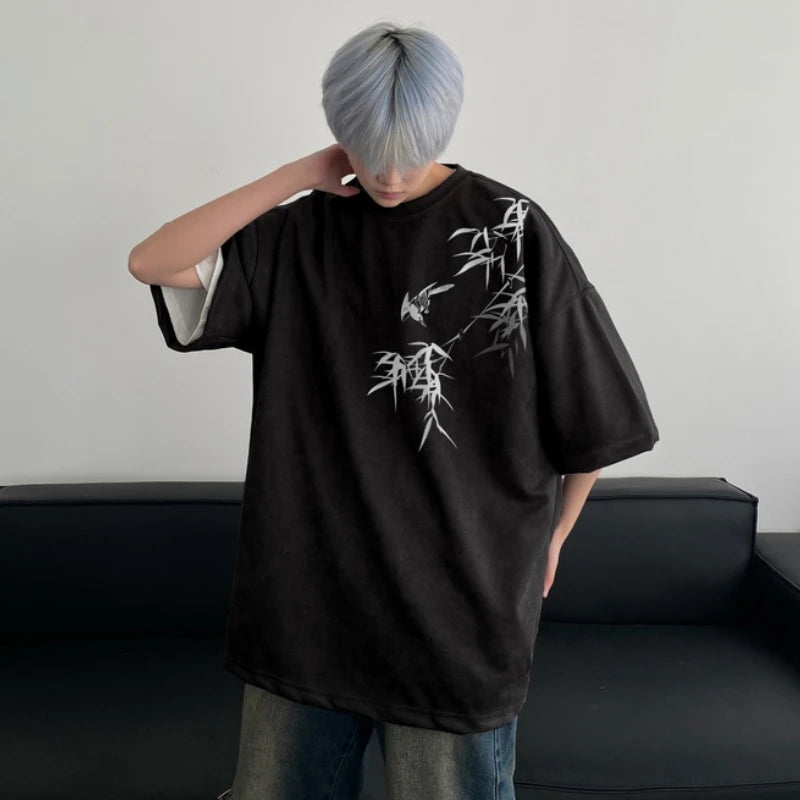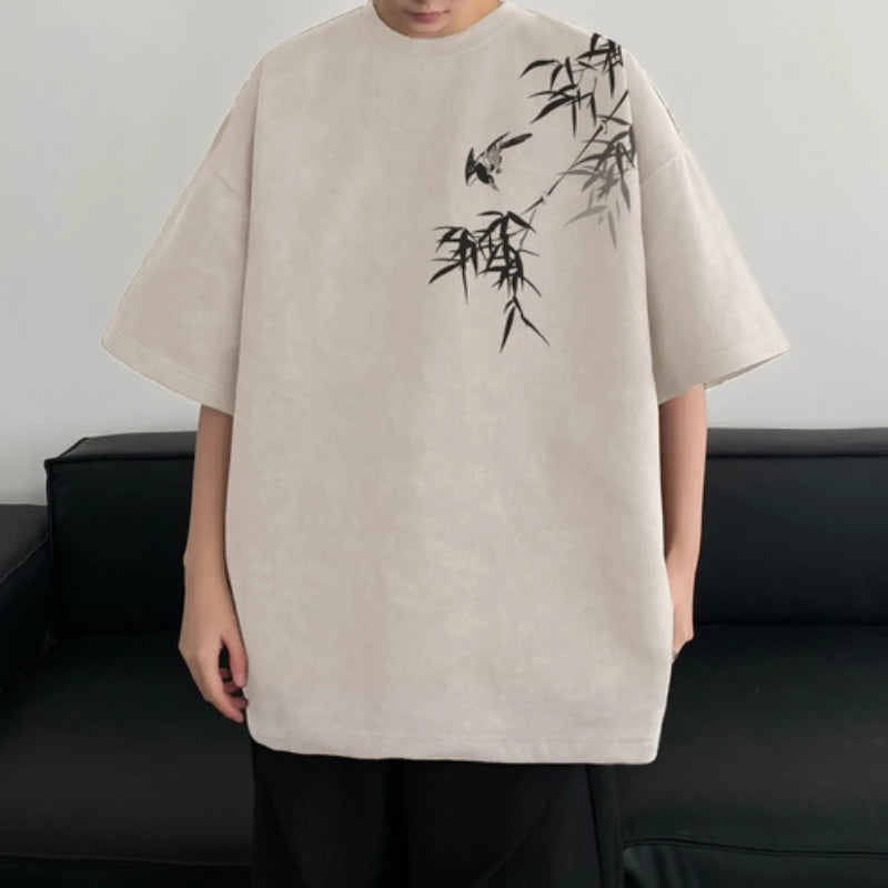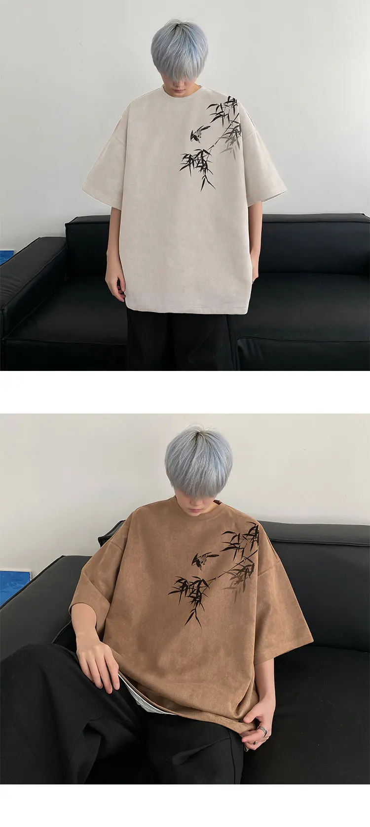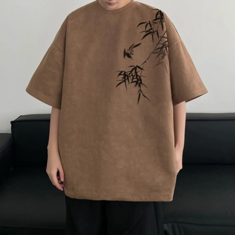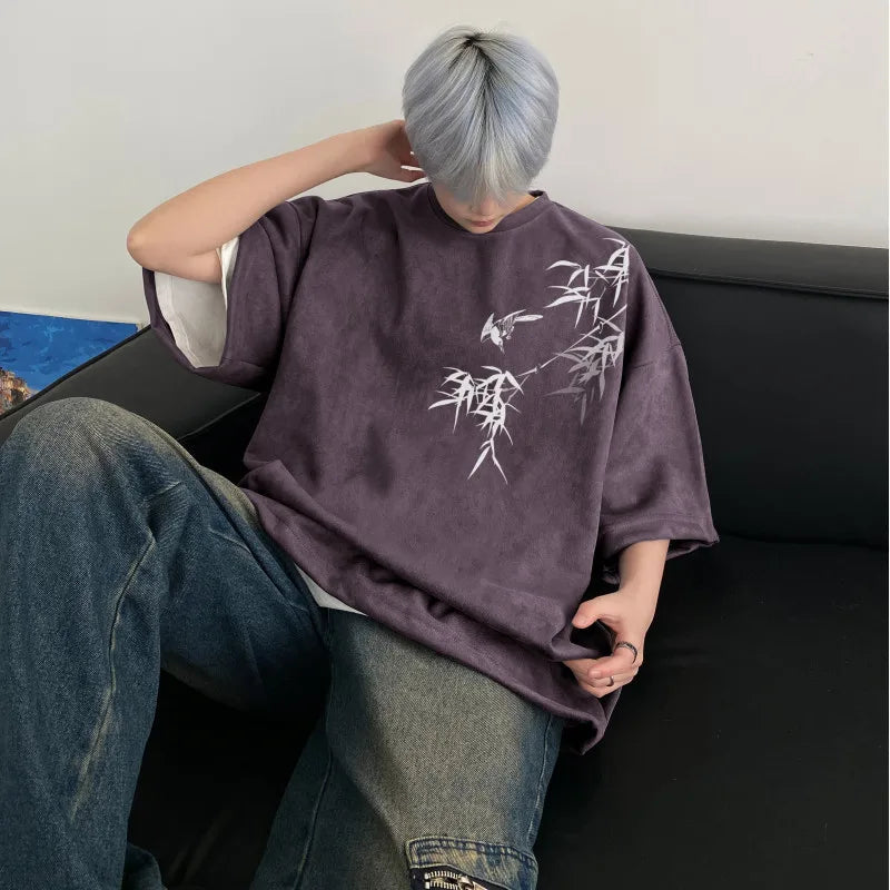 AIDASE  -  Summer Suede Bamboo Print Short Sleeve Retro Casual Loose Half Sleeve Trendy Fashion Multicolor Men Women Tops