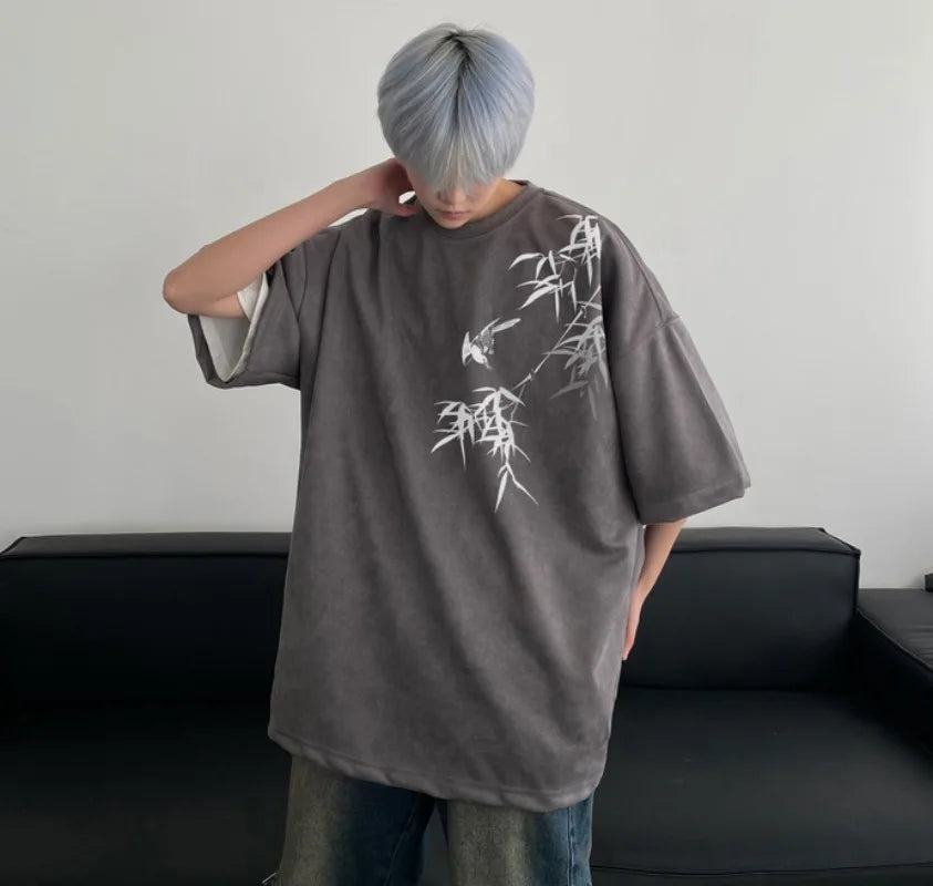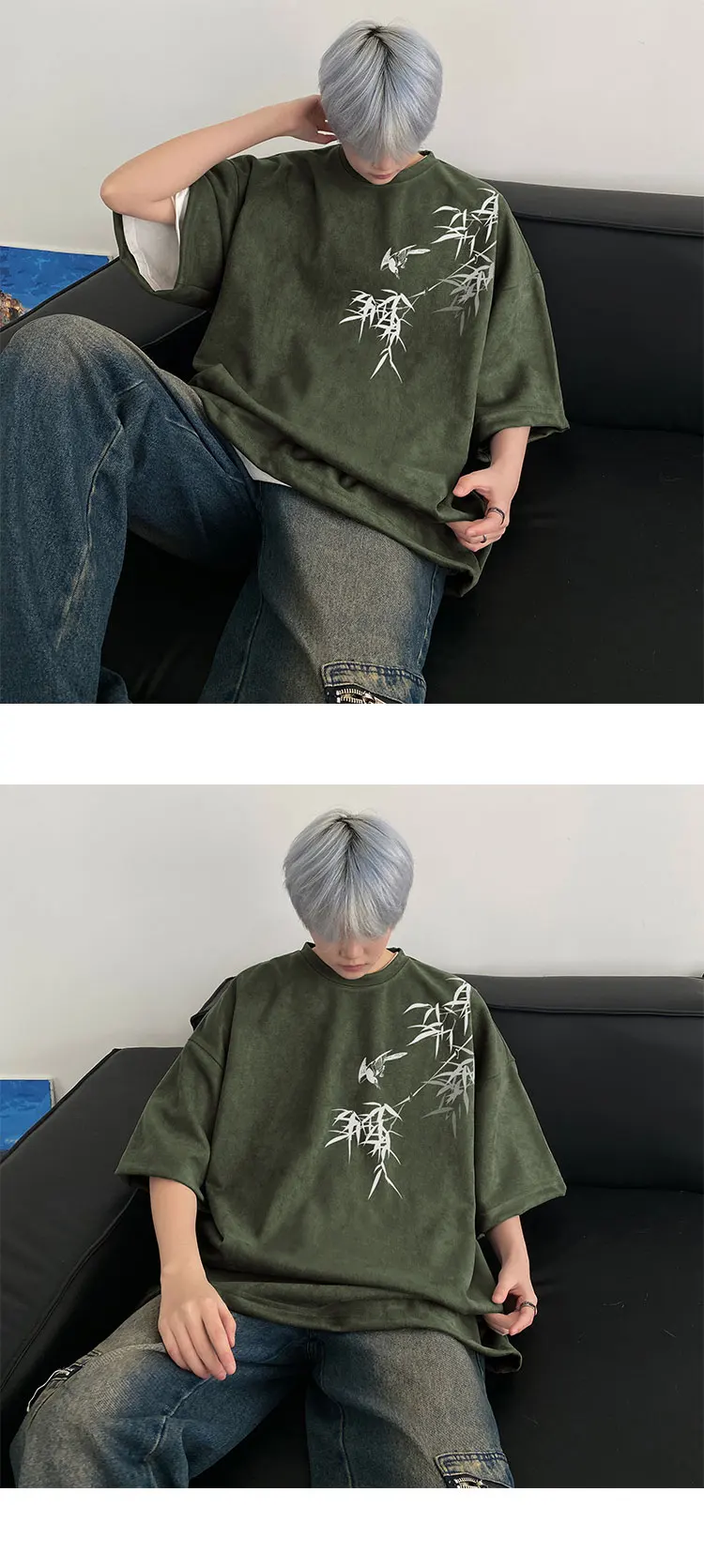 AIDASE - Summer Suede Bamboo Print Short Sleeve Retro Casual Loose Half Sleeve Trendy Fashion Multicolor Men Women Tops