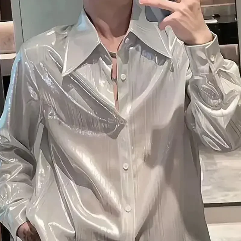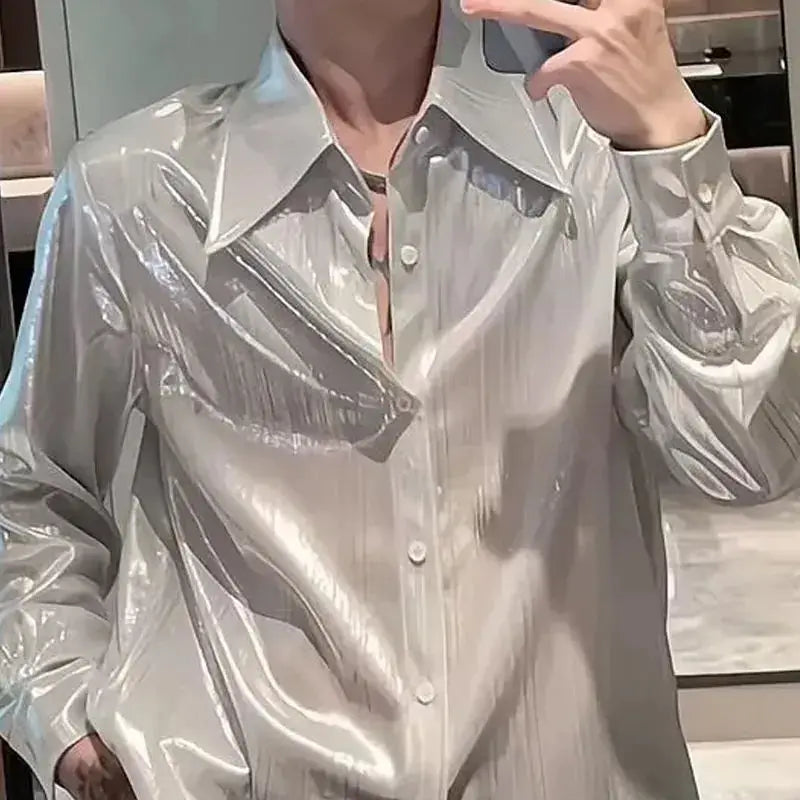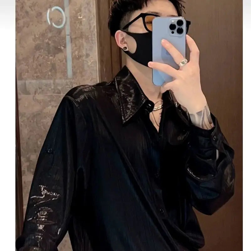 AIDASE - Summer Thin Korean Smooth Shirts Men Clothing Solid Lapel Single Breasted Streetwear Fashion Loose Long Sleeve Tops