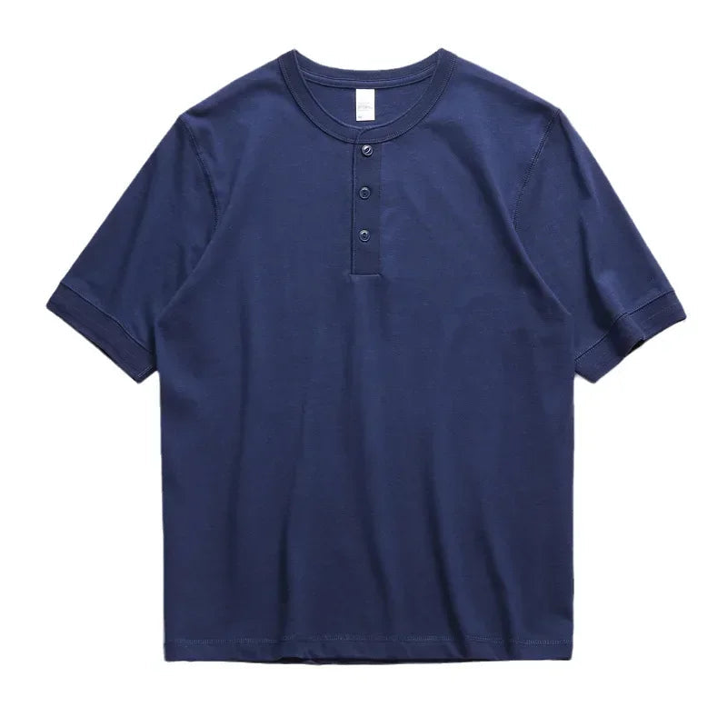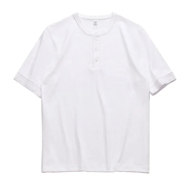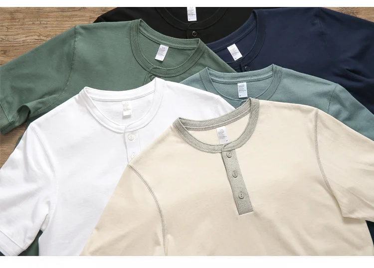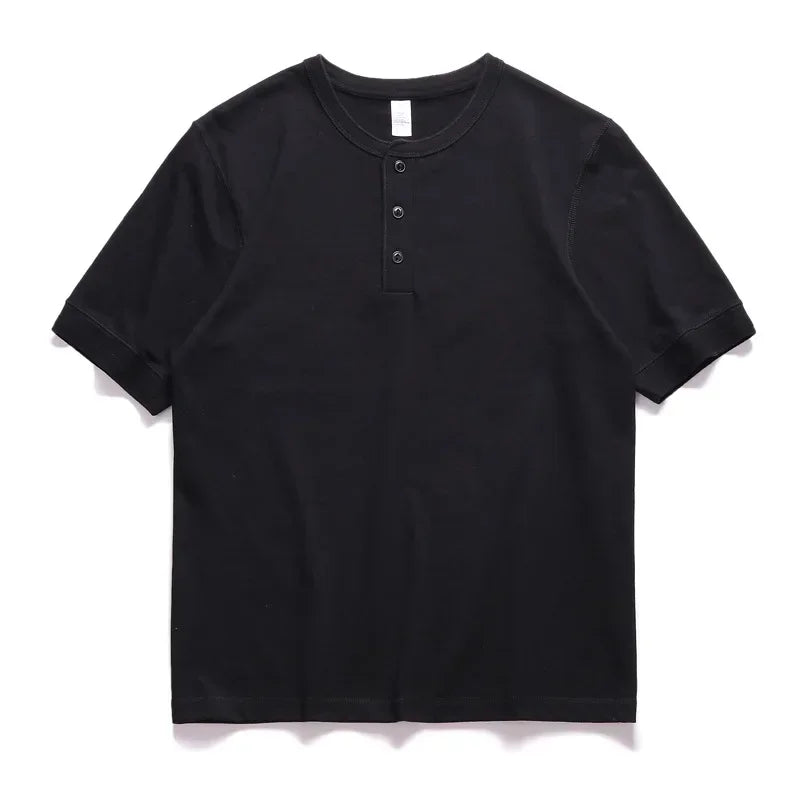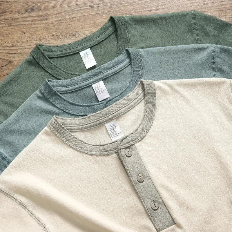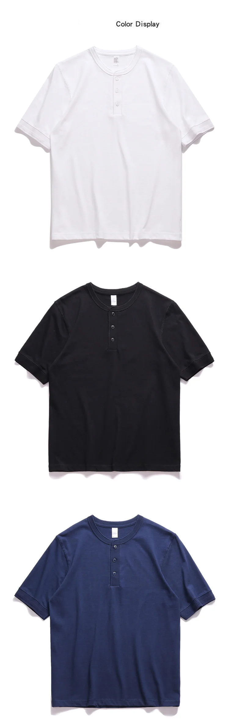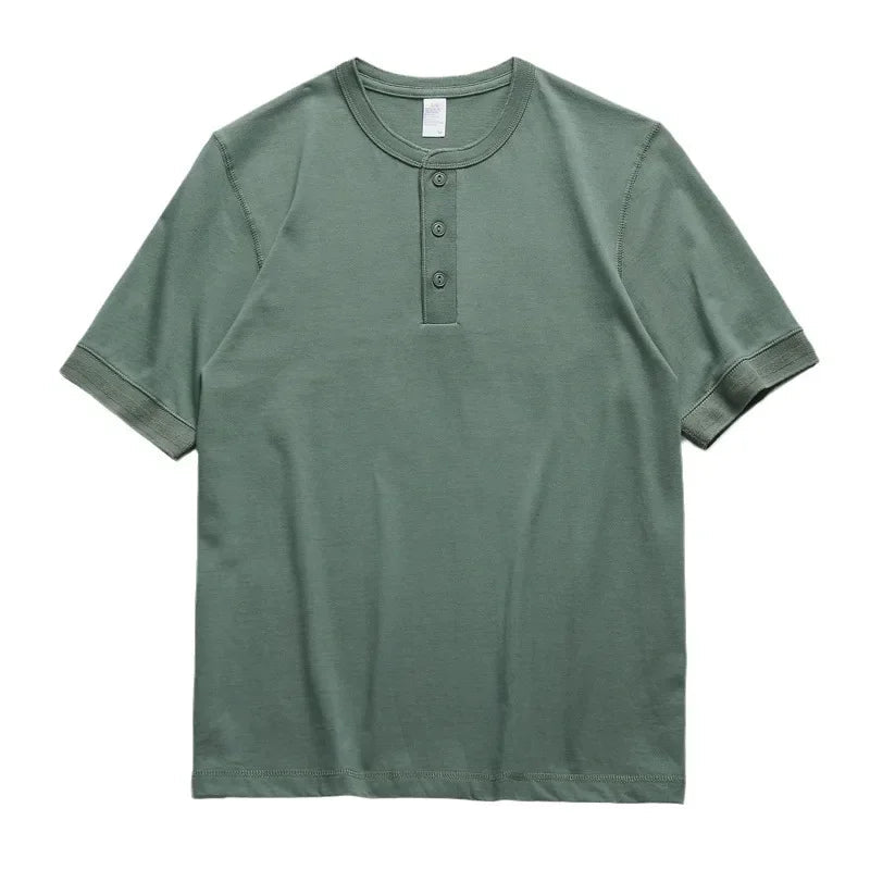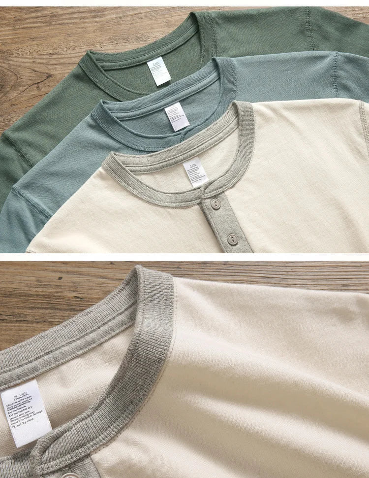 AIDASE  -  Three Needle American Retro Heavy T-shirt Men's Amikaji Pure Cotton Tube Weaving T-shirt Henry Collar Unisex Short Sleeved Shirt