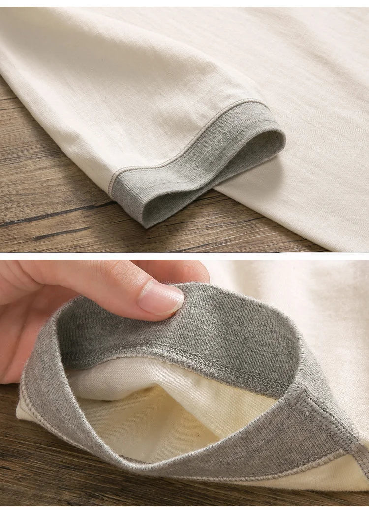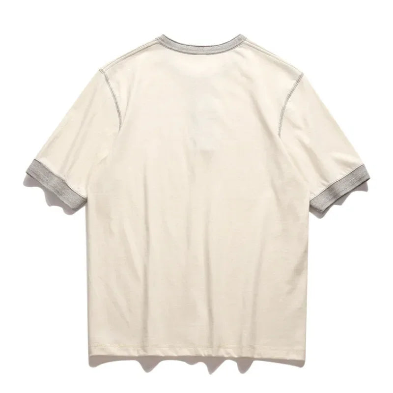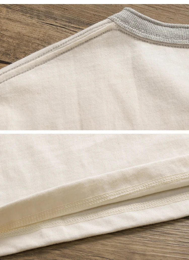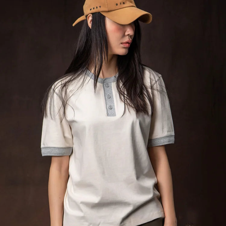 AIDASE - Three Needle American Retro Heavy T-shirt Men's Amikaji Pure Cotton Tube Weaving T-shirt Henry Collar Unisex Short Sleeved Shirt