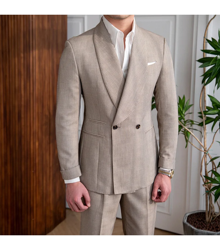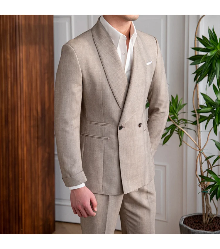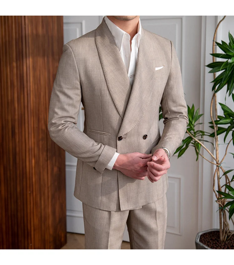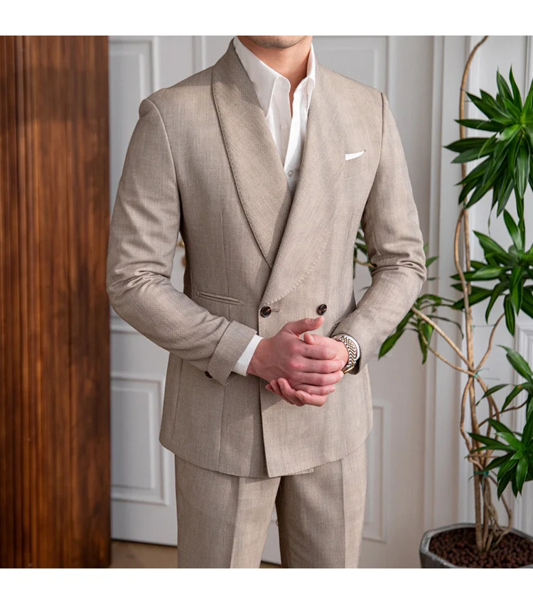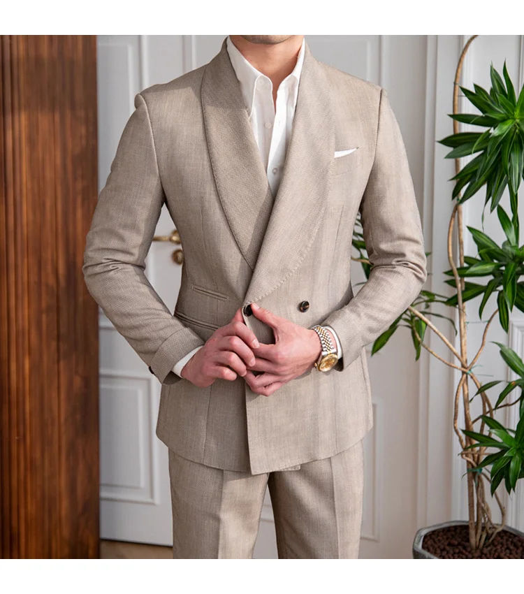 Top Quality British Double Breasted Designer Suit Two Piece Wedding Party Suit Groom Banquet Men Suit Slim Costume Homme Mariage