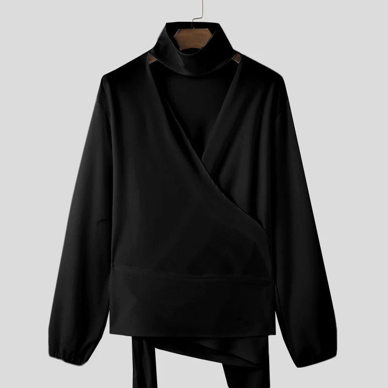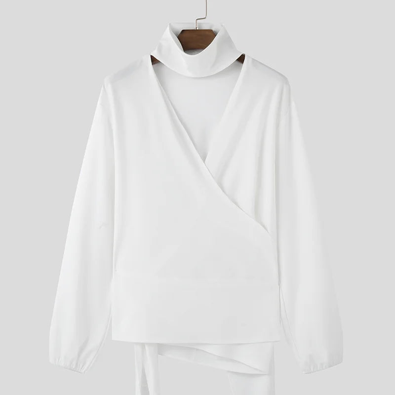 AIDASE  -  Tops American Style Sexy Men's Deconstruction Design Solid V-neck Shirts Casual Clubwear Long Sleeved Blouse S-5XL