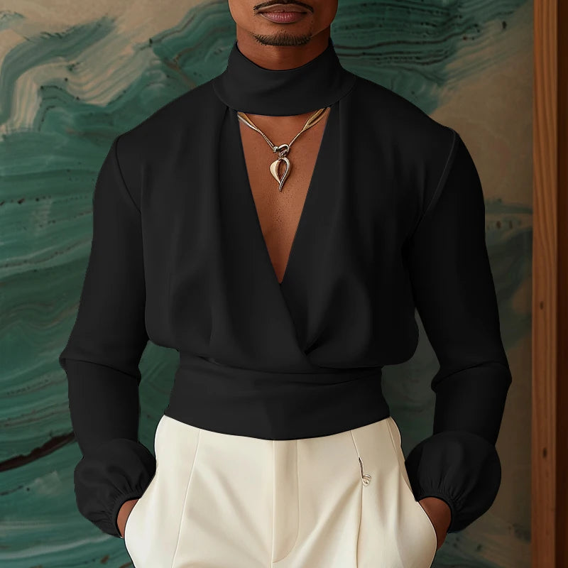 AIDASE - Tops American Style Sexy Men's Deconstruction Design Solid V-neck Shirts Casual Clubwear Long Sleeved Blouse S-5XL