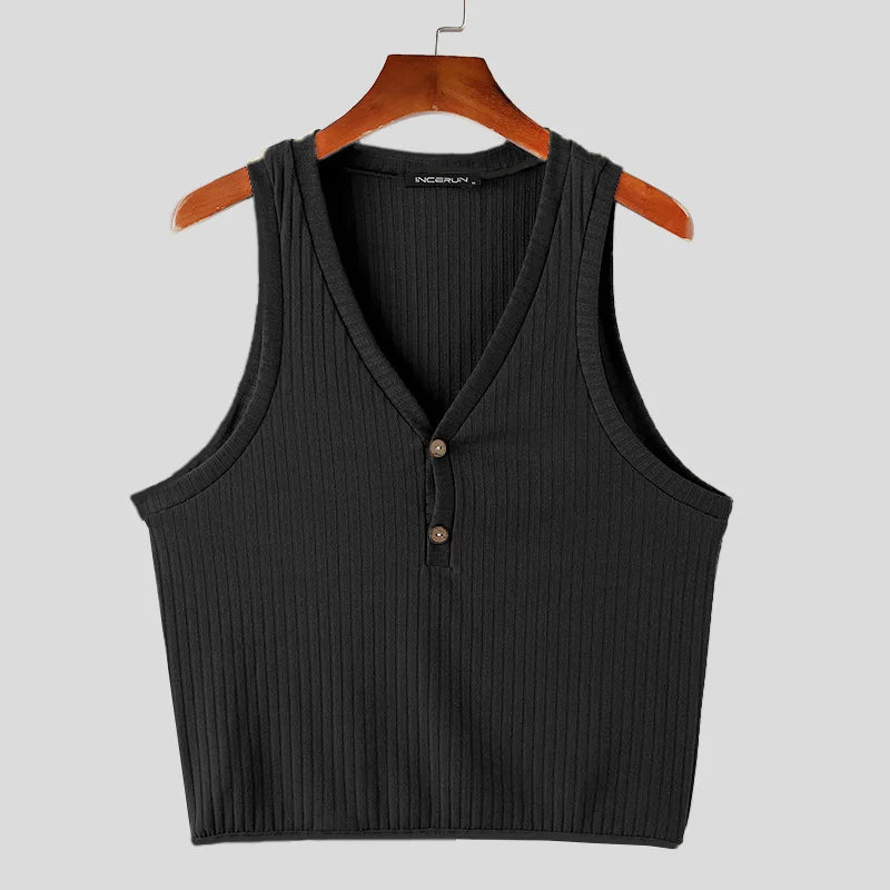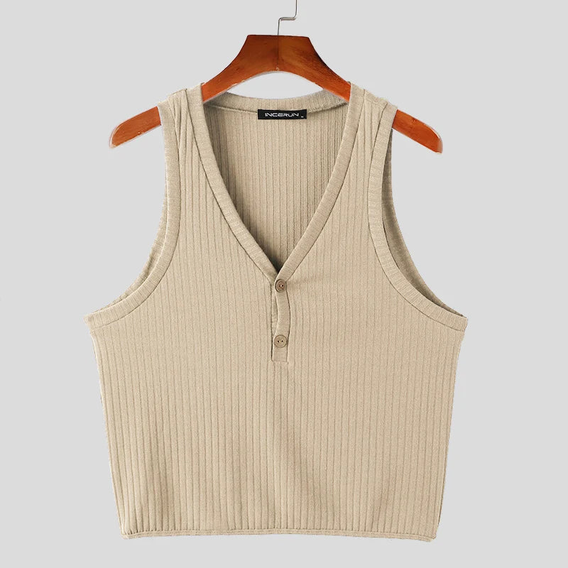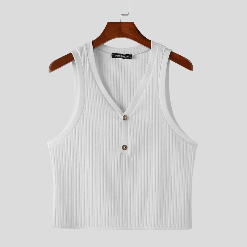 Aidase Tops Korean Style Men Summer Fashion Knitted Pit Stripe V-neck Vests Casual Simple Solid Sleeveless Tank Tops S-5XL