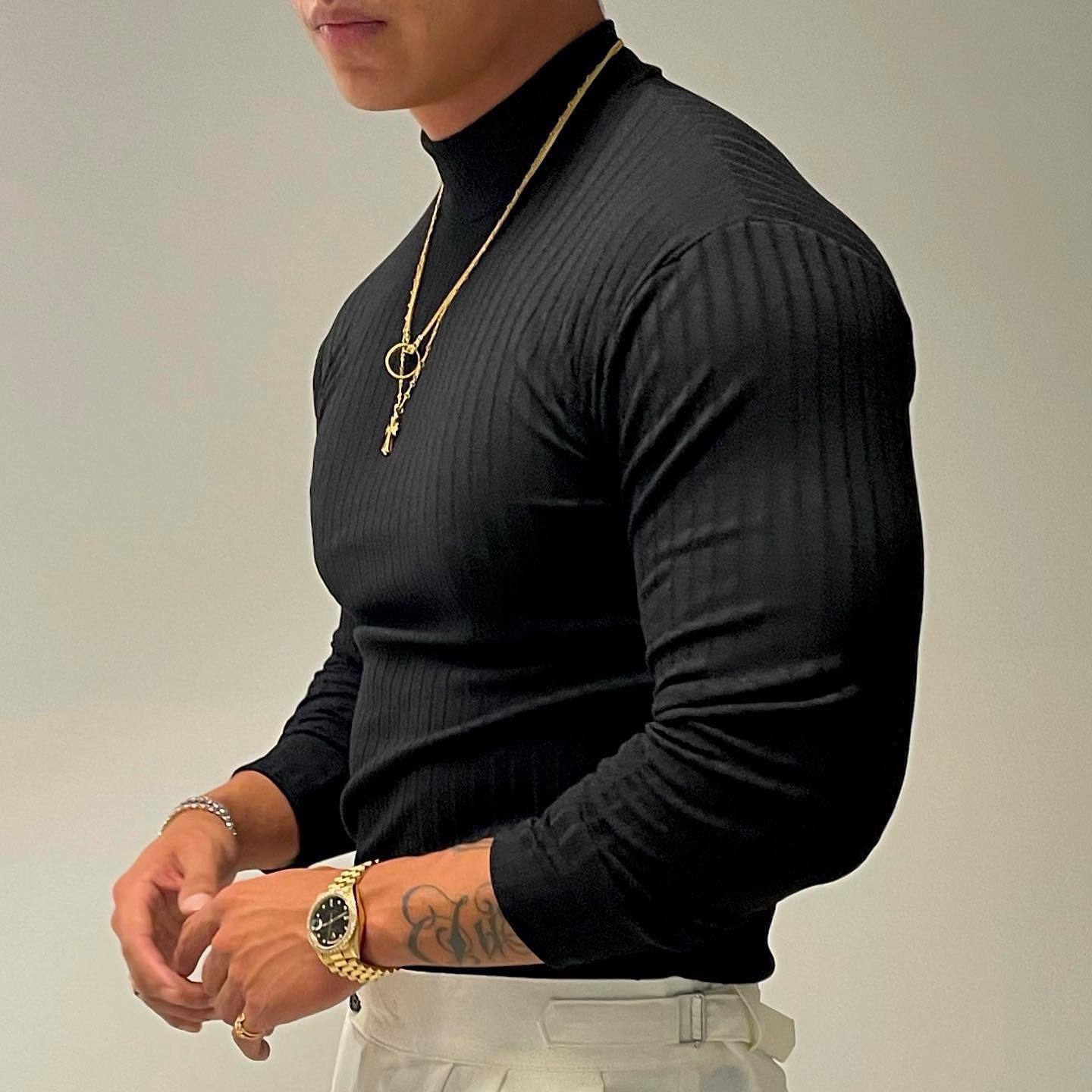 Aidase Trendy striped solid color fitness long sleeved men's running training elastic quick drying sports T-shirt with tight base