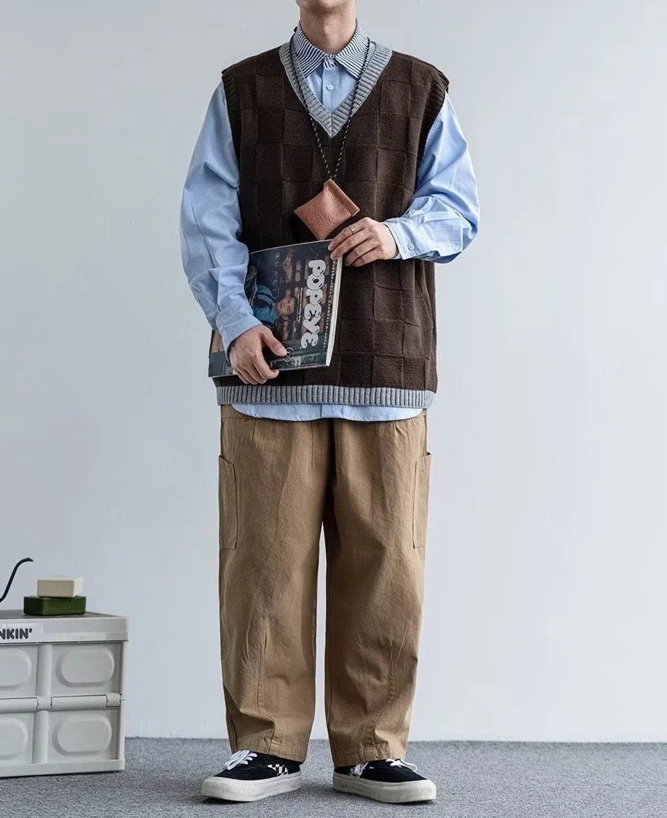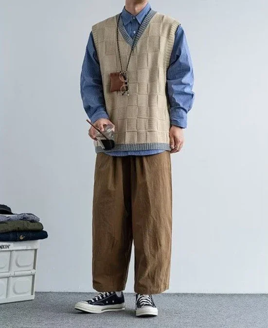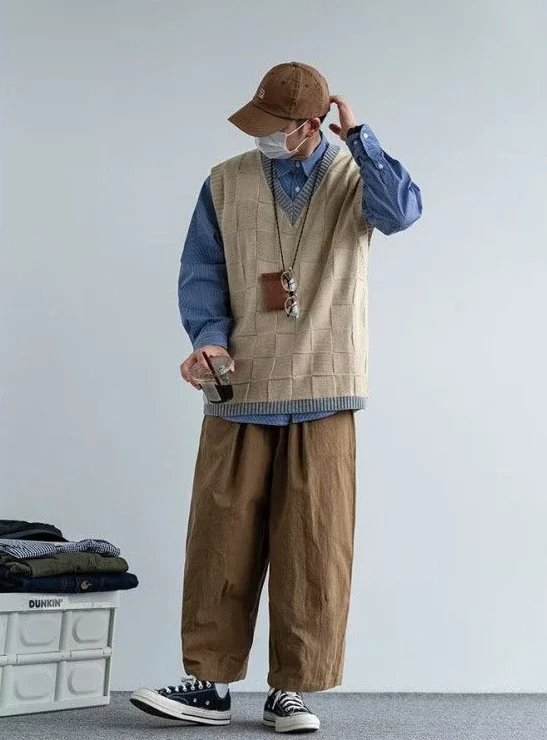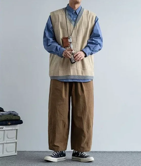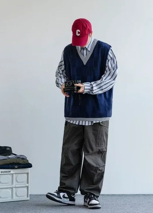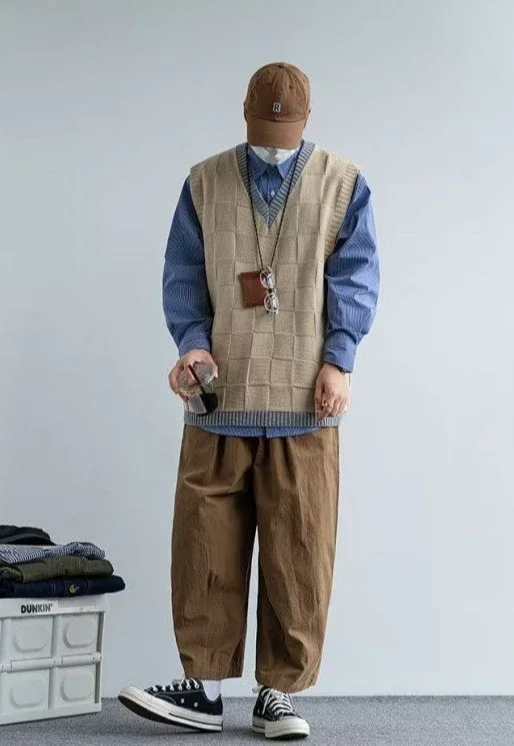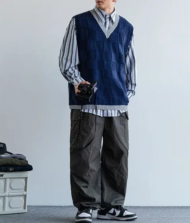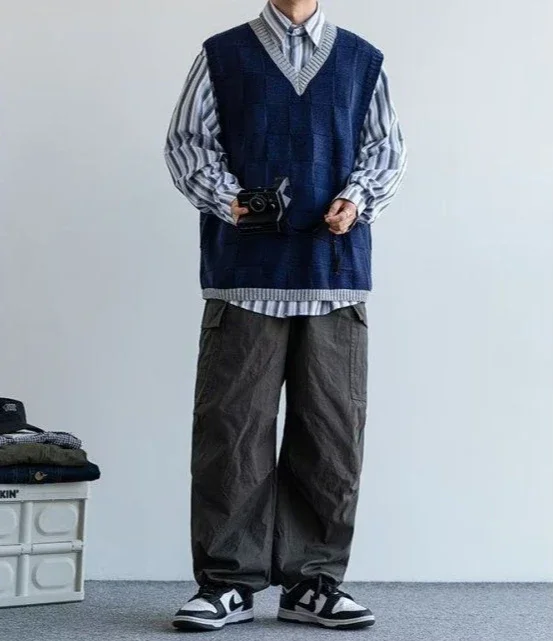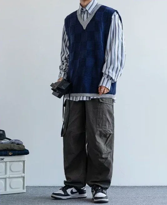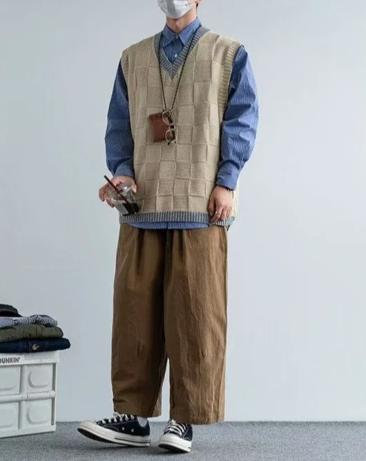 Aidase V Neck Waistcoat Autumnr and Winter Sweater Man Loose Fit Knit Vests for Men Casual Sleeveless Streetwear Top Elegant Cheap Open