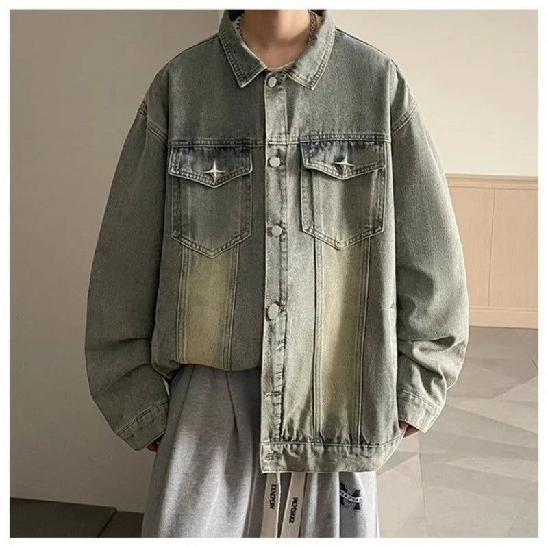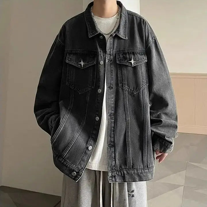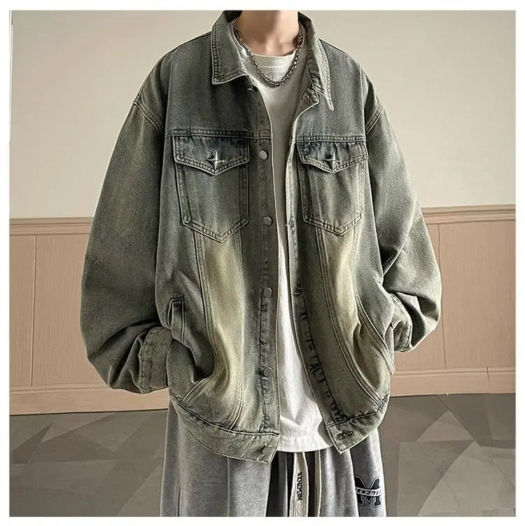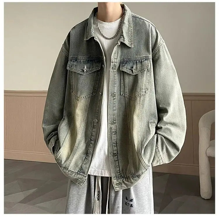 Aidase Versatile Fashion Atutumn Winter Men's Solid Casual Loose Pockets Denim Jacket Retro Coat Cool Boys Patchwork Pockets
