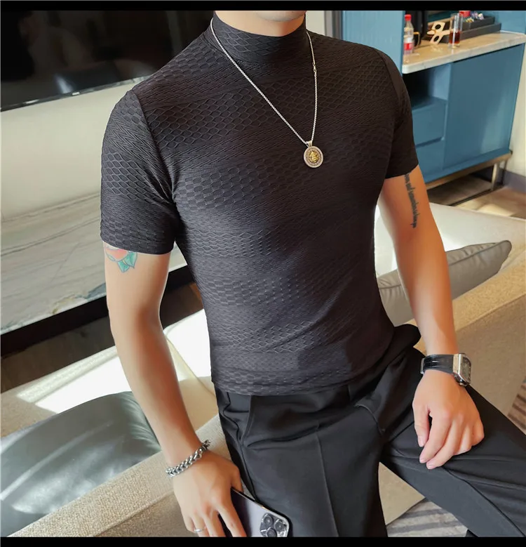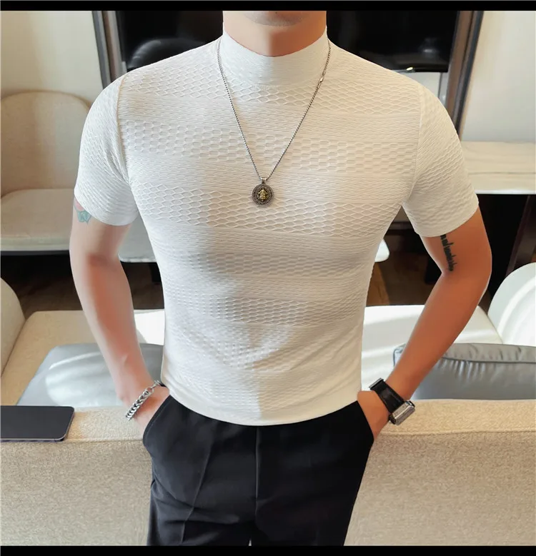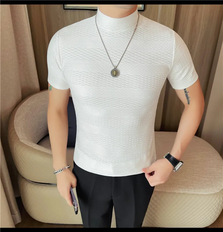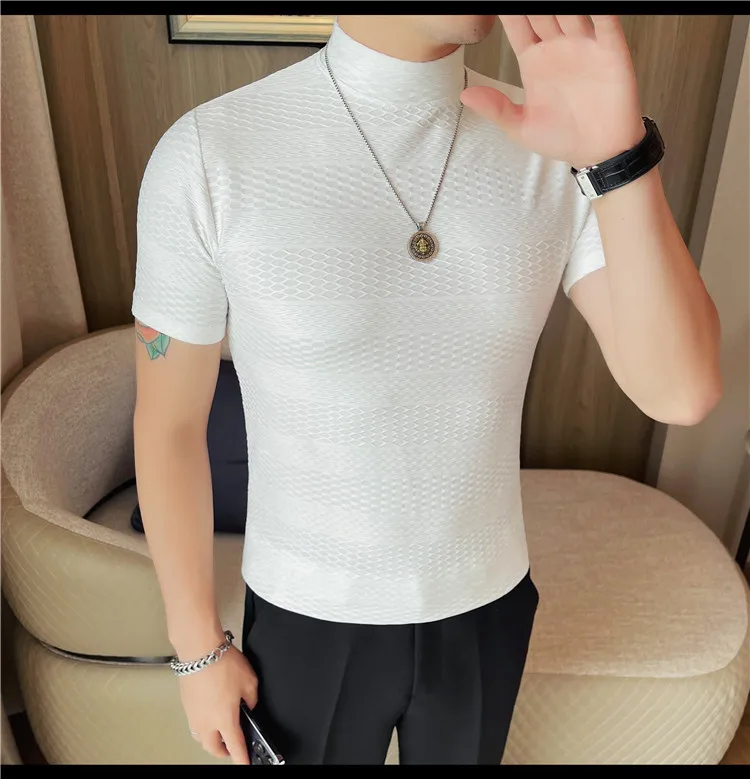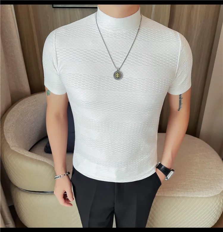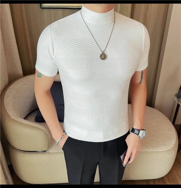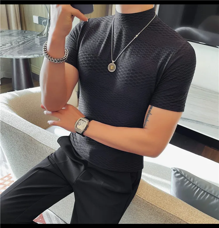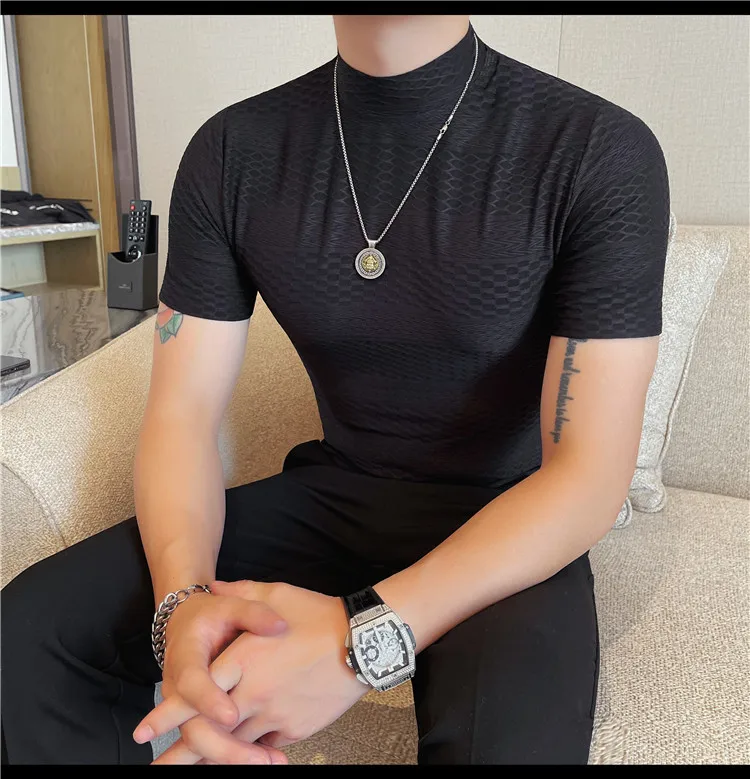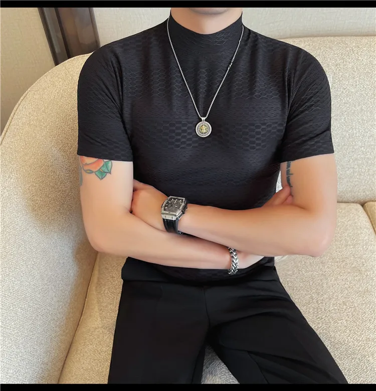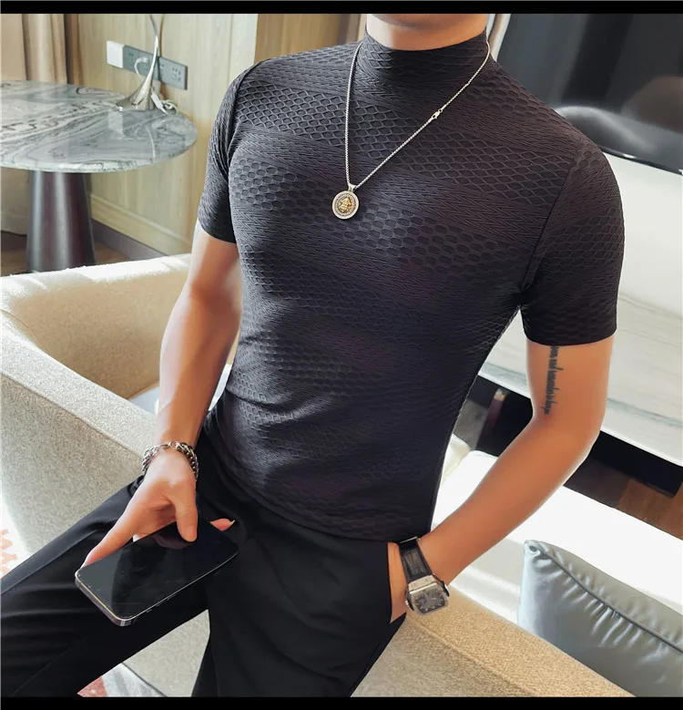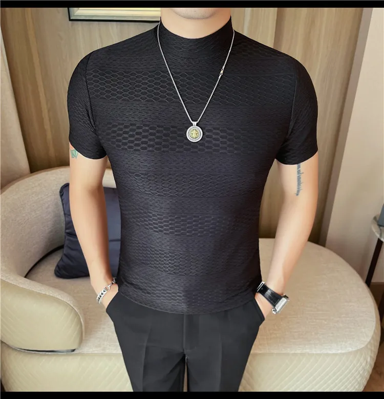 AIDASE - Versatile Thin Breathable Stretch Short Sleeve T-shirt, Men's Spring and Summer New Small Mid Collar Half Sleeve T-shirt