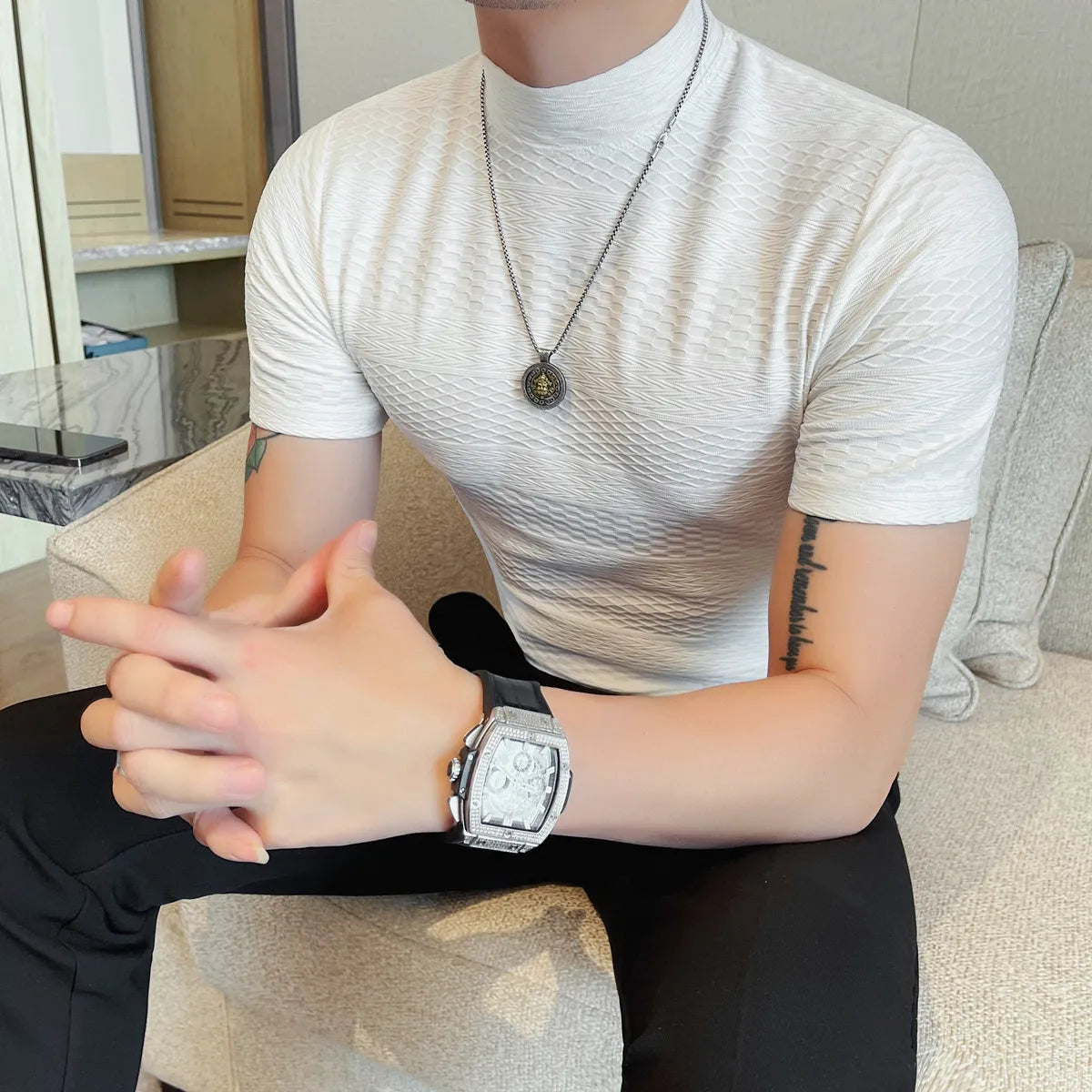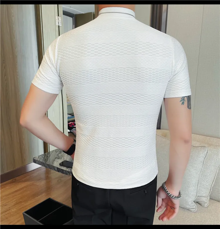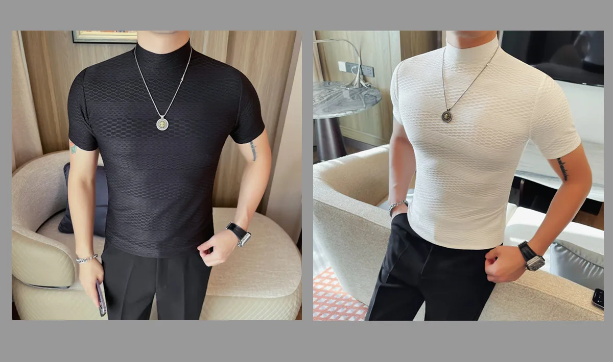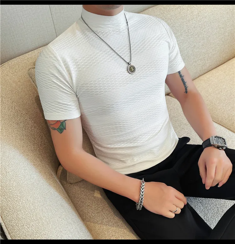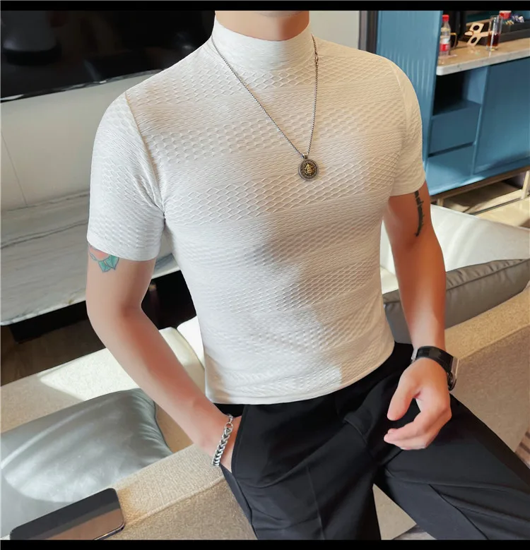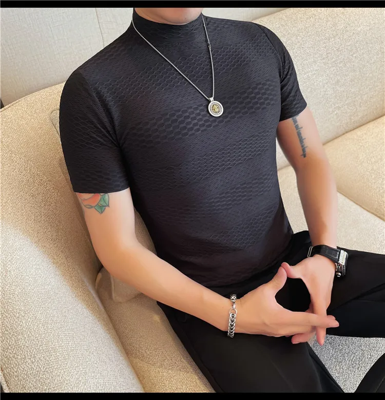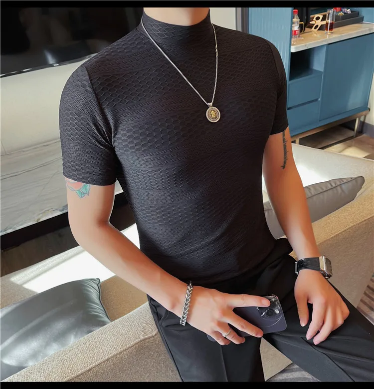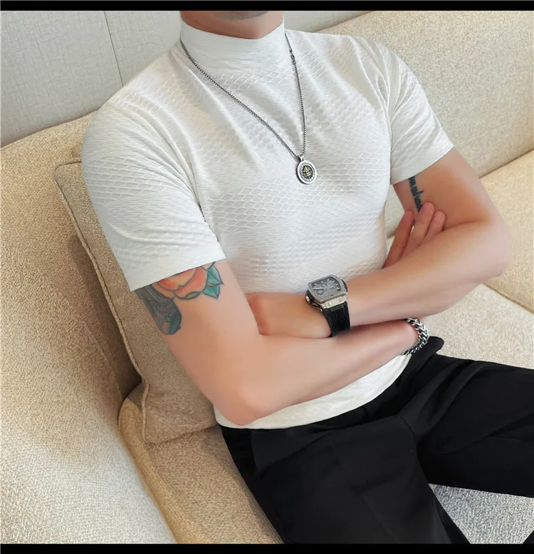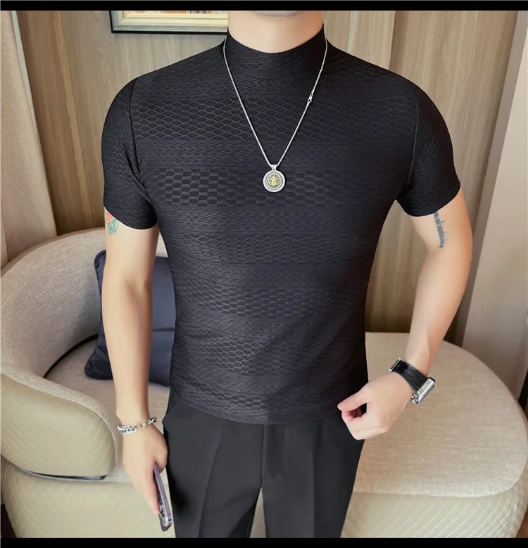 AIDASE - Versatile Thin Breathable Stretch Short Sleeve T-shirt, Men's Spring and Summer New Small Mid Collar Half Sleeve T-shirt