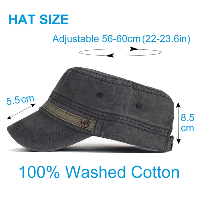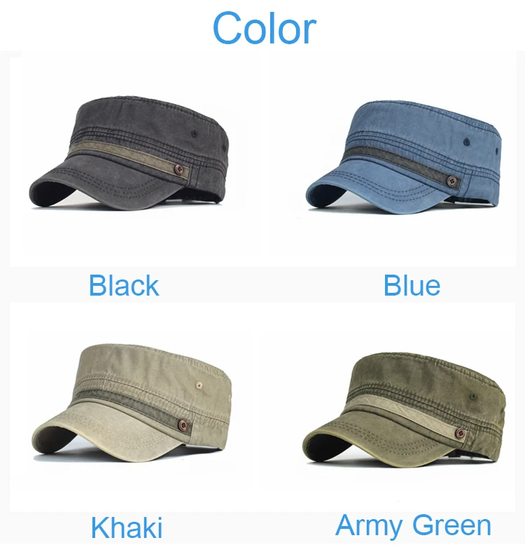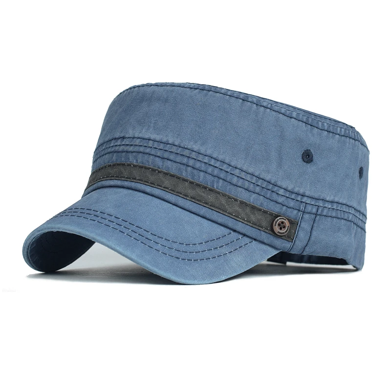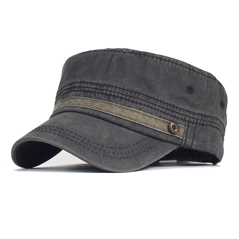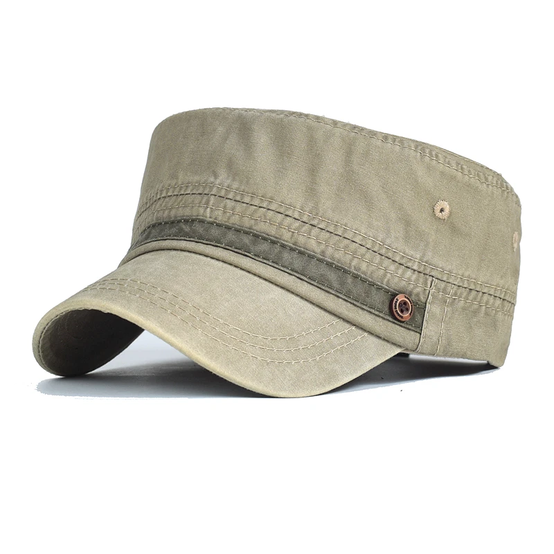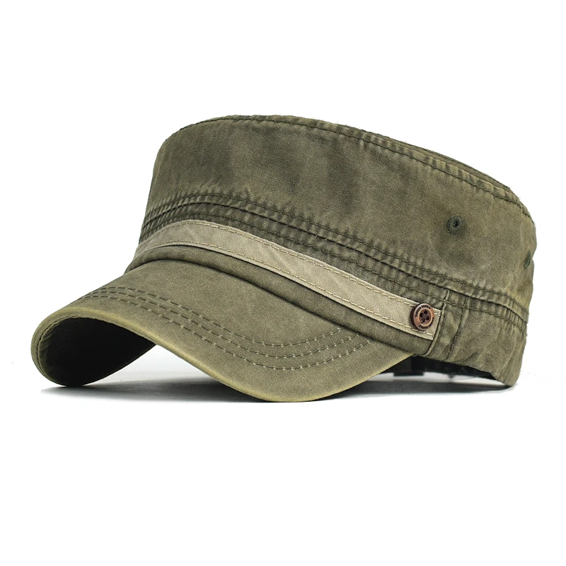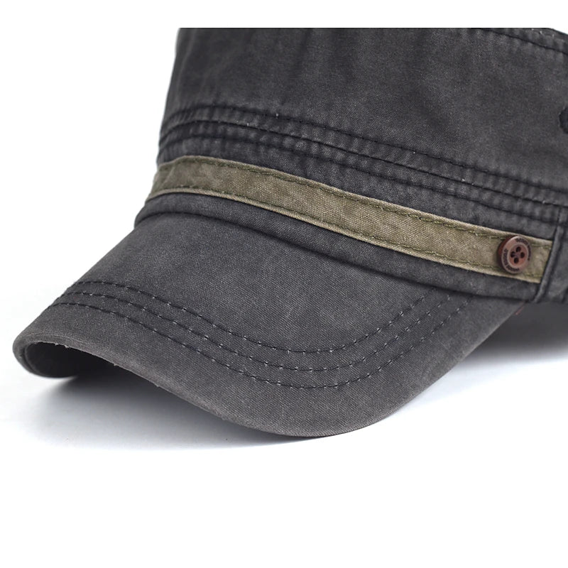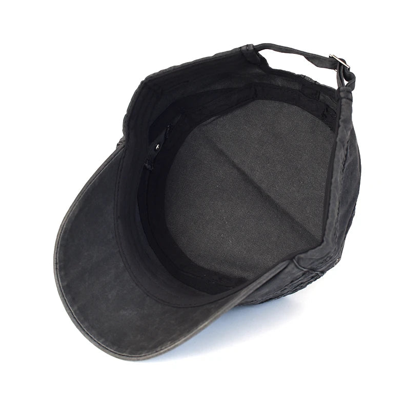 AIDASE - Washed Cotton Cap Men Casual Unique Design Military Caps Vintage Flat Top Hat Adjustable Four Seasons