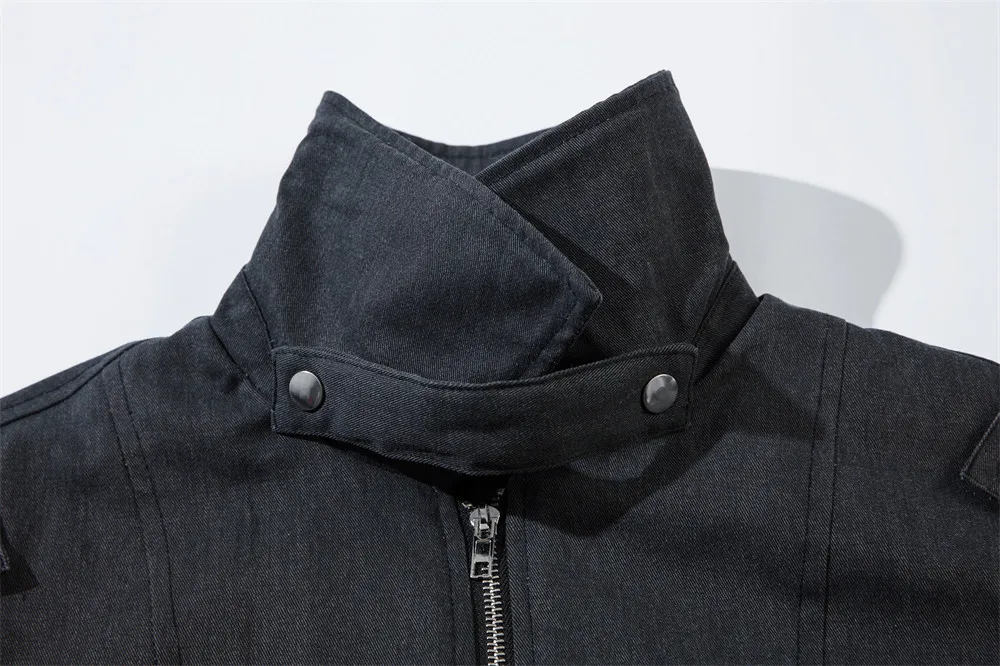 Aidase men's winter fashion Washed Distressed Spliced Padded Jacket Mens Zipper Decoration Retro Streetwear Winter Thick Lapel Long Sleeve Quilted Jacket