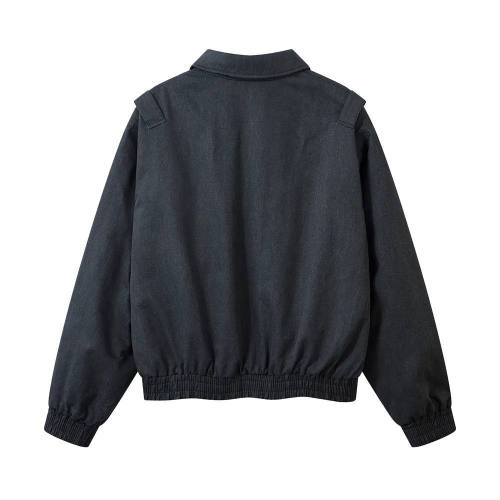 Aidase Washed Distressed Spliced Padded Jacket Mens Zipper Decoration Retro Streetwear Winter Thick Lapel Long Sleeve Quilted Jacket