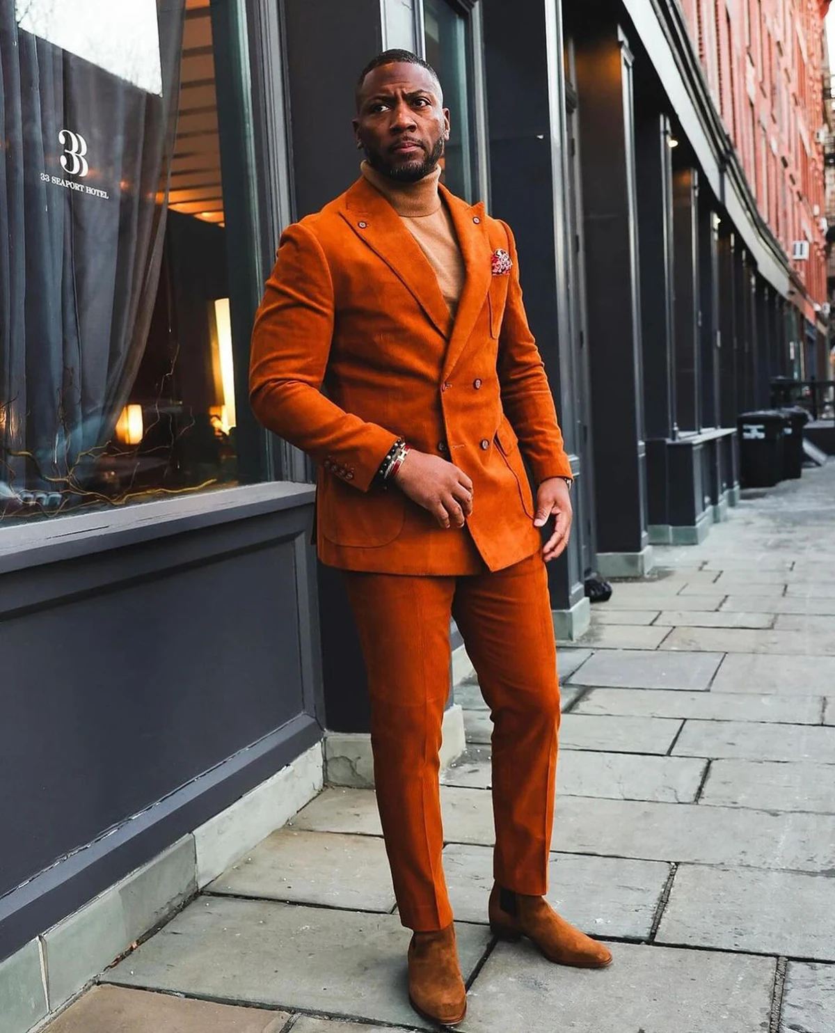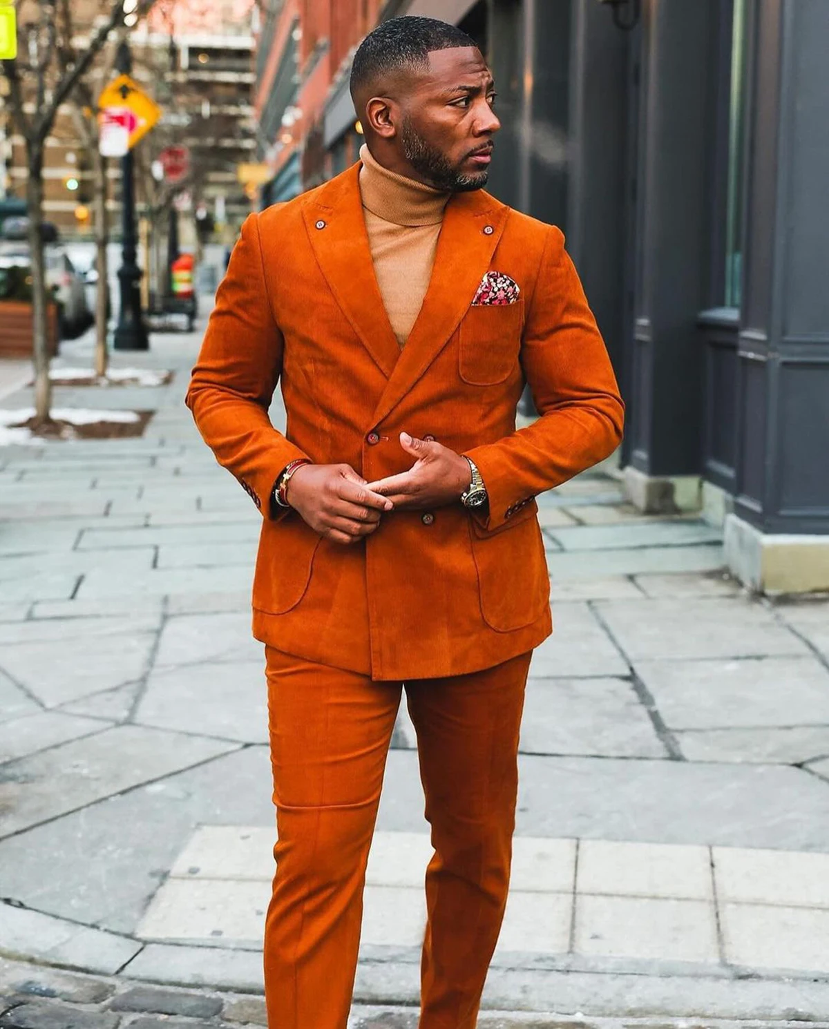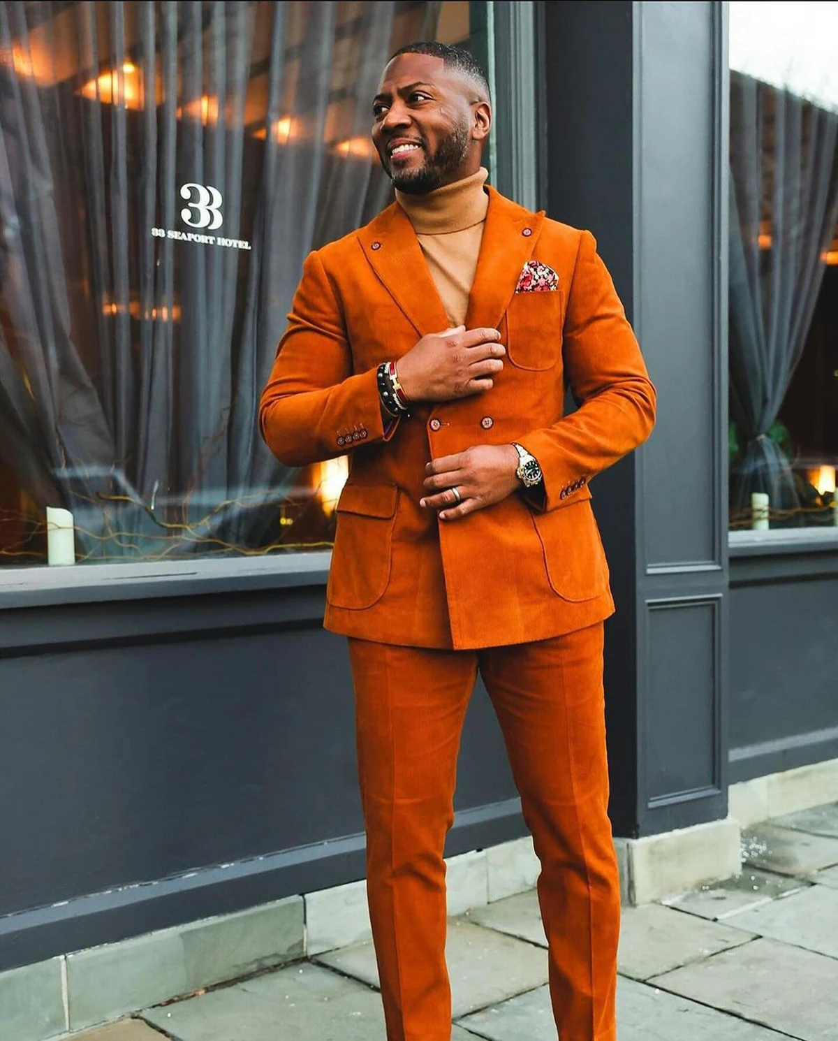 AIDASE  -  Wedding Men Suits Tuxedos Groom Wear Orange Peaked Lapel Formal Suit Custom Size High Quality 2 Pieces Jacket+Pant