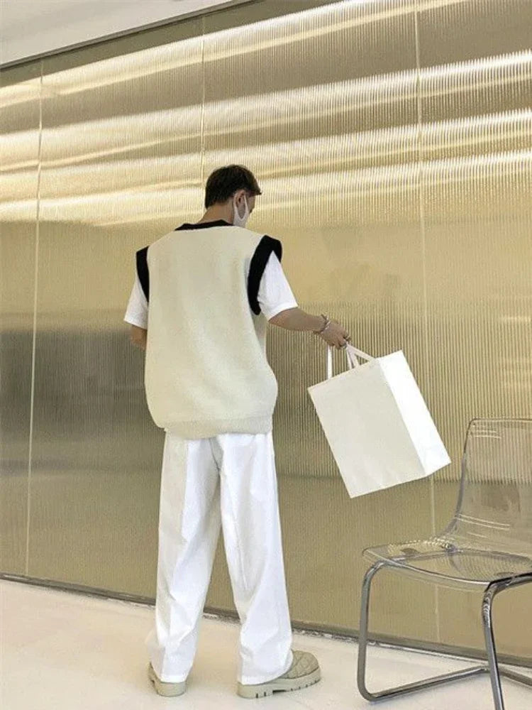 Aidase White Striped Knitted Sweaters For Men Vest V Neck Man Clothes Sleeveless Waistcoat Thick Winter Old Cotton