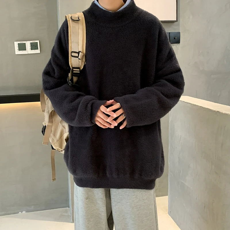 Winter New Mink Velvet Sweater Knitted Solid Sweater Men Clothes Pullover Men Sweater Casual Pullovers Bottoming Sweaters