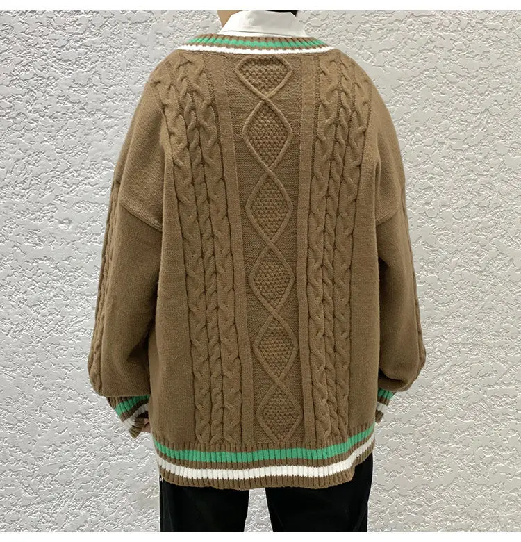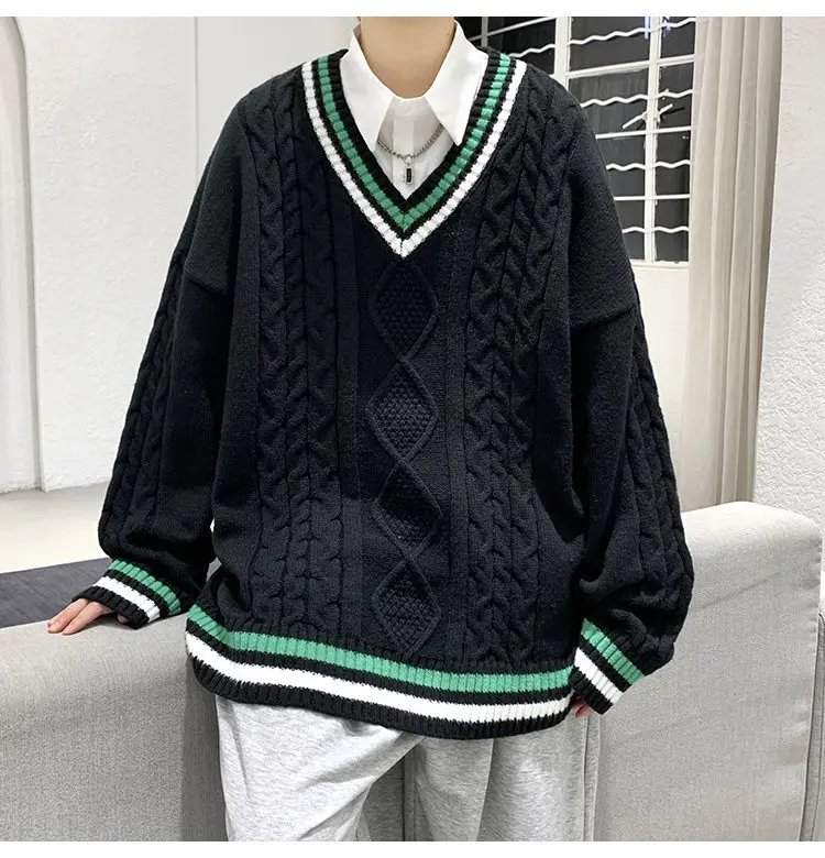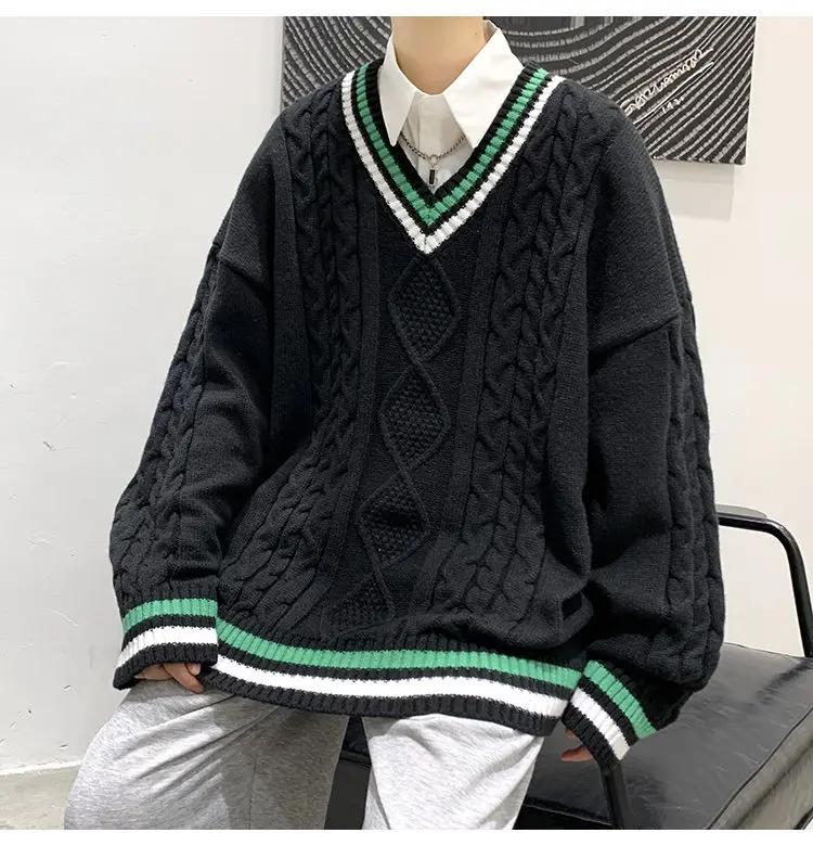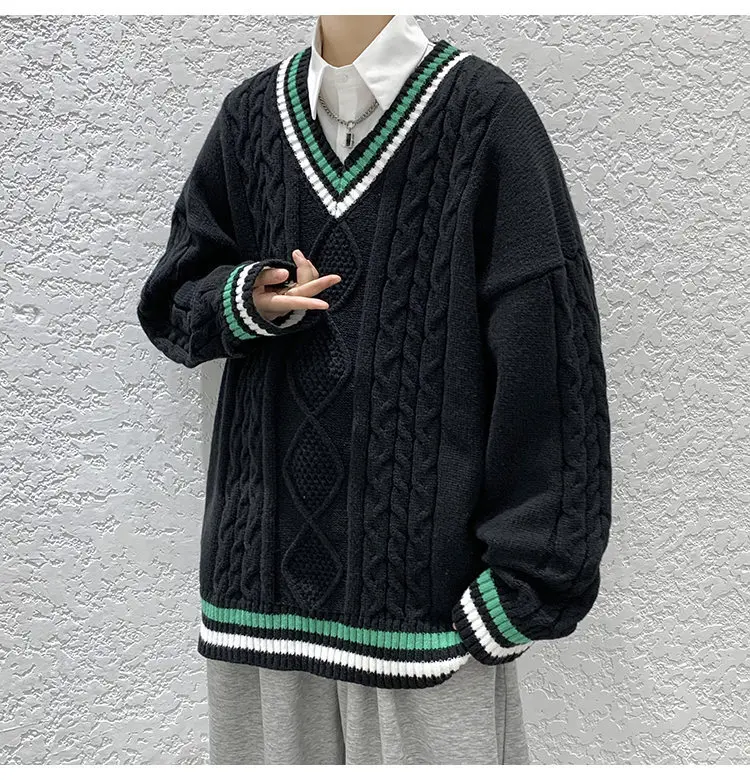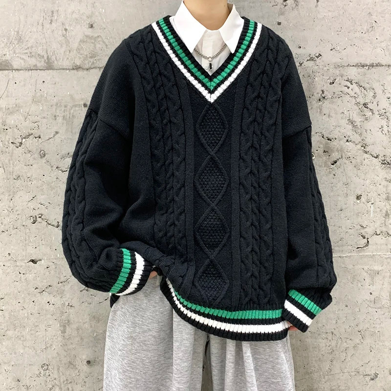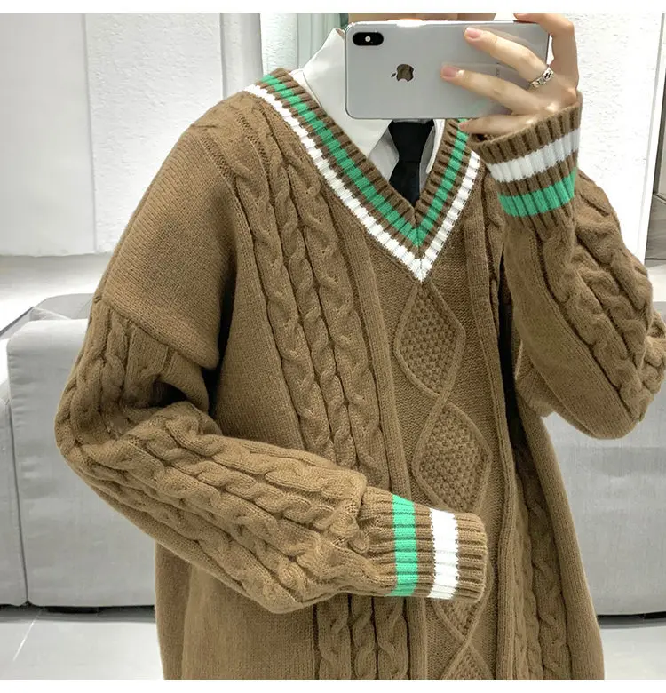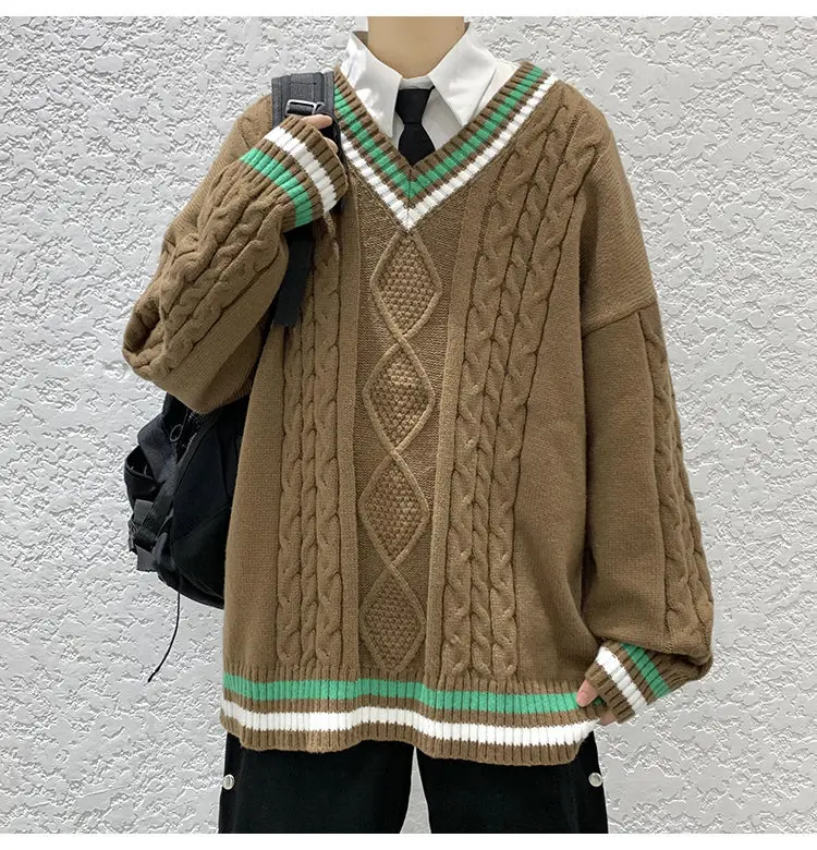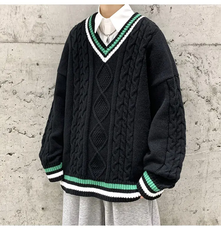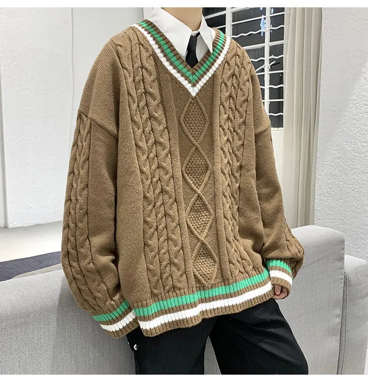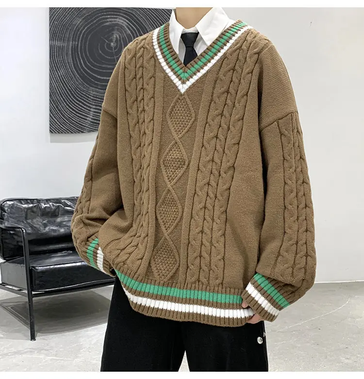 Aidase Winter Sweaters Men Warm Retro V-neck Knitted Pullovers Men Streetwear Korean Loose Long Sleeved Sweaters Mens Jumper Clothes