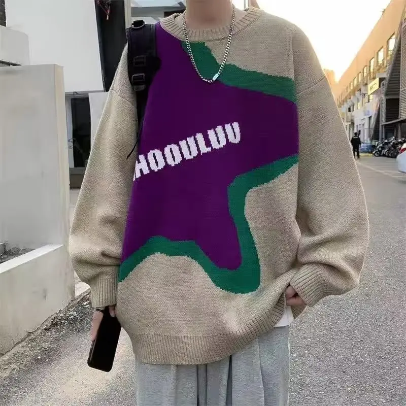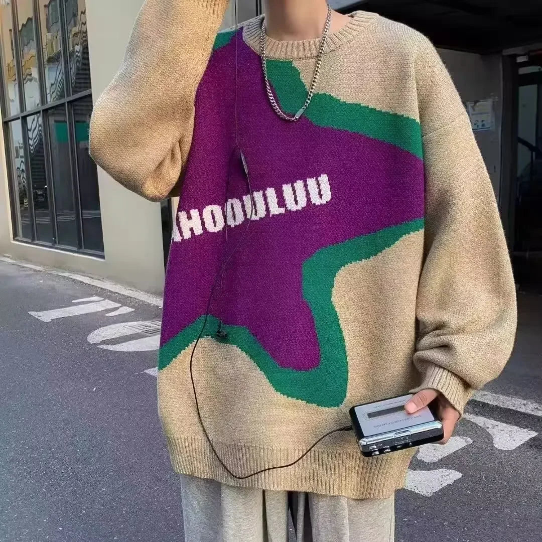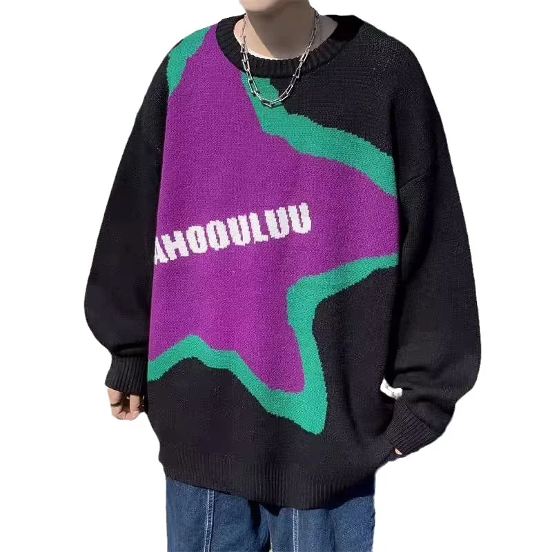 Aidase Y2K Star Patchwork Sweater Men Harajuku Knitted Pullovers Jumpers Sweaters Male Tops Oversized Letter Emboridery Streetwear Men
