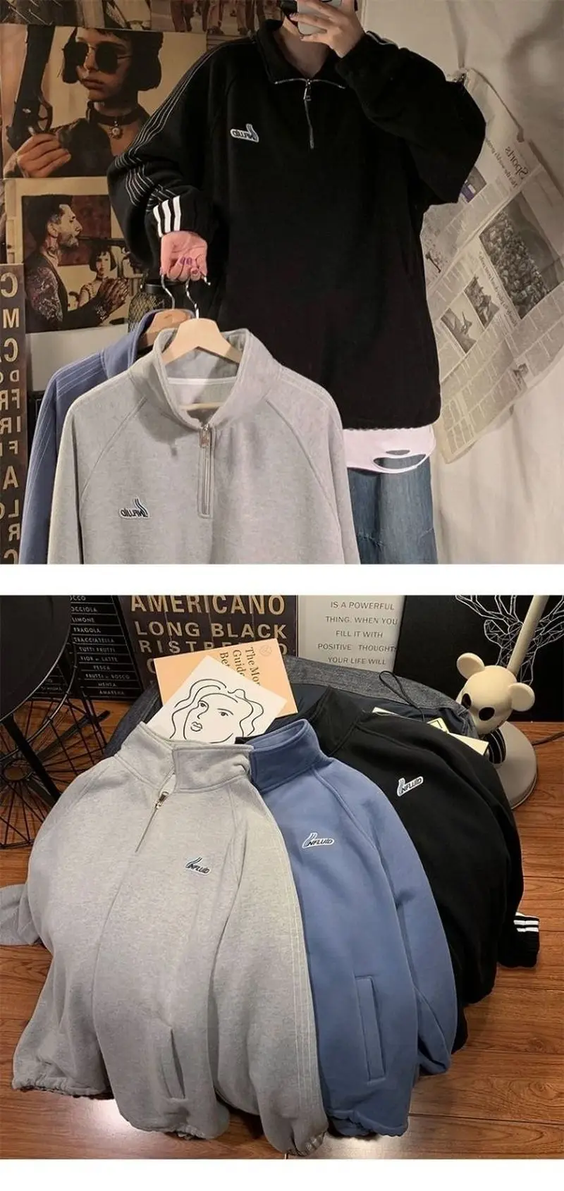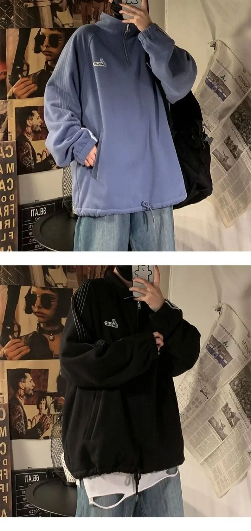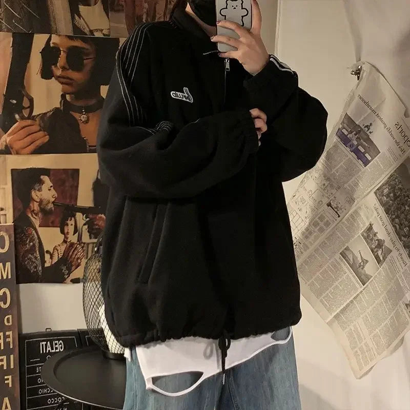 Zipper High Street Sweatshirt for Men Women Hong Kong Style Stand-Up Collar Korean Trendy Lovers Oversize Casual Sports Jacket