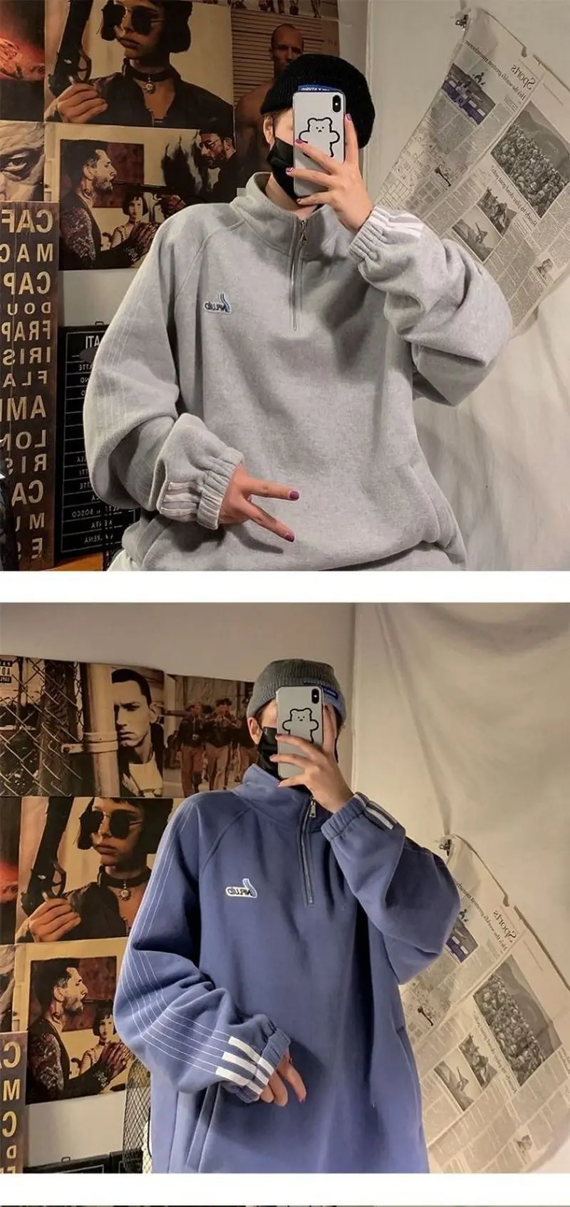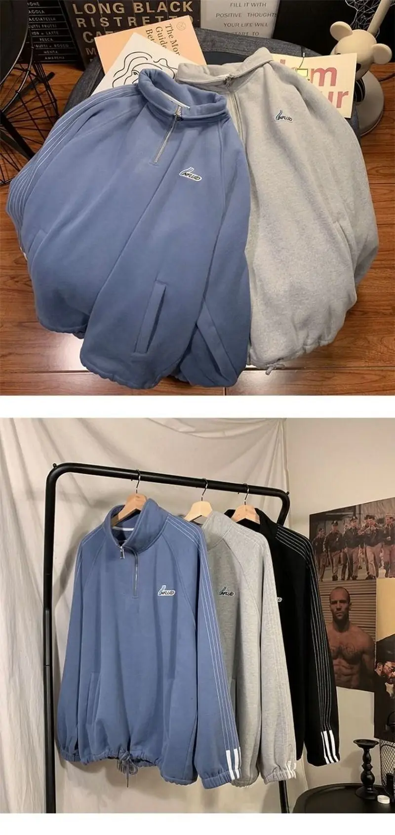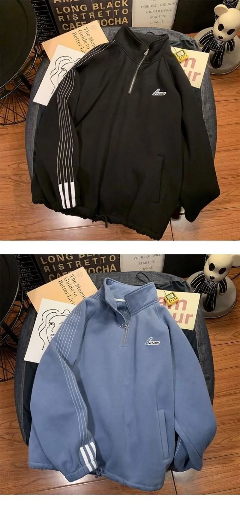 Zipper High Street Sweatshirt for Men Women Hong Kong Style Stand-Up Collar Korean Trendy Lovers Oversize Casual Sports Jacket