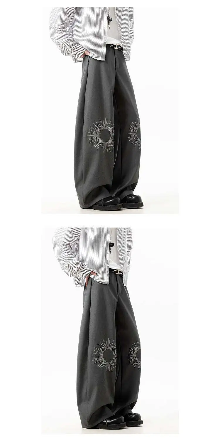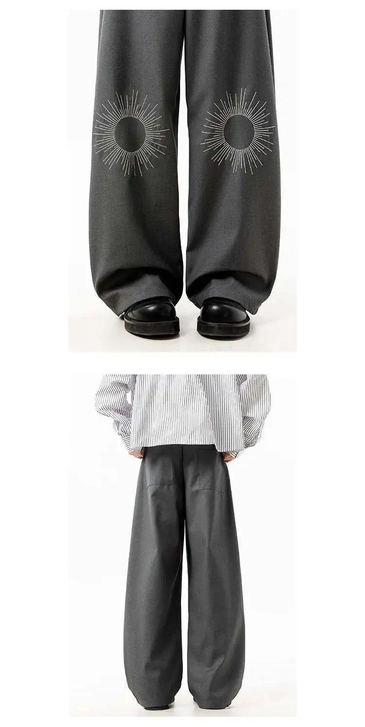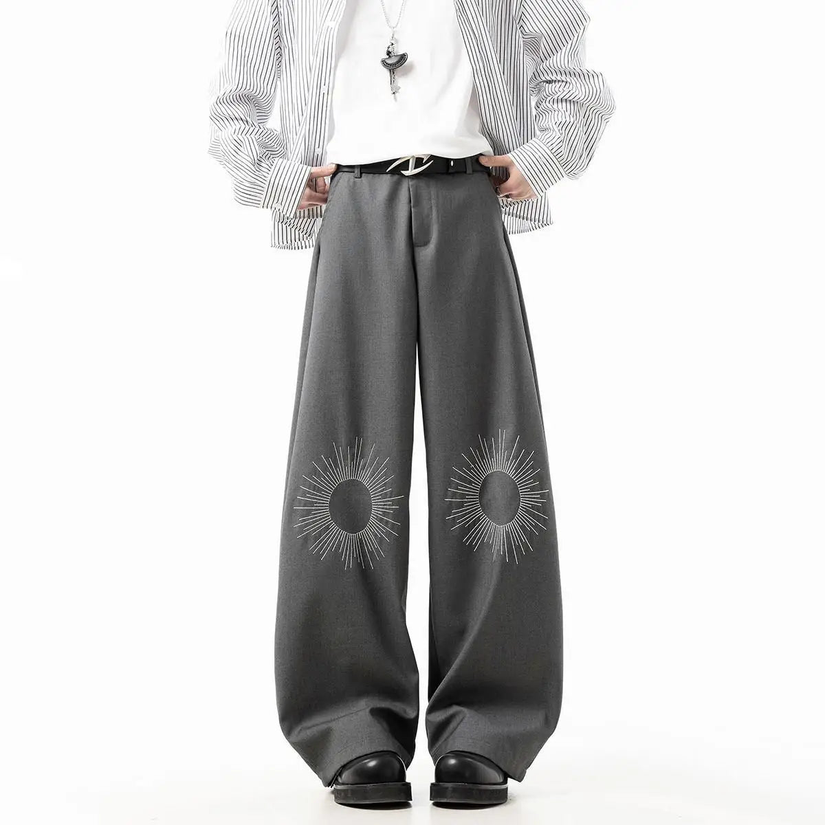 AIDASE - 2025 New Men Casual Trousers American Style Embroidered Decoration Design Trendy Loose Straight-leg Men's Pants 21E6858