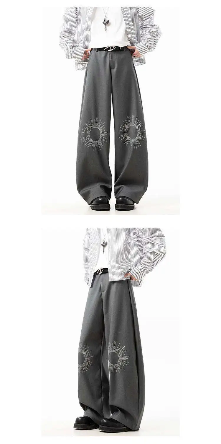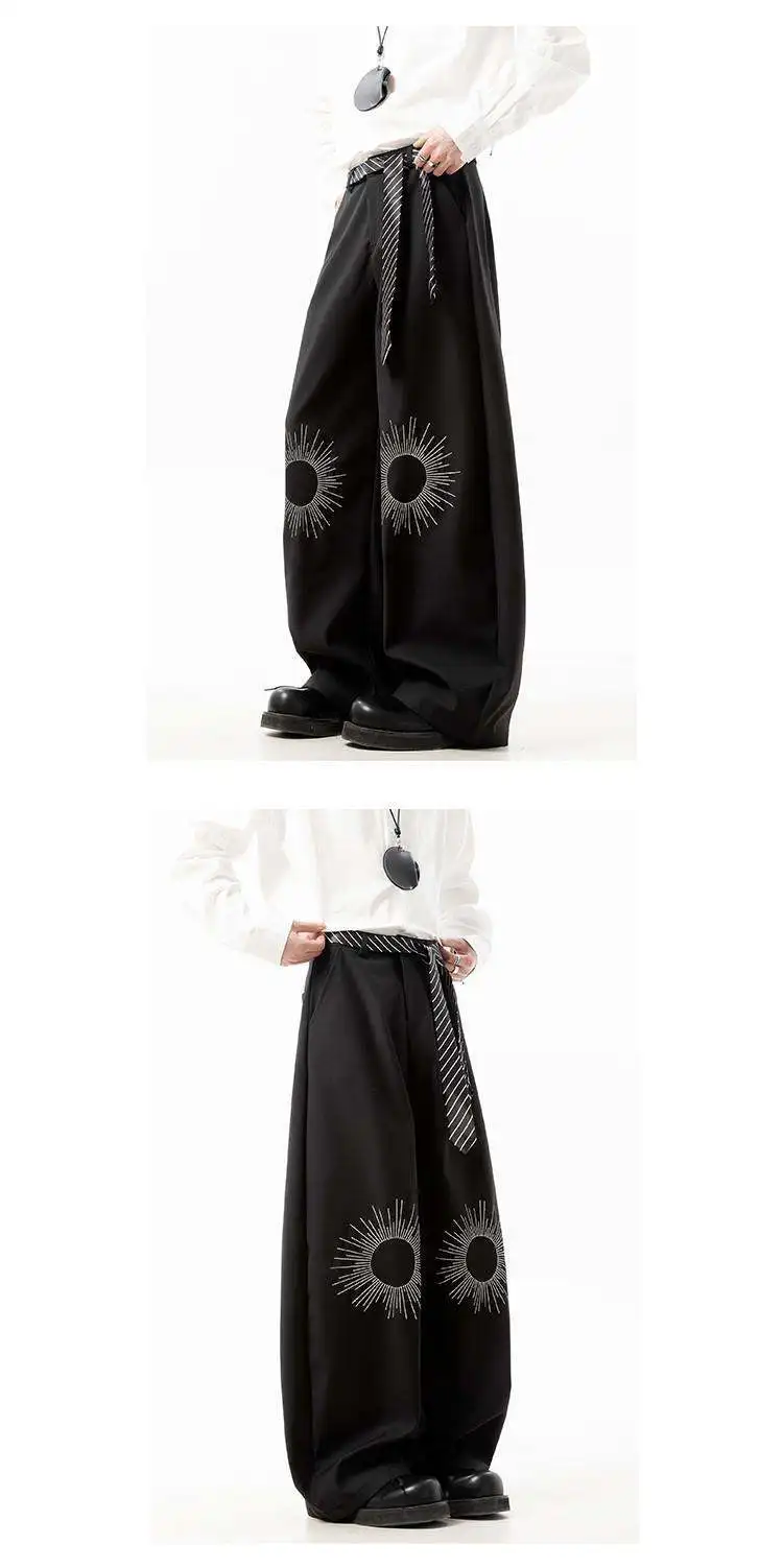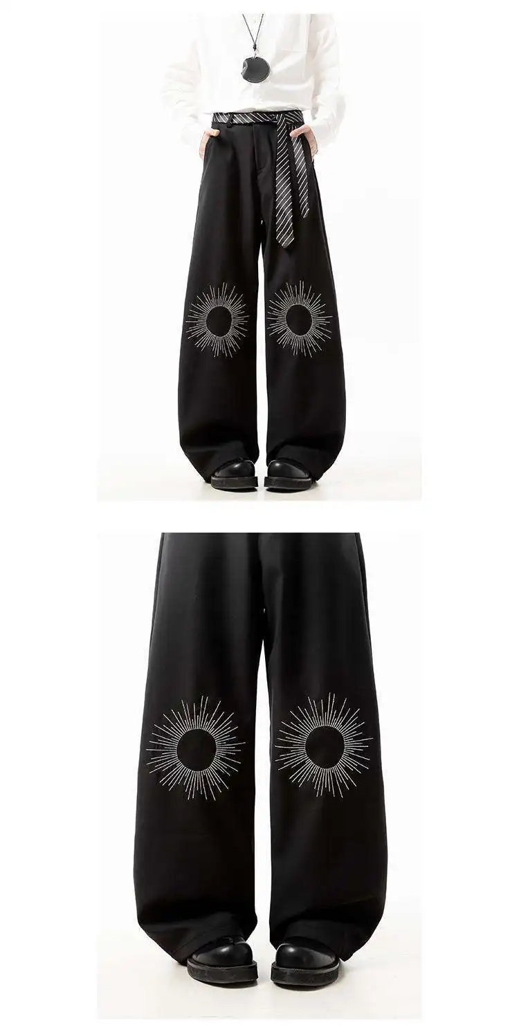 AIDASE - 2025 New Men Casual Trousers American Style Embroidered Decoration Design Trendy Loose Straight-leg Men's Pants 21E6858