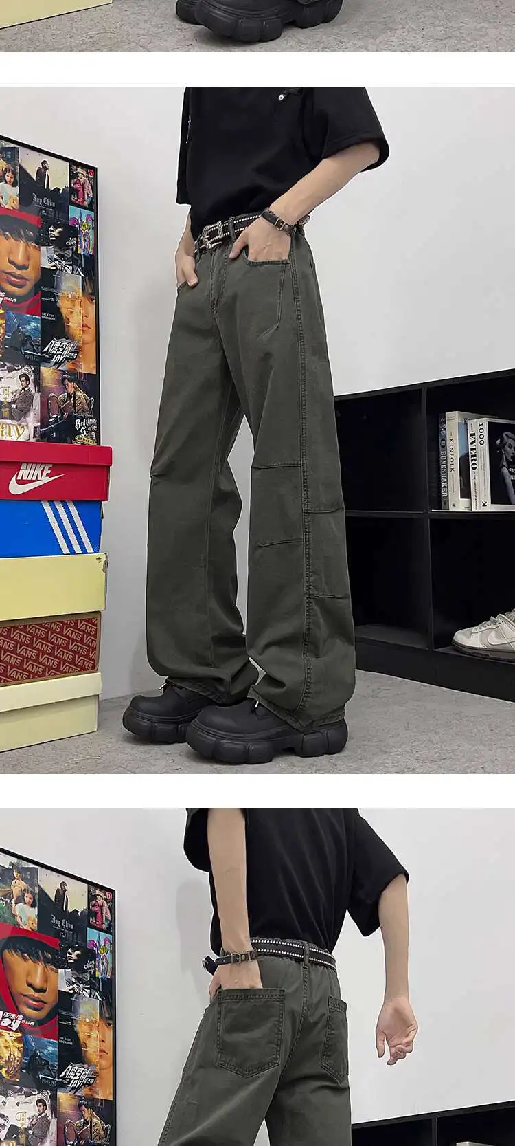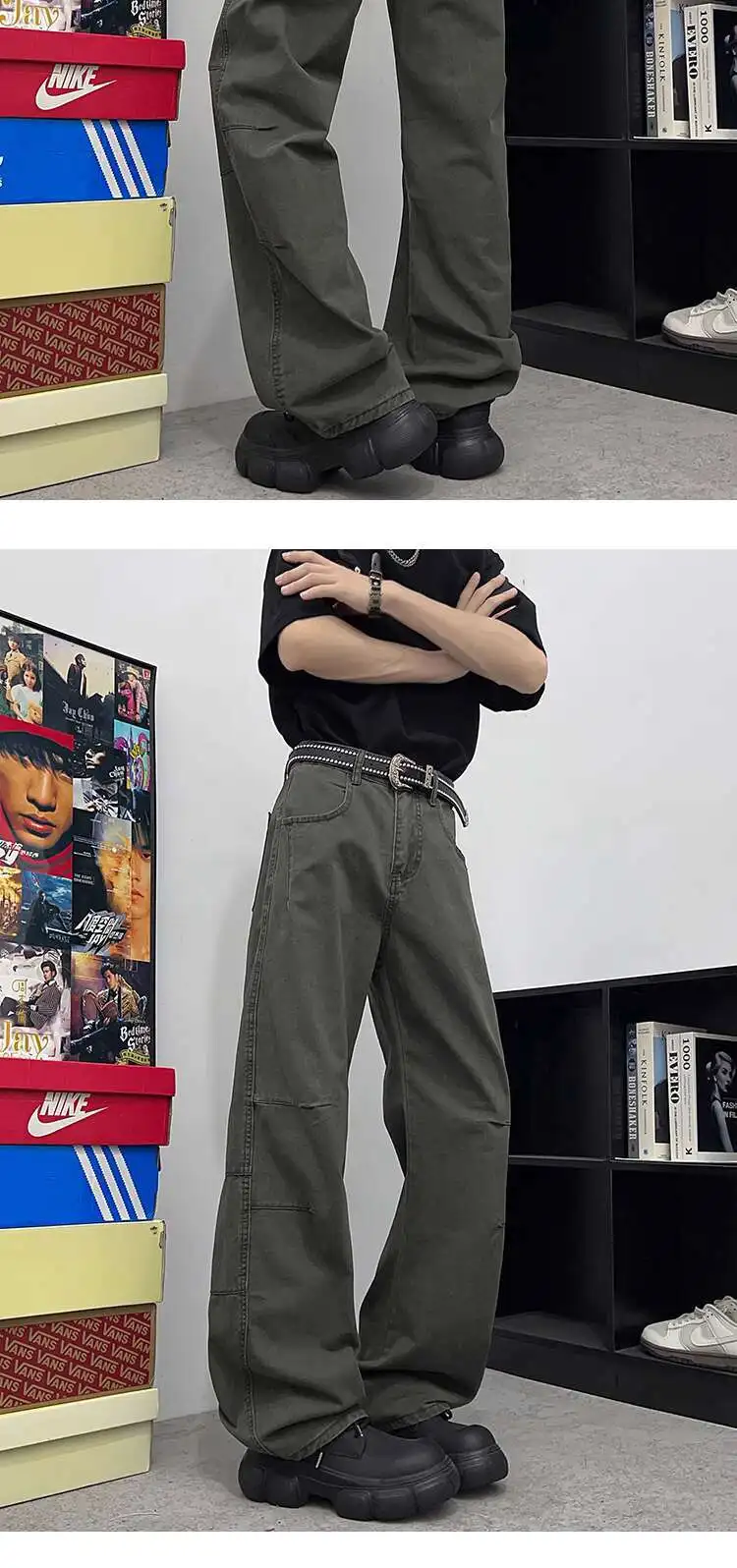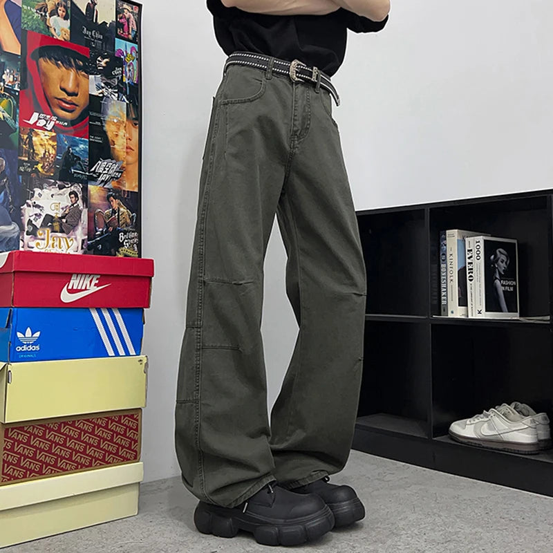 AIDASE - American Style Men's Overalls High Street Curved Knife Design Trendy Loose Straight Wide Leg Casual Stylish Pants 21E5826