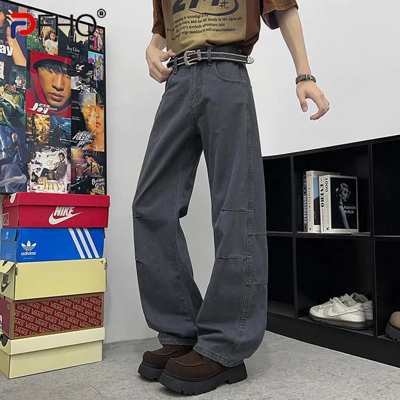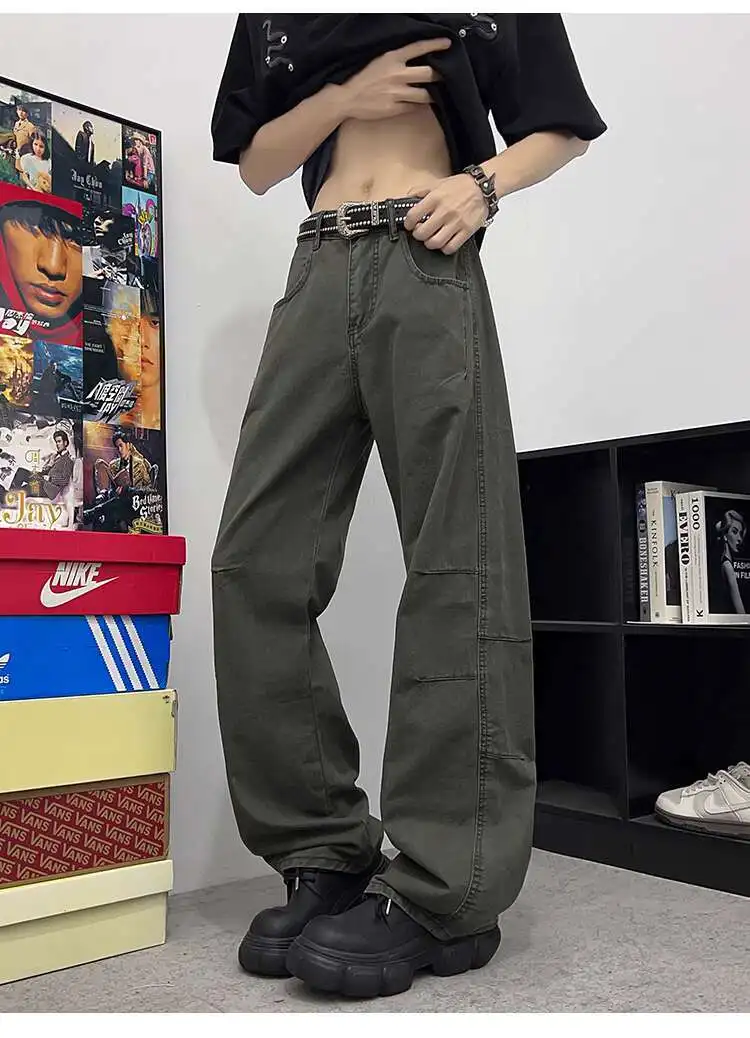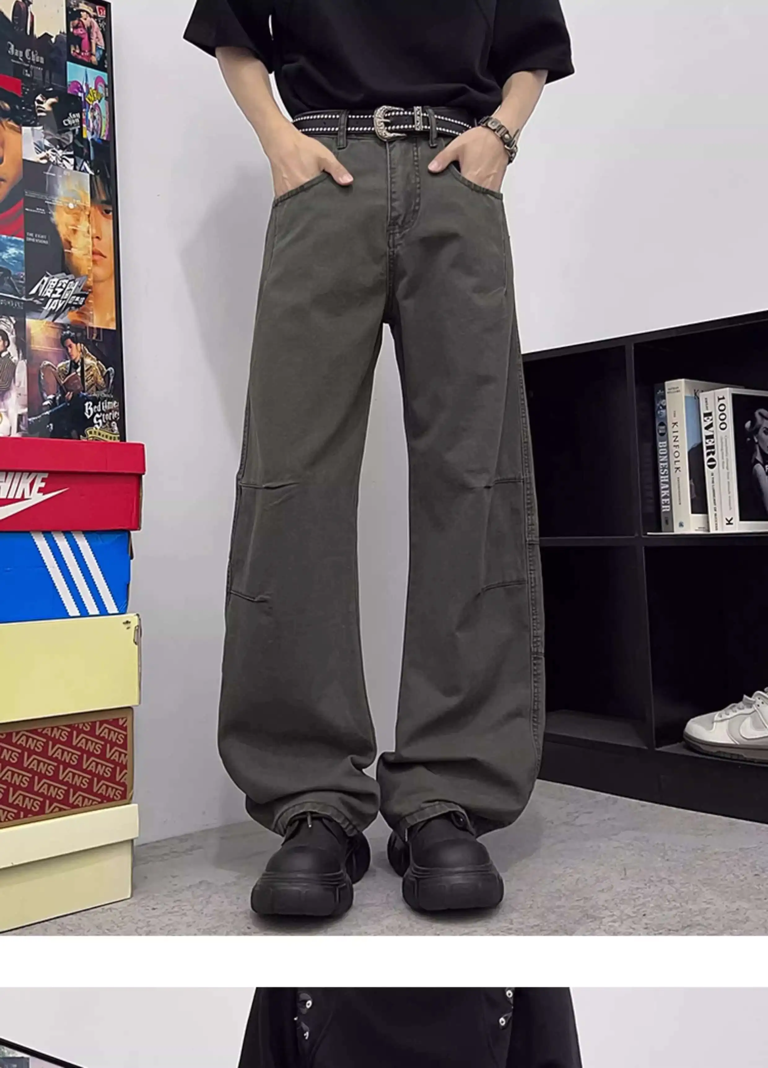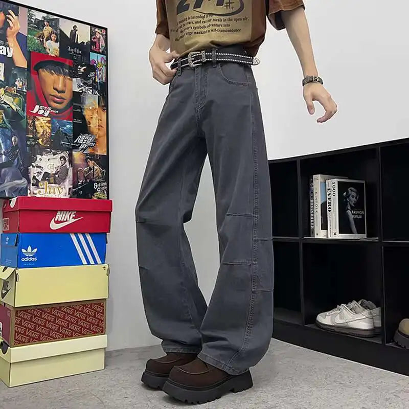AIDASE - American Style Men's Overalls High Street Curved Knife Design Trendy Loose Straight Wide Leg Casual Stylish Pants 21E5826