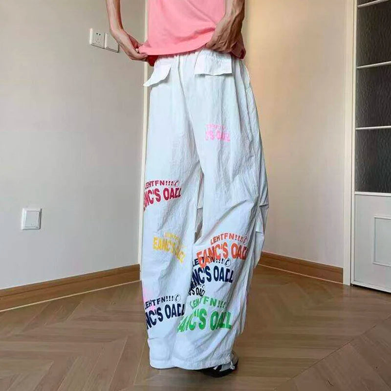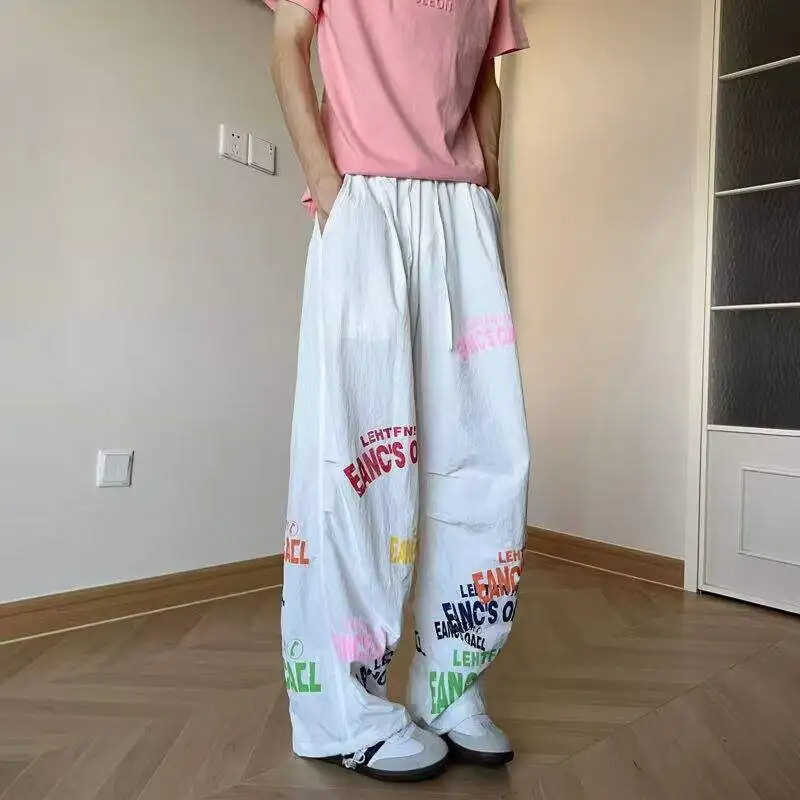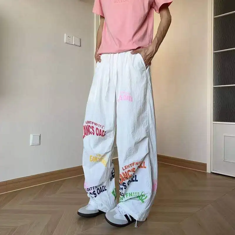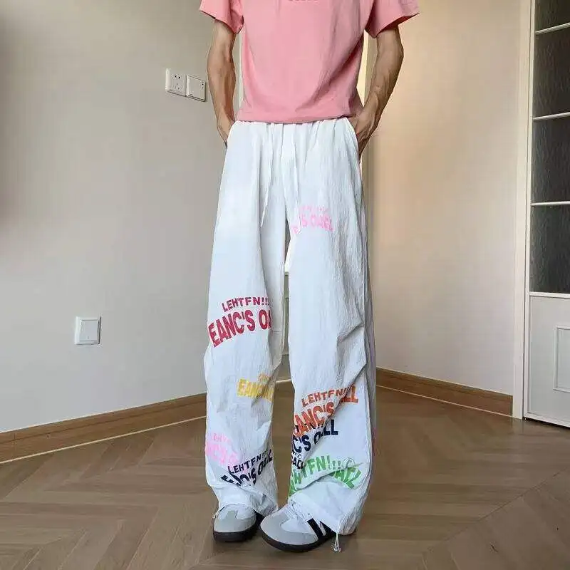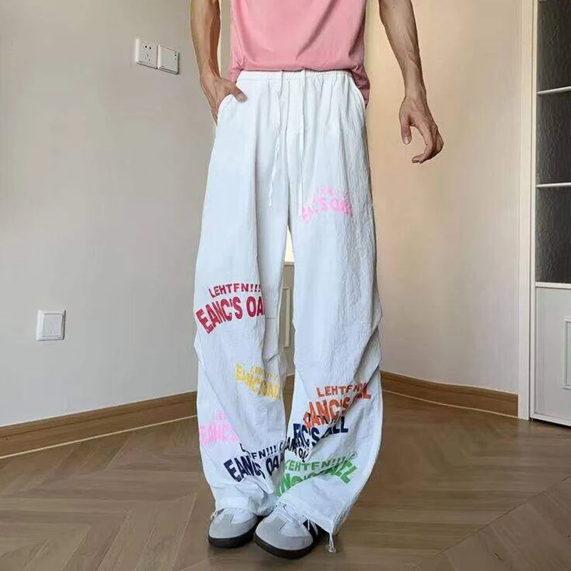 AIDASE - American Style Simple Men's Trousers Letter Print Decoration Drawstring Design Loose Hip Hop Casual Male Pants