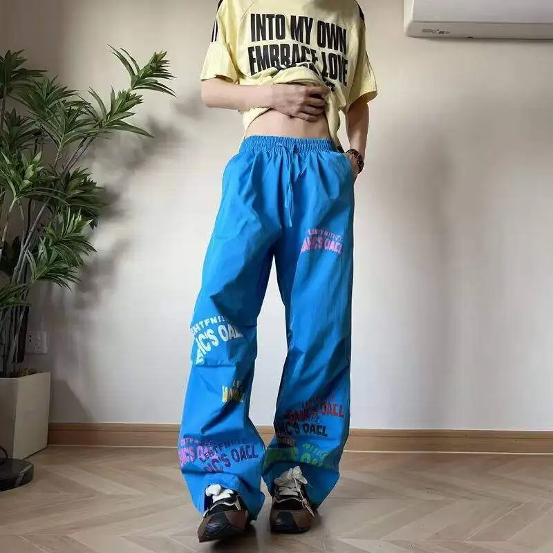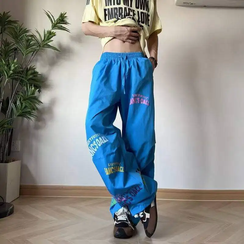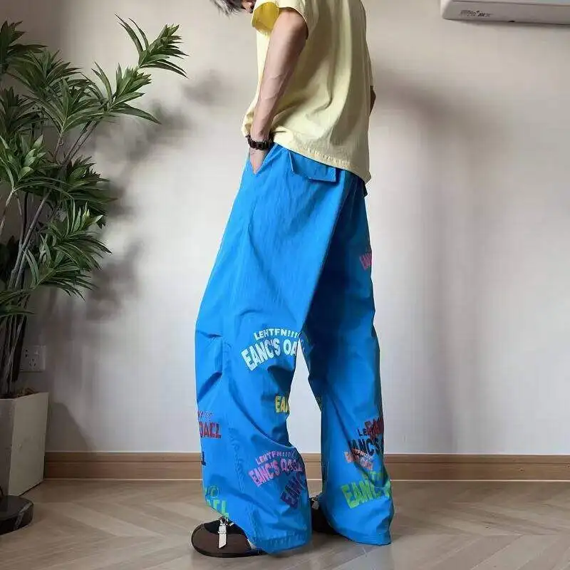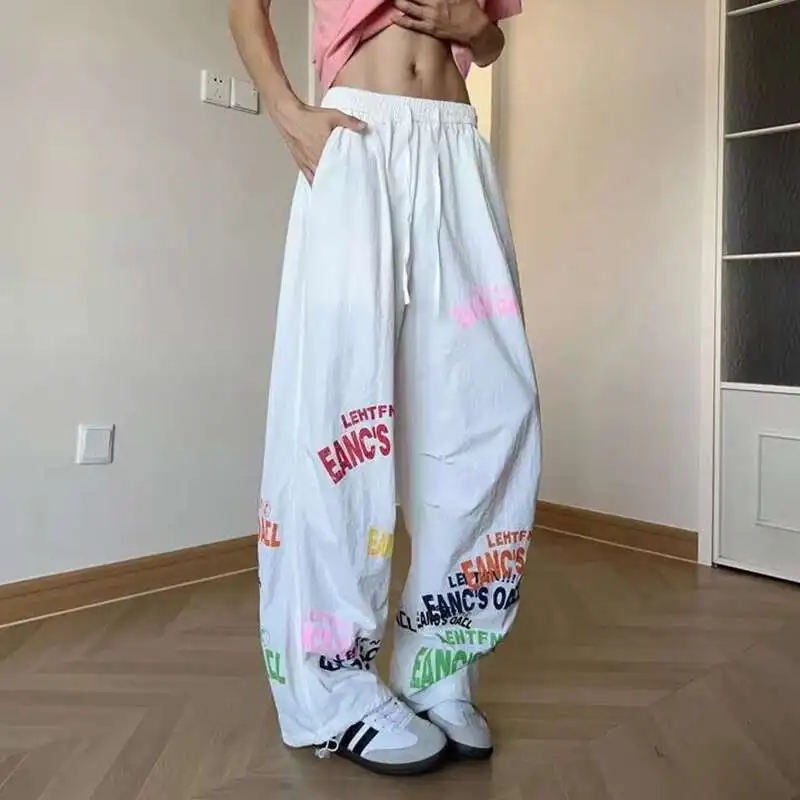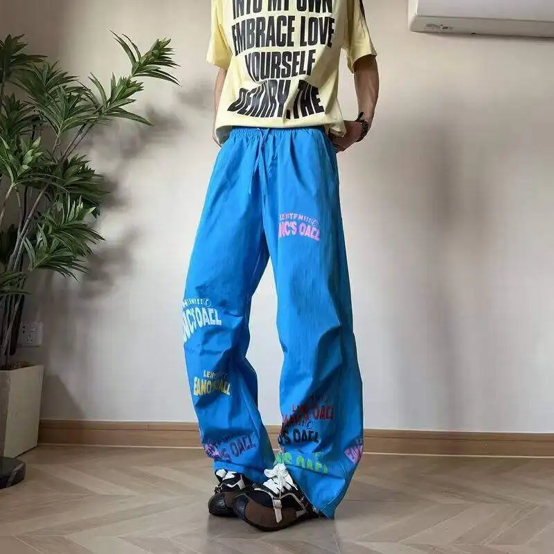 AIDASE - American Style Simple Men's Trousers Letter Print Decoration Drawstring Design Loose Hip Hop Casual Male Pants