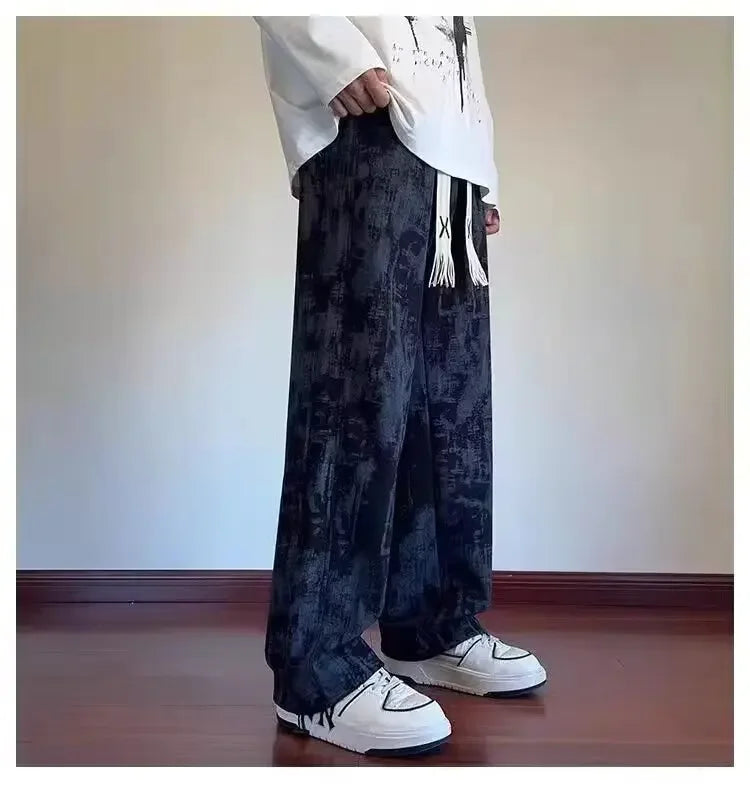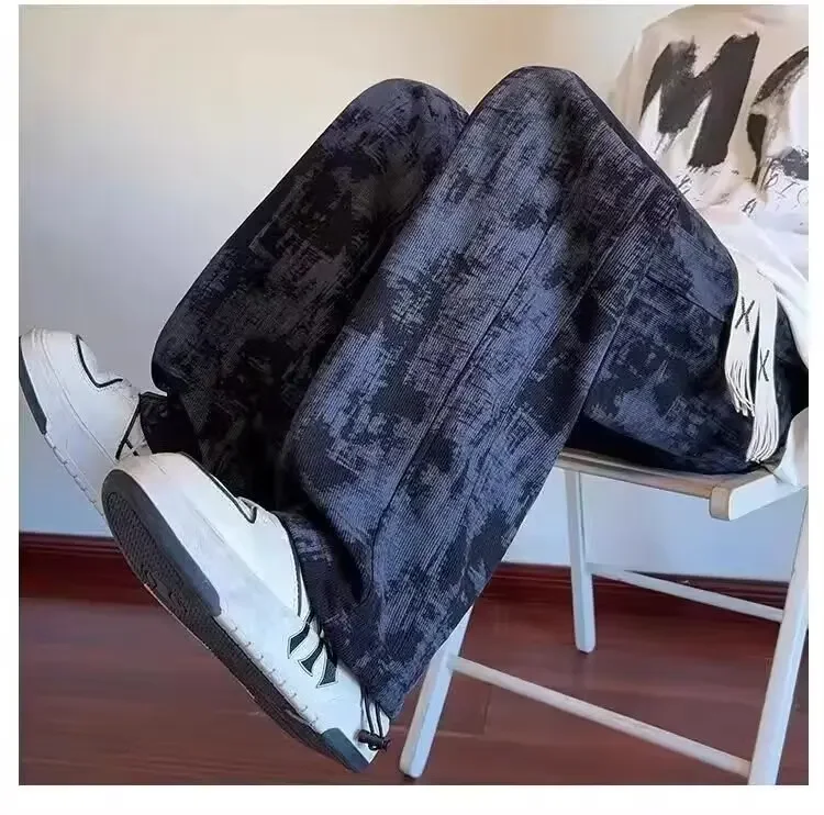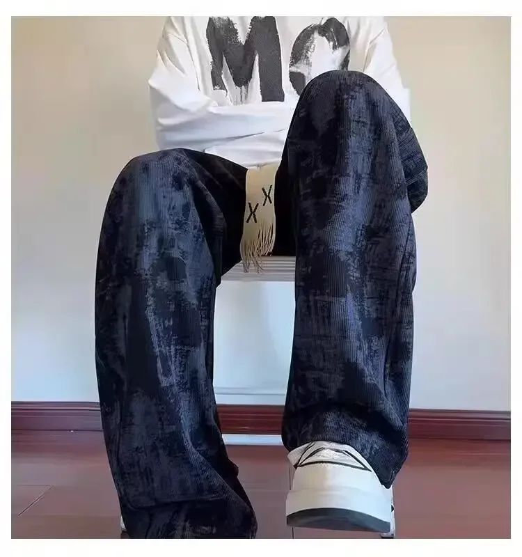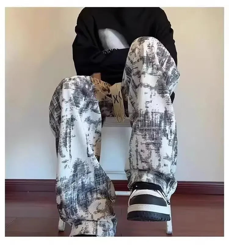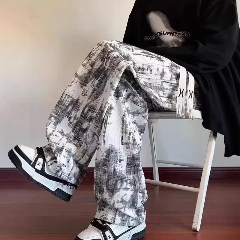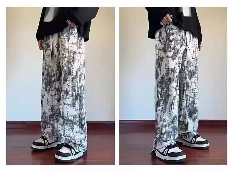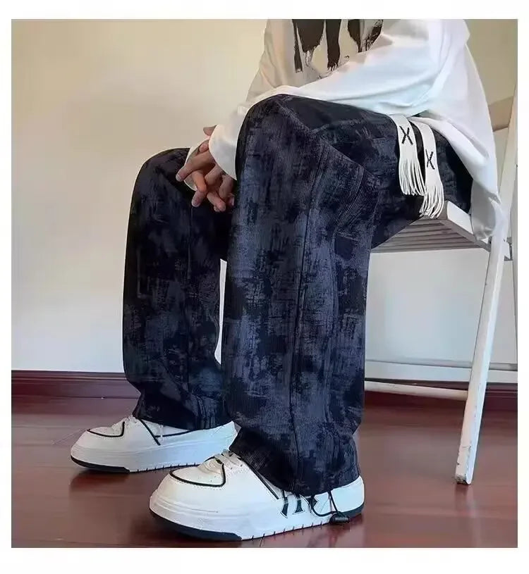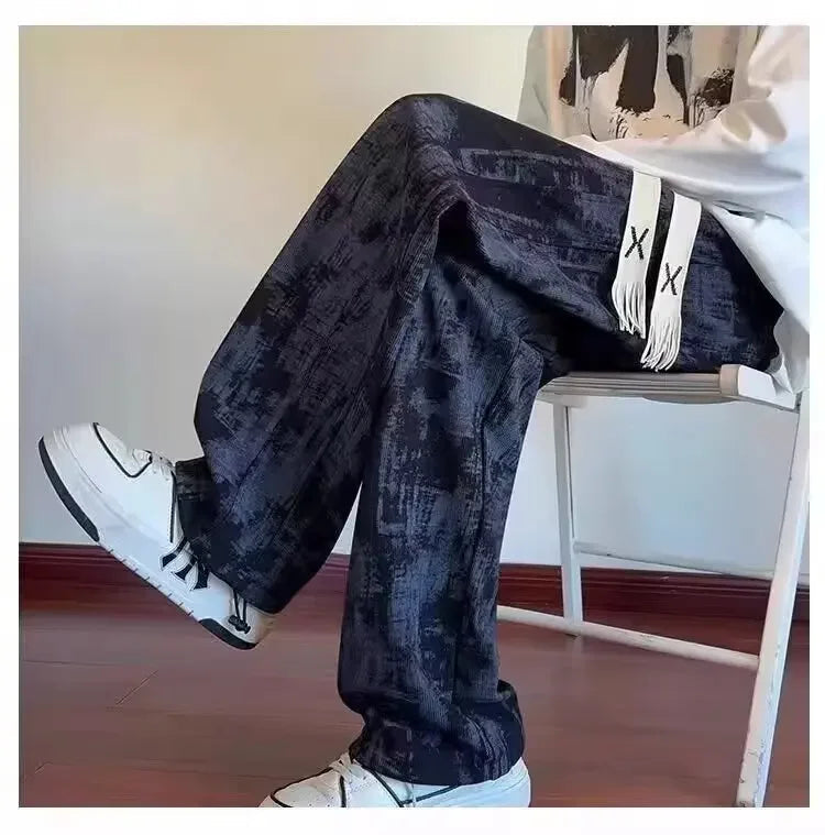 AIDASE - American Washed Tie Dye High Street Casual Pants Loose Straight Leg Long Trousers Men Women New Fashion Spring Autumn Versatile