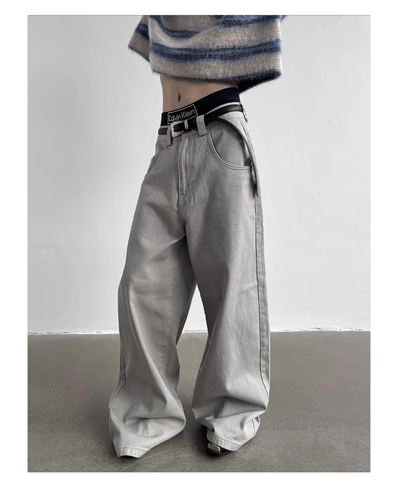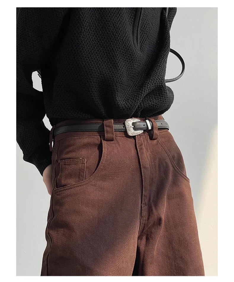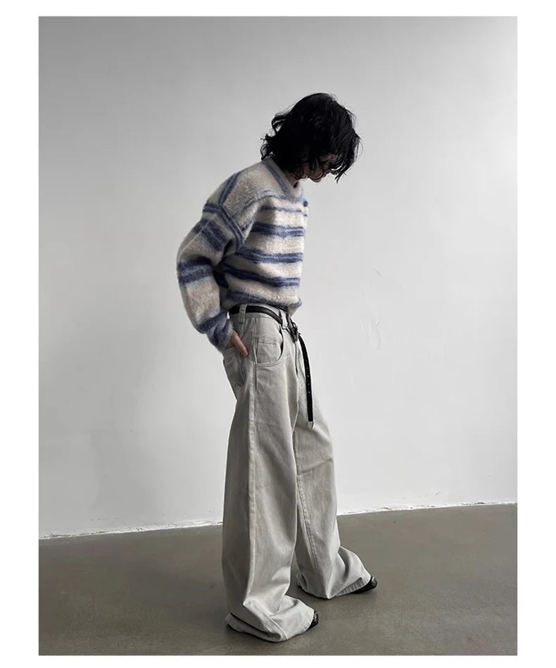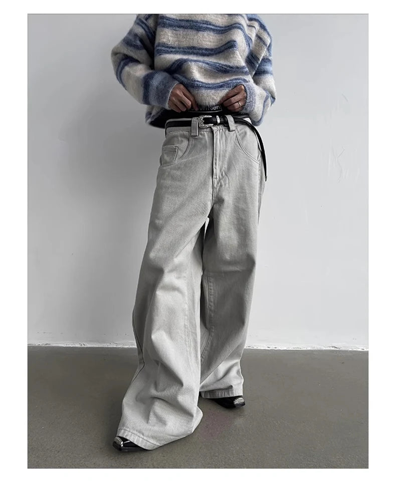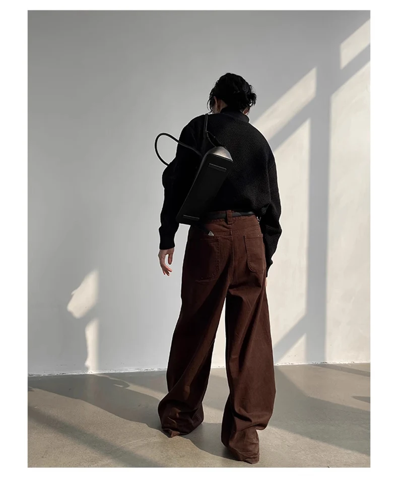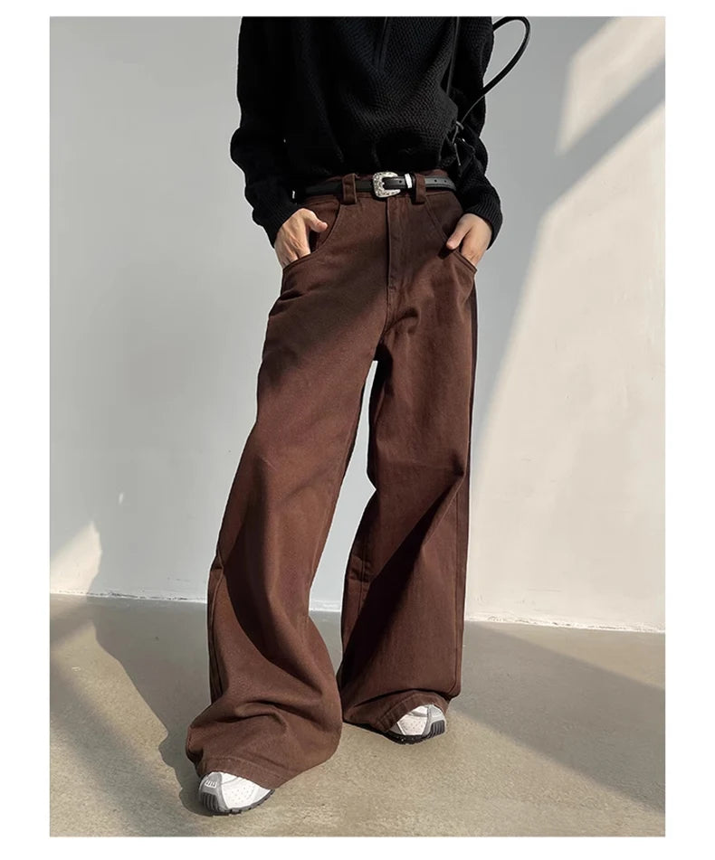 Aidase Autumn Grey Flowy Baggy Wide Leg Pants for Mens Floor Length Fashion Clothing Loose Casual Dark Brown Trousers