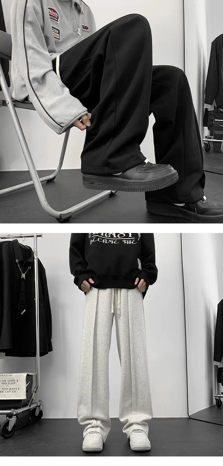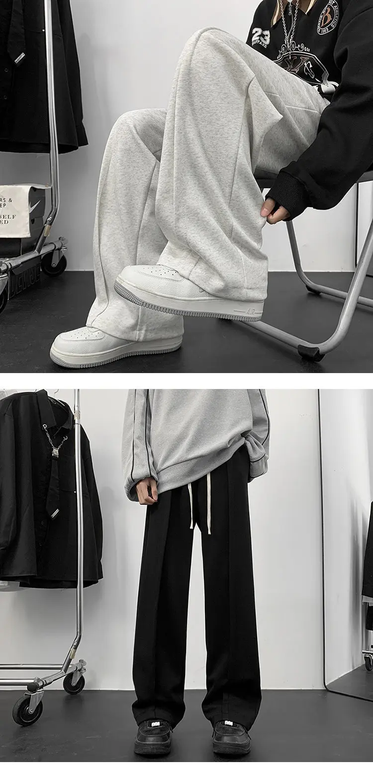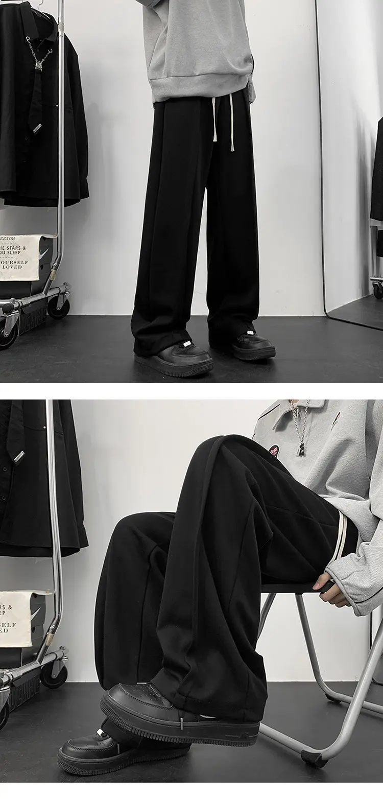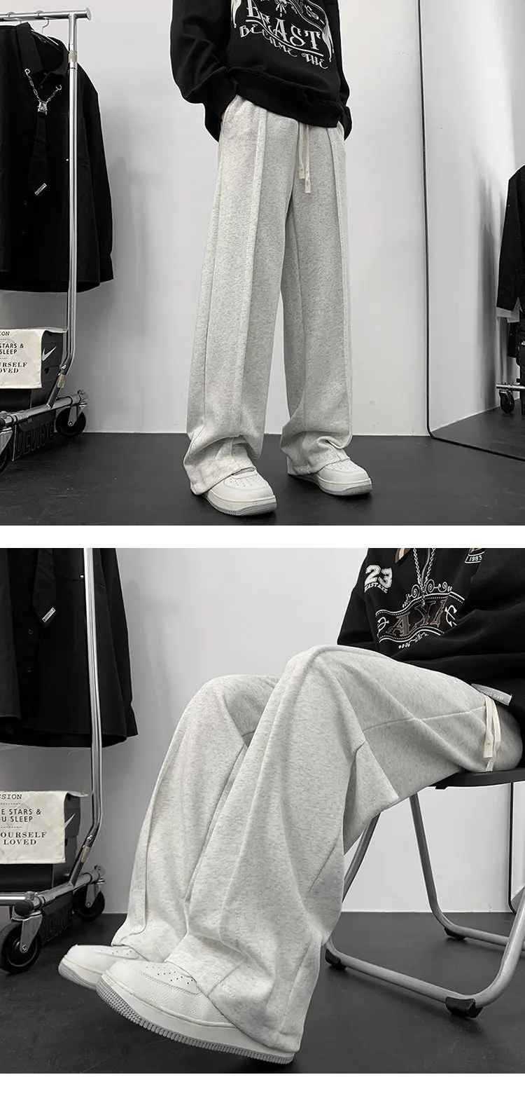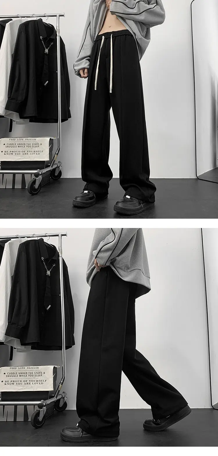 AIDASE - Autumn New Men's Sports Sweatpants Trendy Loose Casual Versatile Straight-leg Trousers Solid Color Drawstring Pants 21E7519