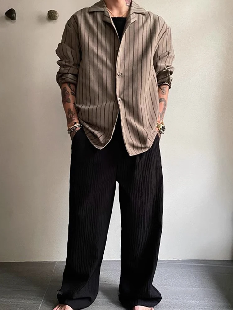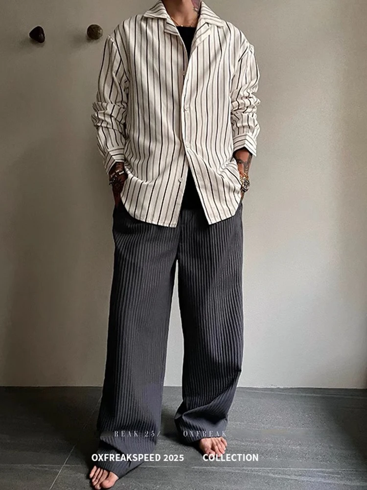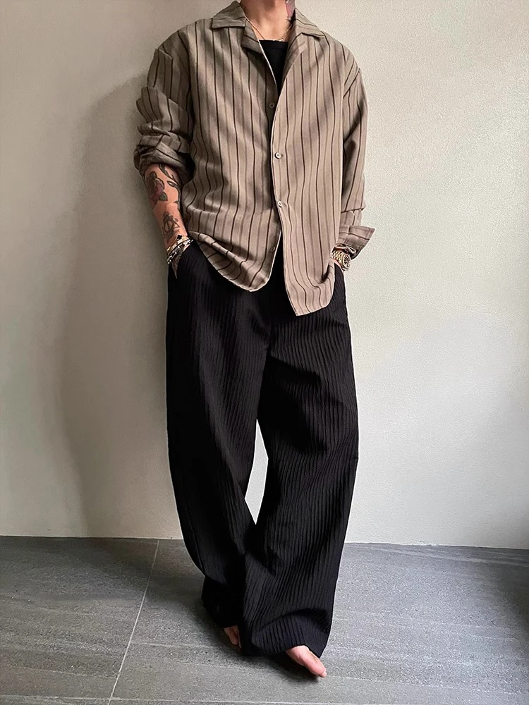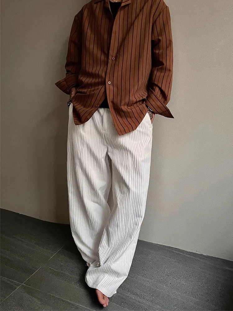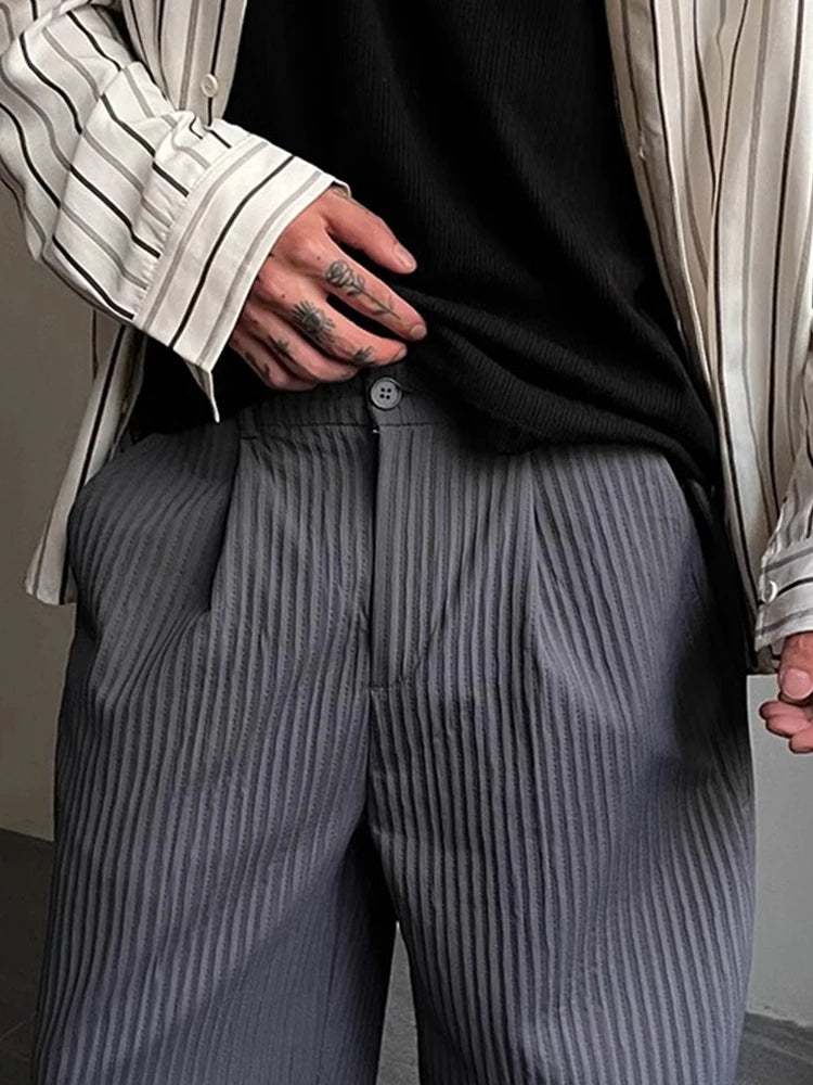 AIDASE  -  Breathable Ice Silk Ribbed Trousers Mens Summer New Casual Straight Pants Men Stylish Striped Textured Pants Old Money Aesthetic