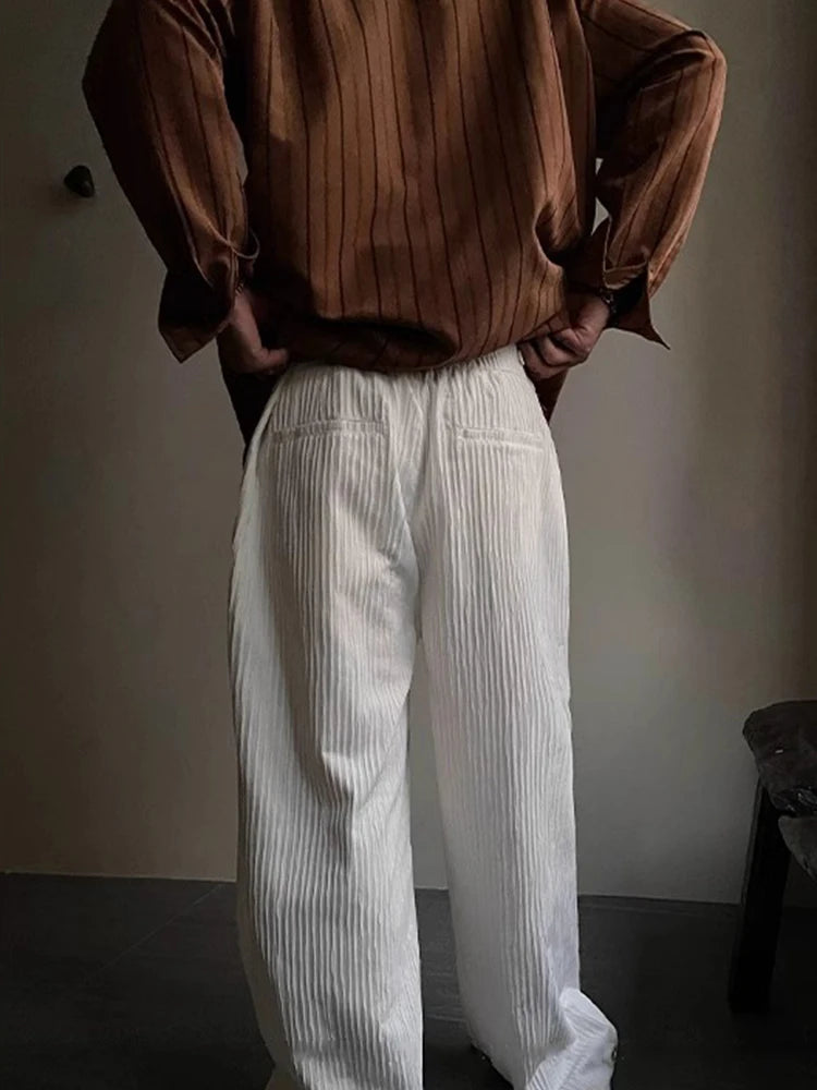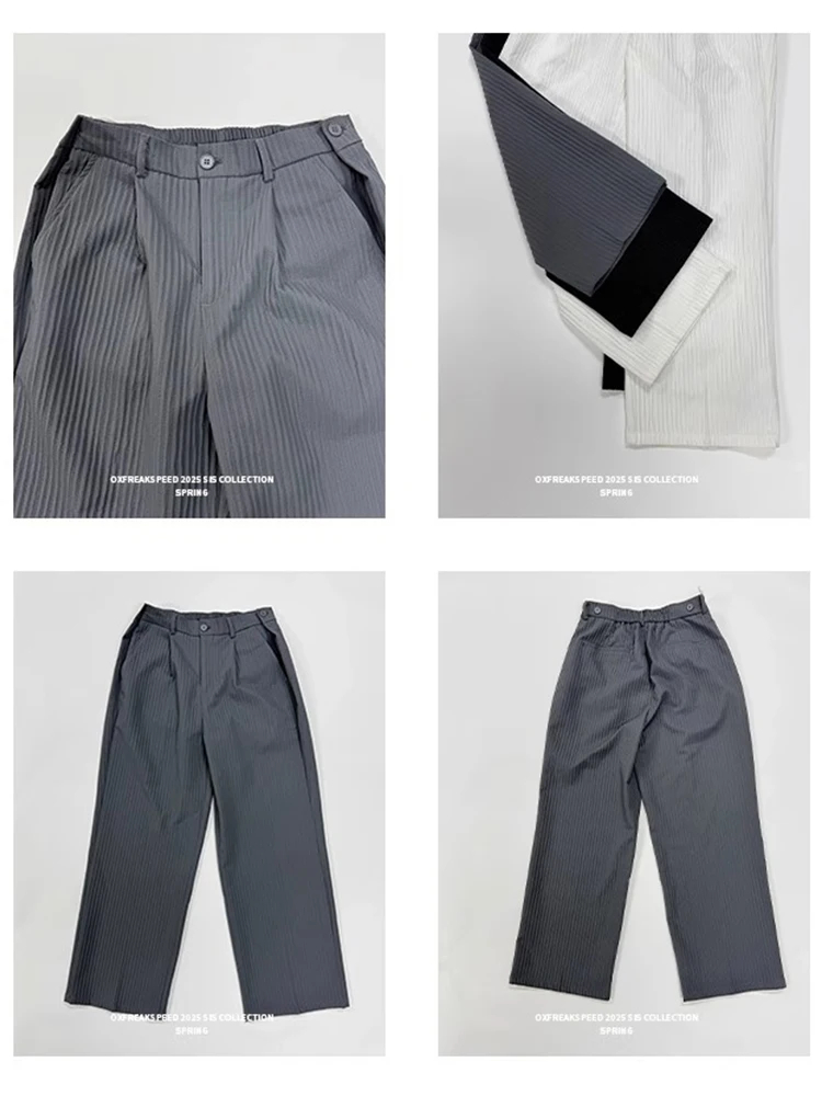 AIDASE - Breathable Ice Silk Ribbed Trousers Mens Summer New Casual Straight Pants Men Stylish Striped Textured Pants Old Money Aesthetic